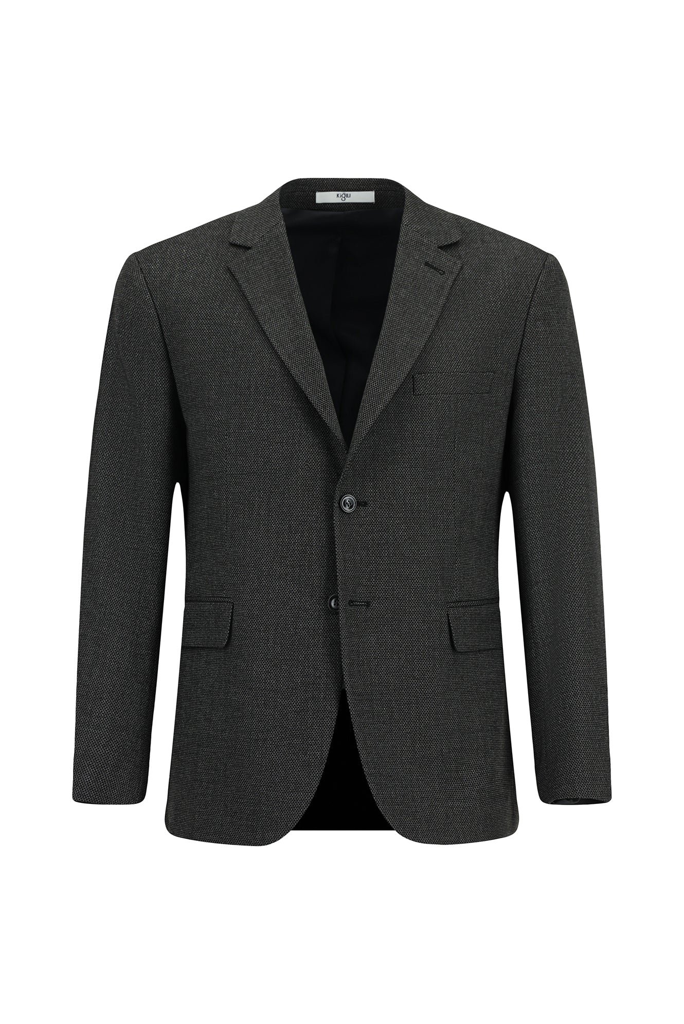 Koyu Antrasit Relaxed Fit Rahat Kesim Likralı Klasik Desenli Ceket