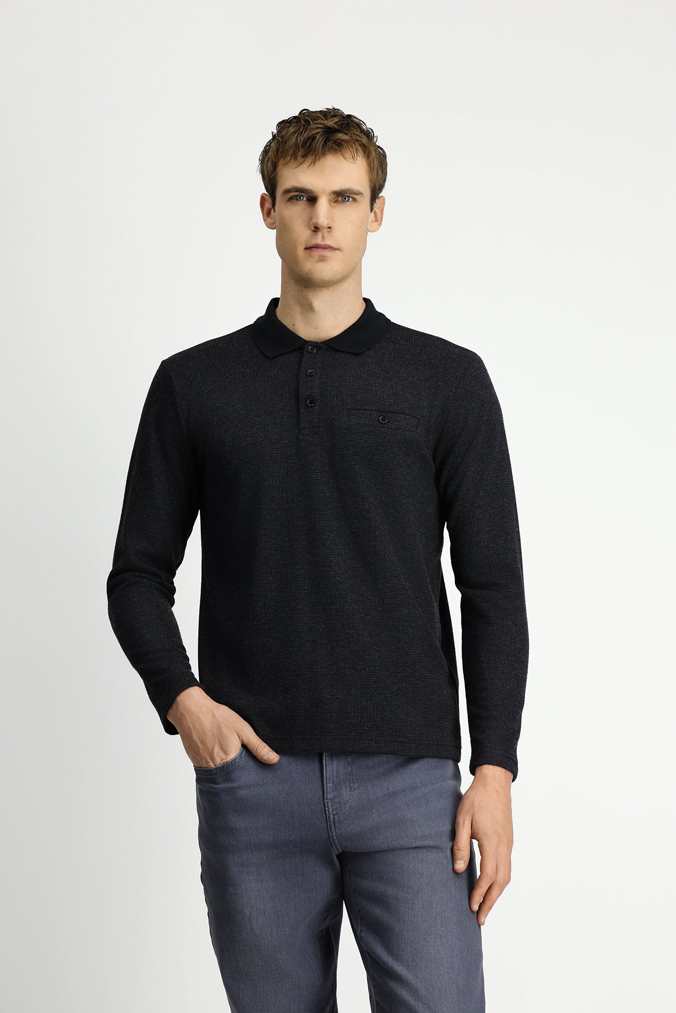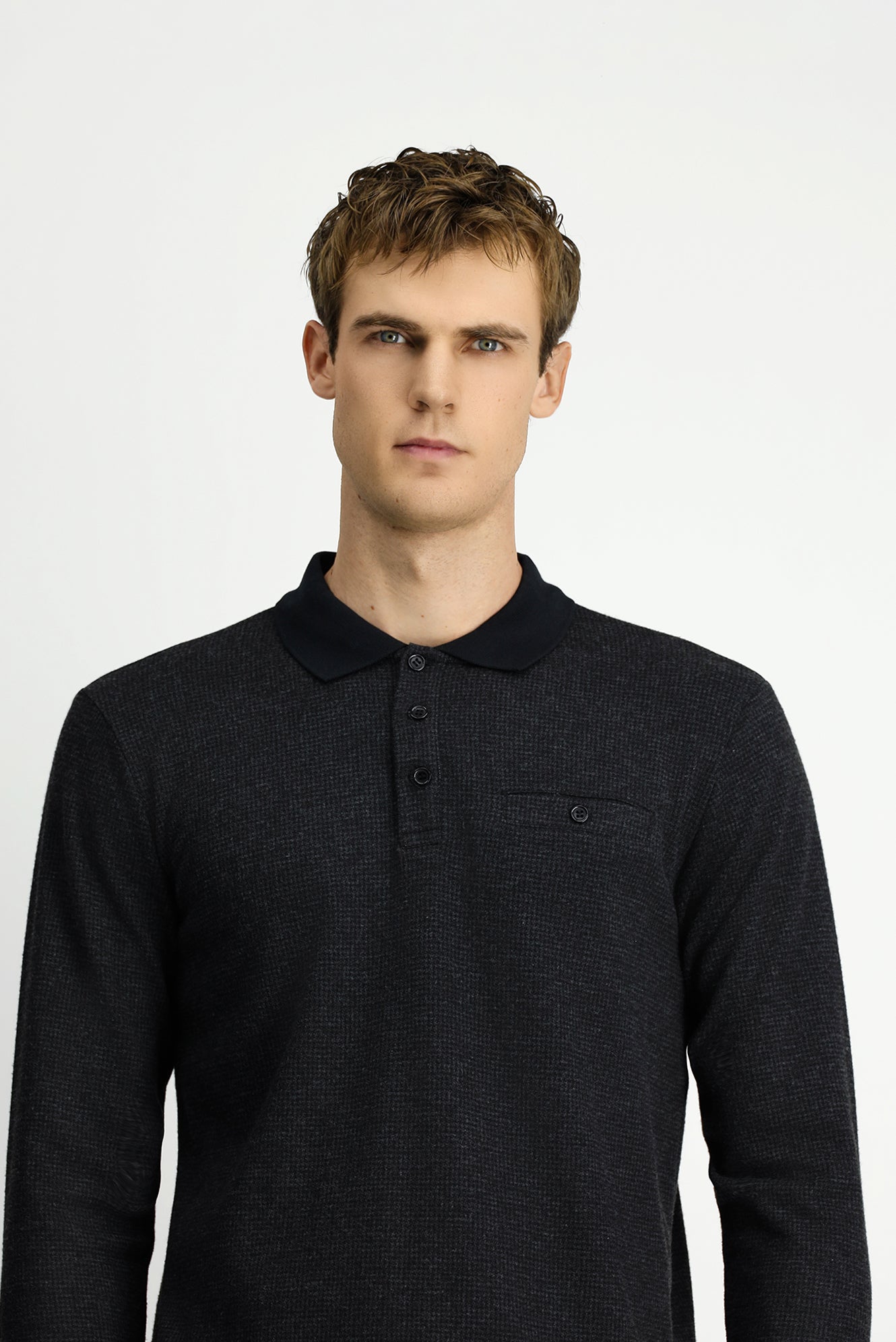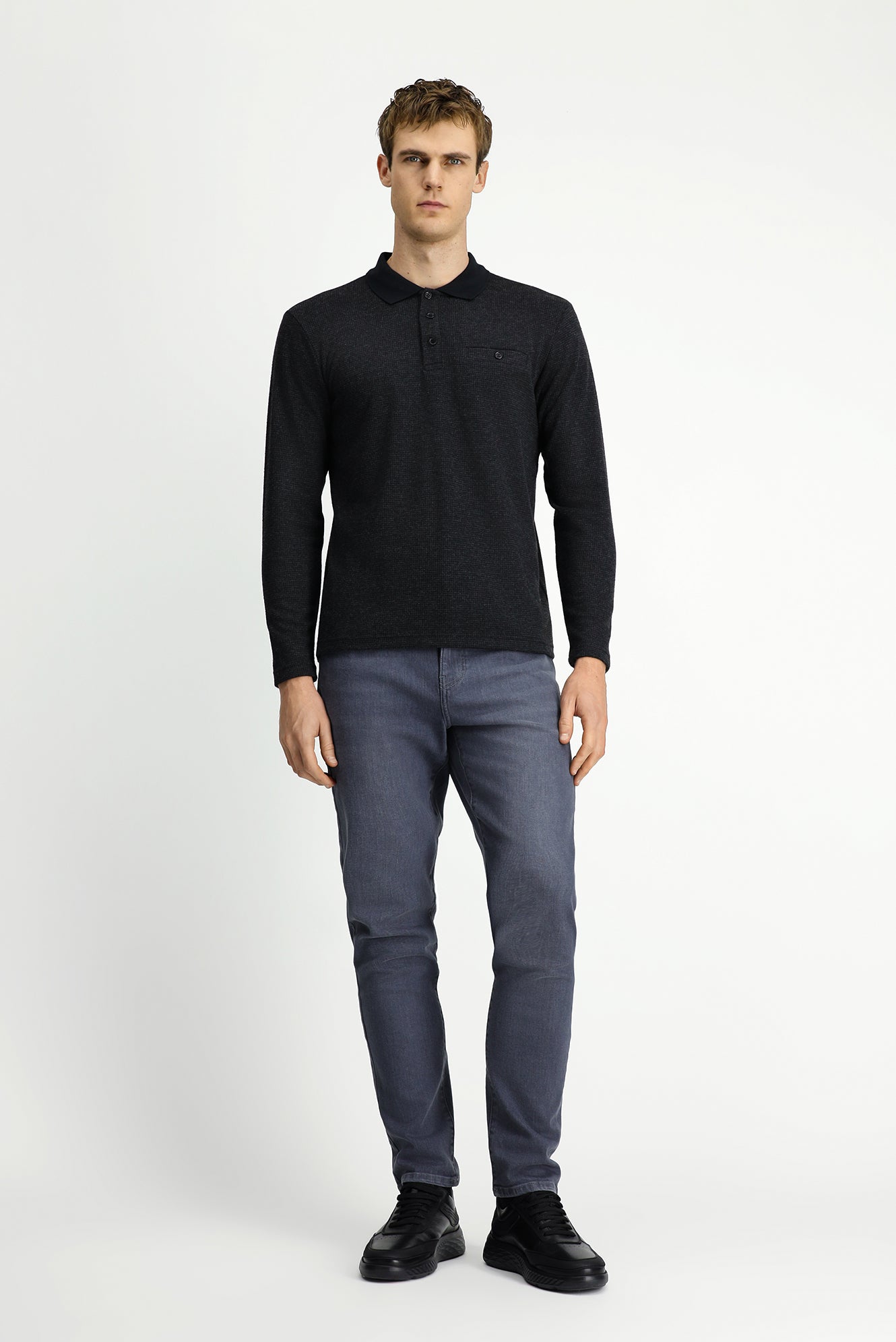 Koyu Antrasit Melanj Polo Yaka Regular Fit Sweatshirt