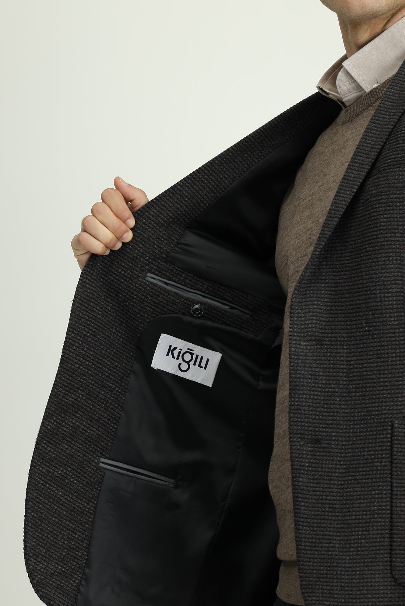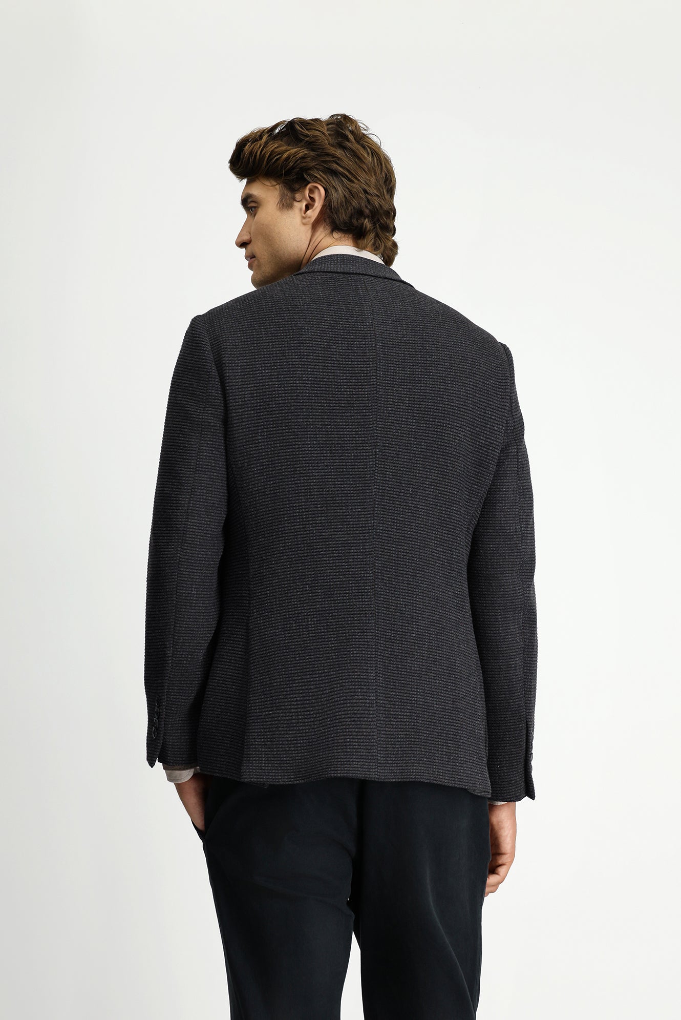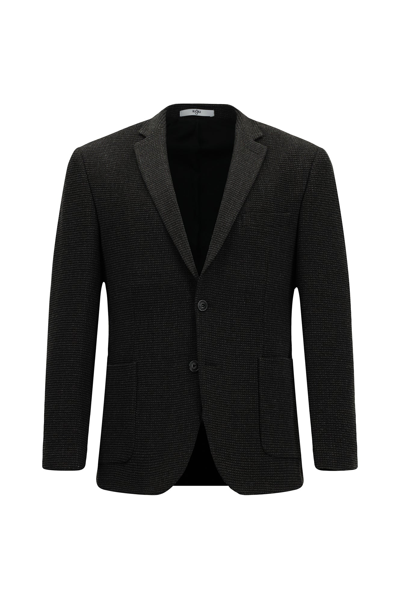 Koyu Antrasit Super Slim Fit Ekstra Dar Kesim Desenli Spor Yünlü Ceket