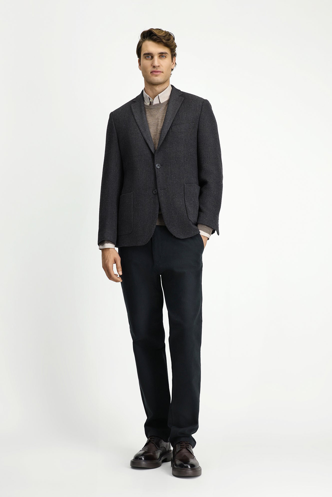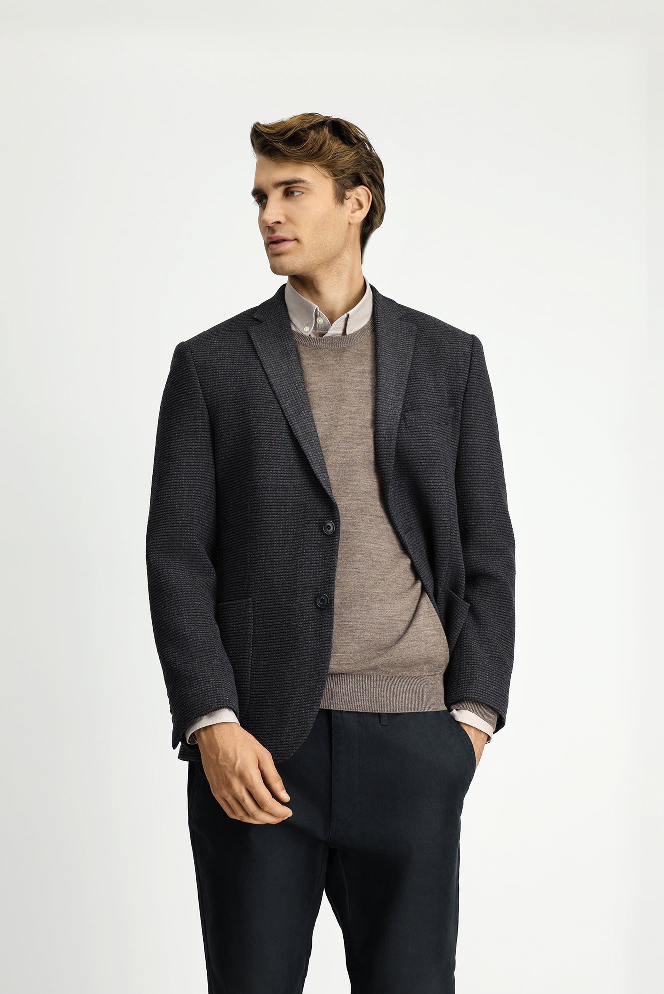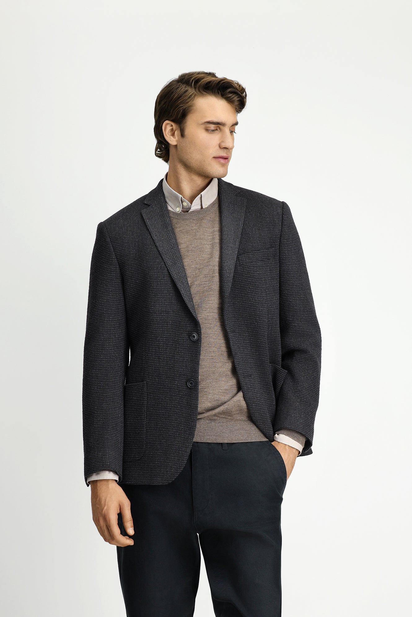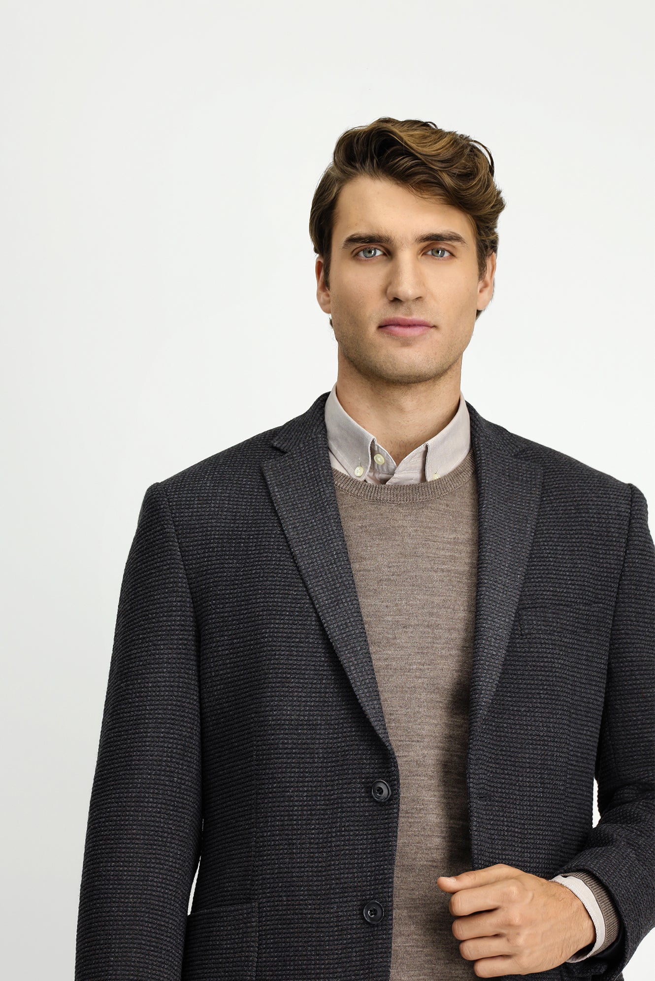 Koyu Antrasit Super Slim Fit Ekstra Dar Kesim Desenli Spor Yünlü Ceket