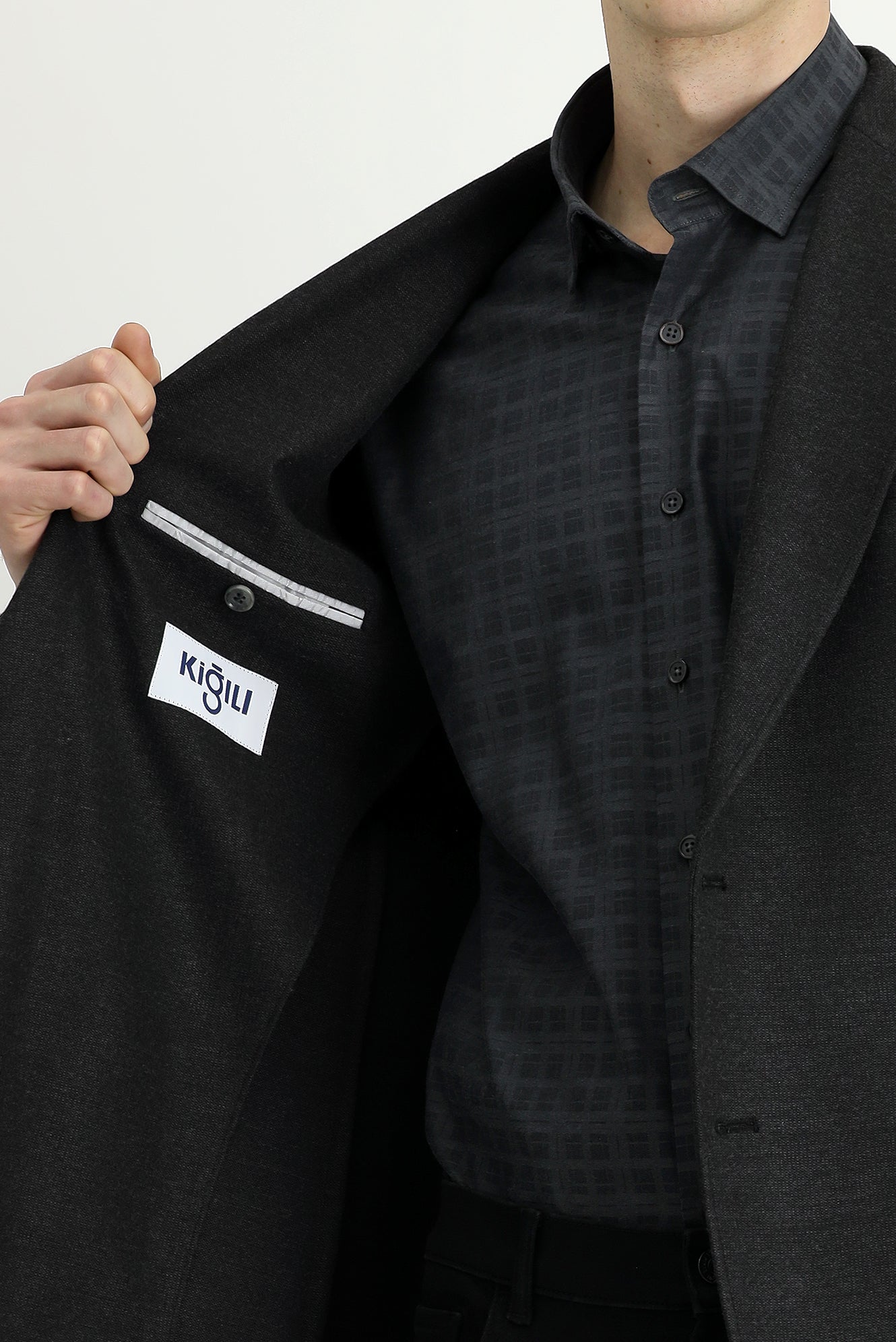 Koyu Antrasit Muscle Fit Likralı Spor Ceket
