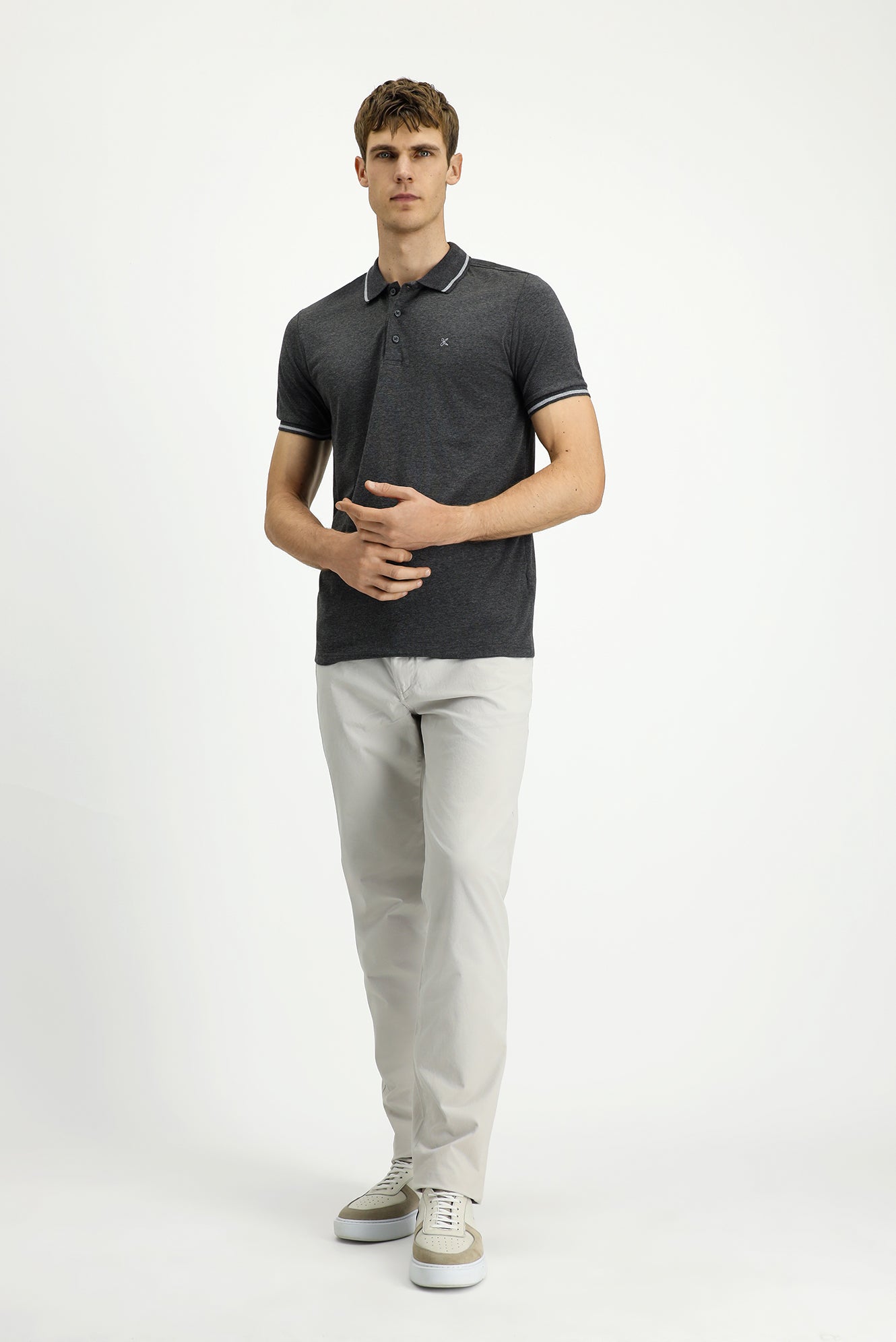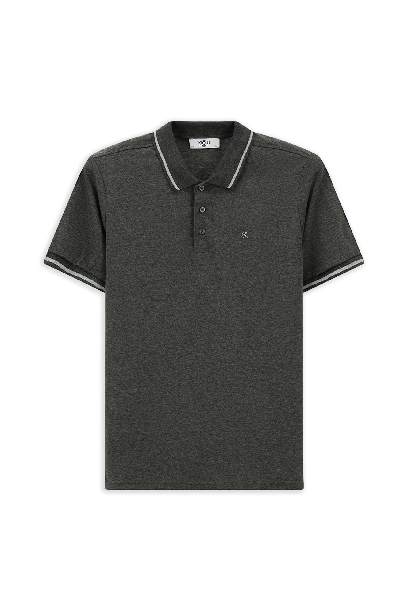 Koyu Antrasit Polo Yaka Slim Fit Dar Kesim Nakışlı Süprem Pamuklu Tişört