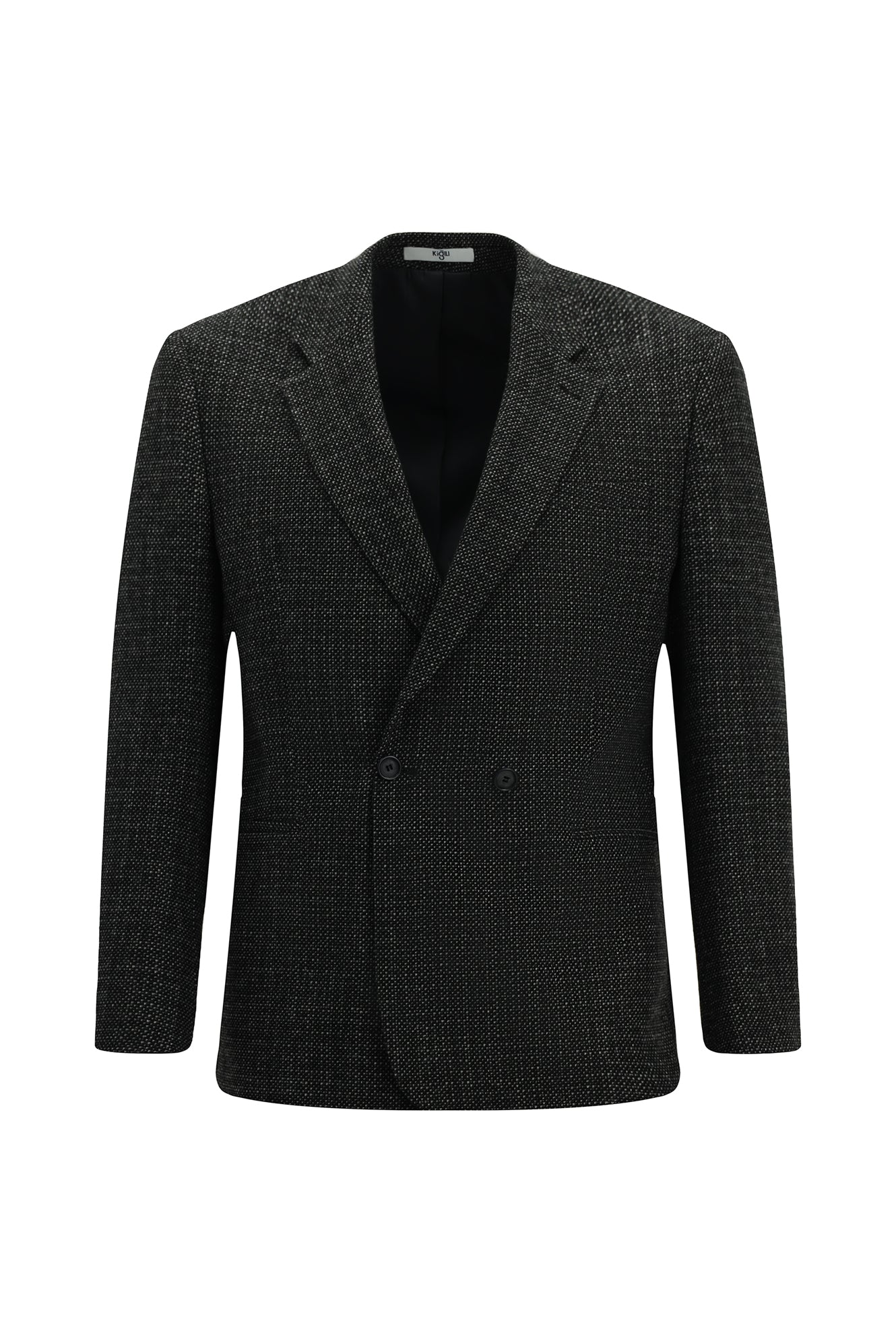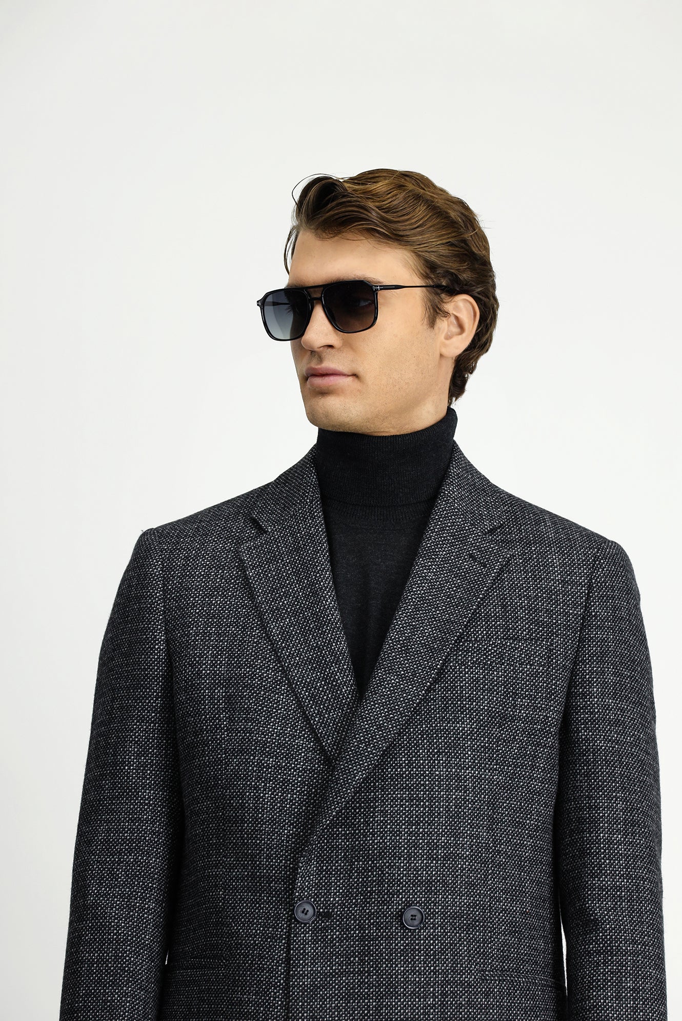 Koyu Antrasit 6 Drop Regular Fit Standart Kesim Desenli Yünlü Kruvaze Ceket