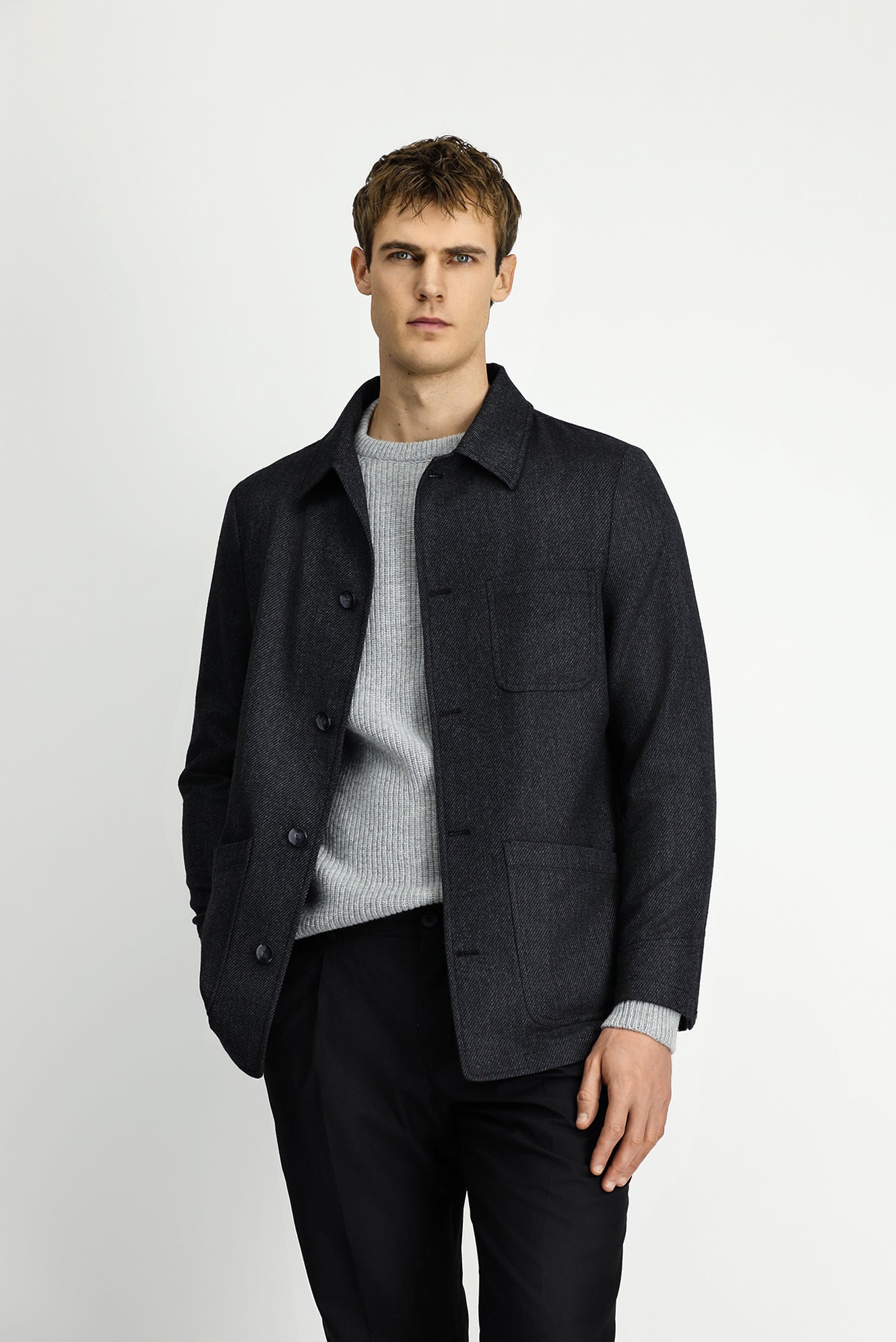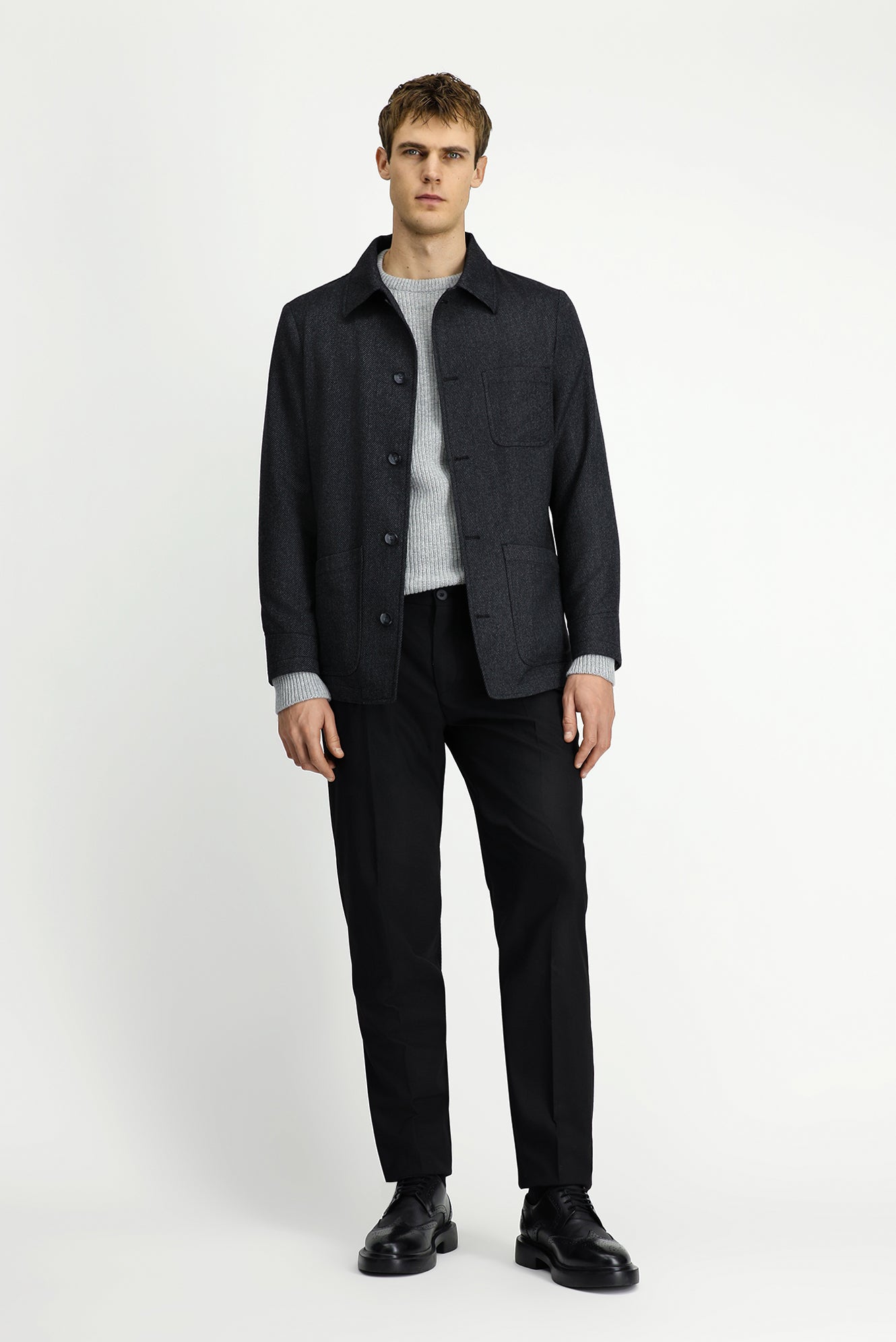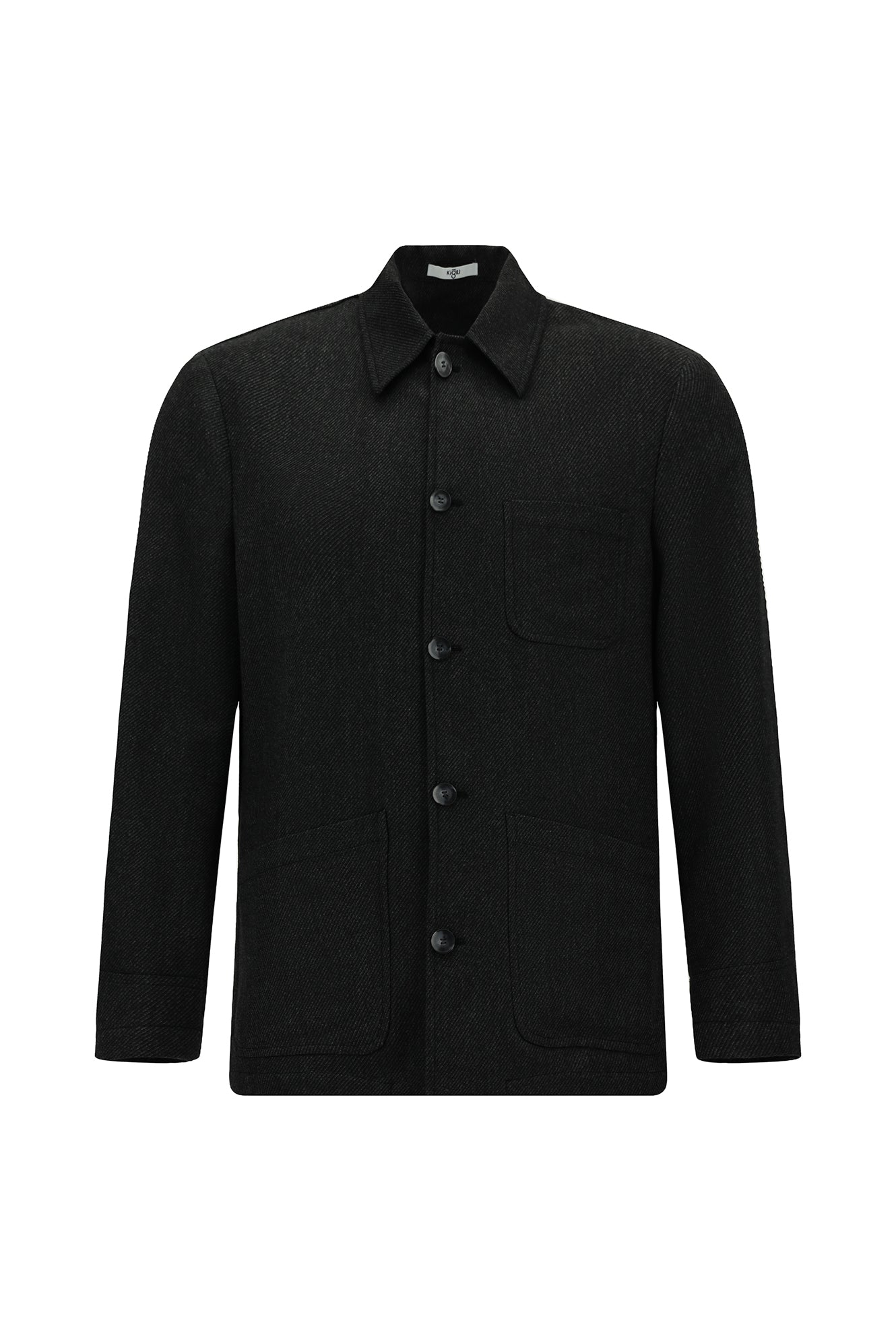 Koyu Antrasit Regular Fit Spor Yünlü Ceket / Mont