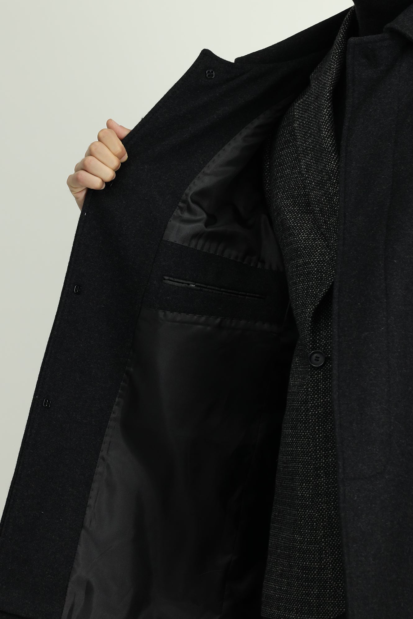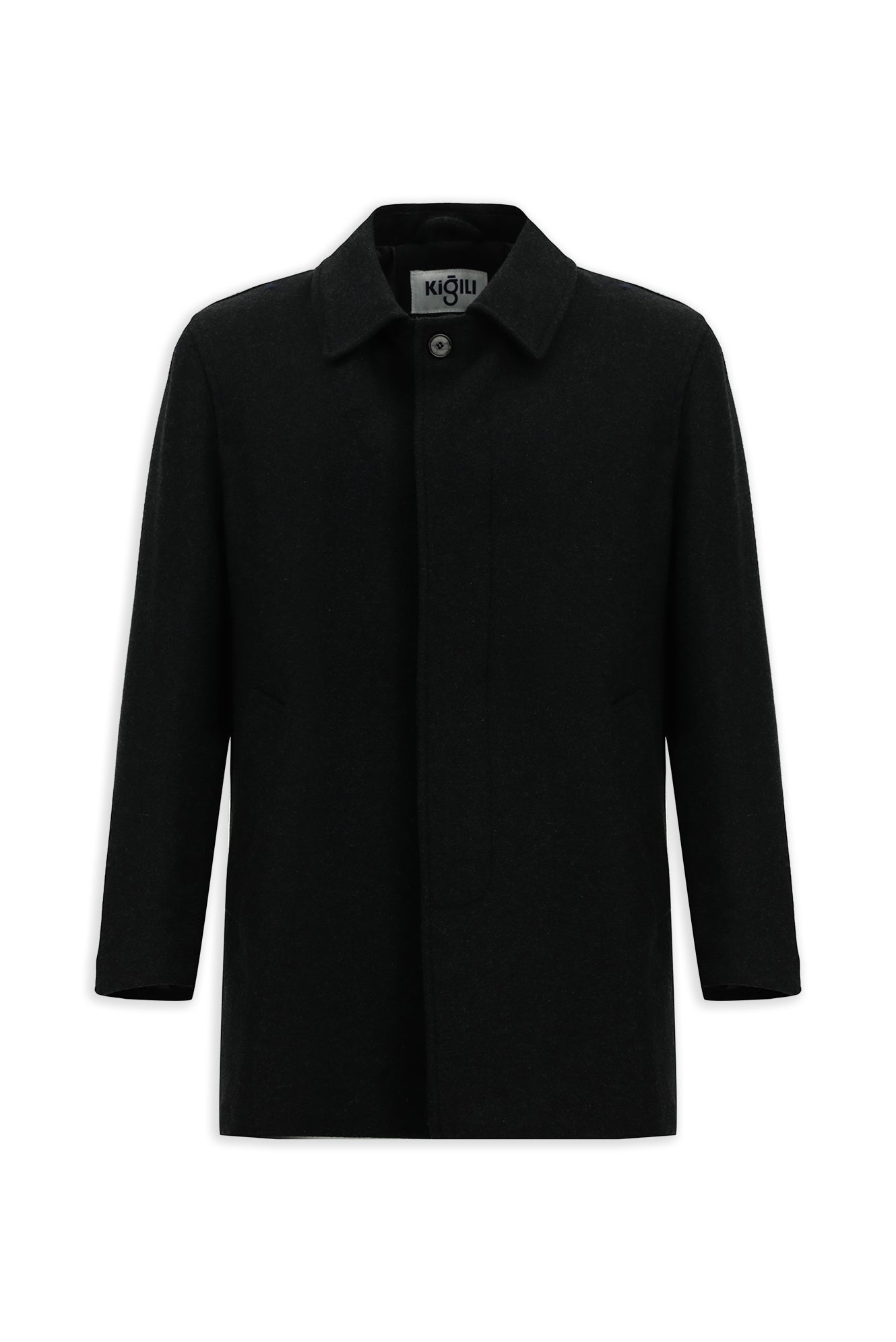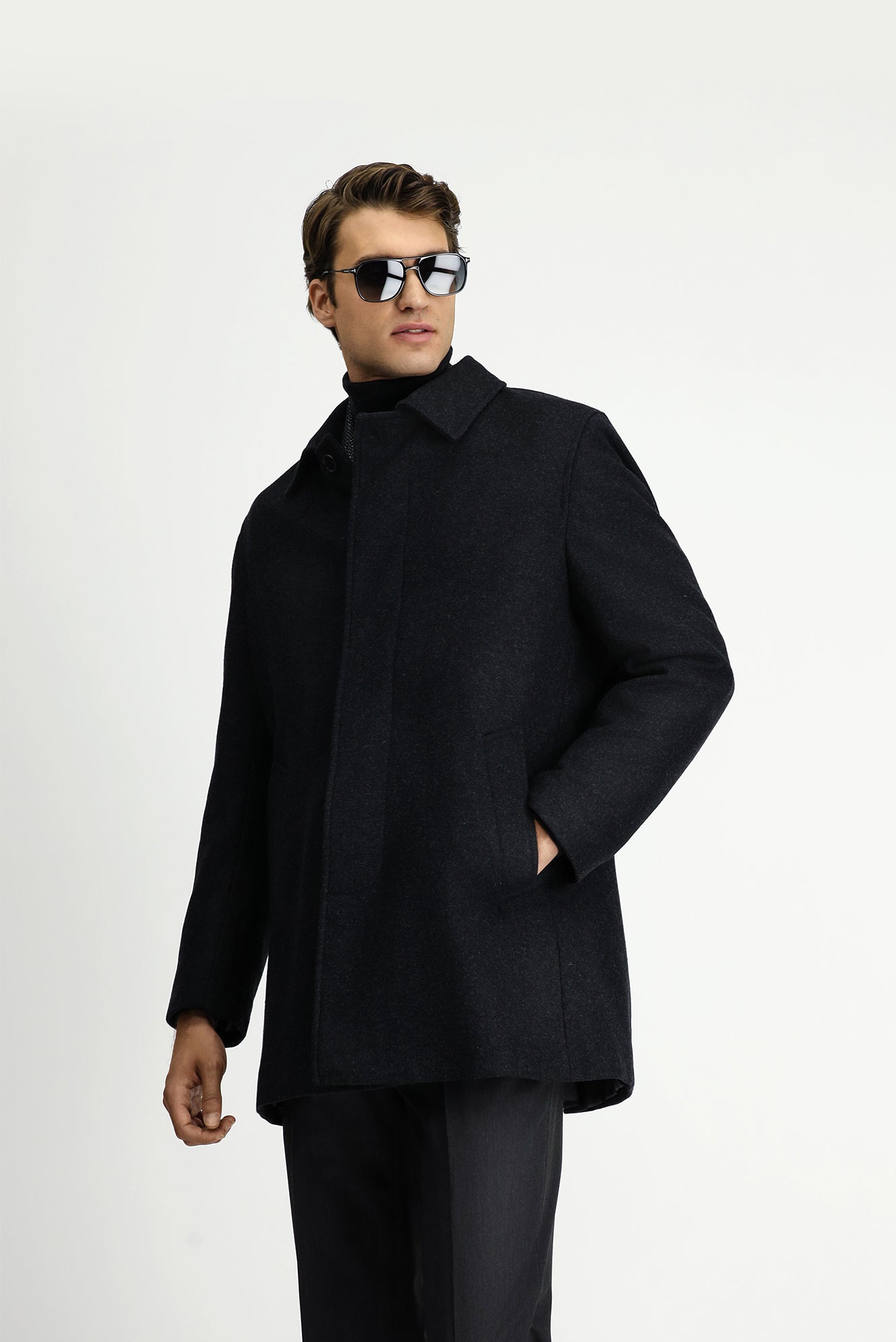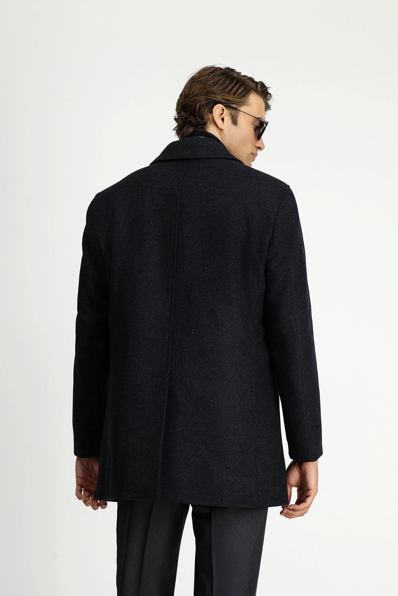 Koyu Antrasit Yünlü Klasik Kaban