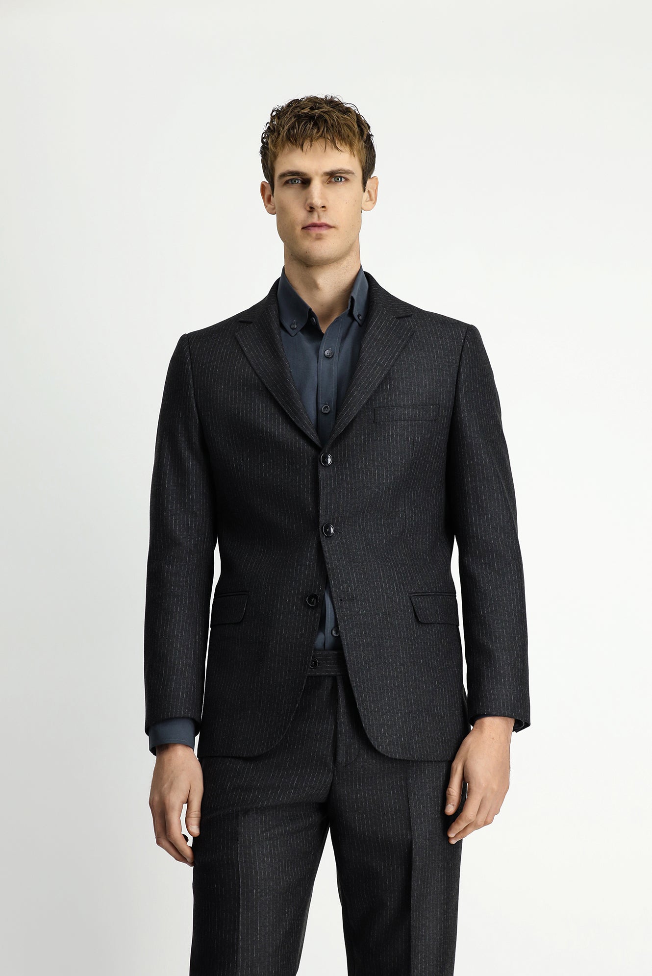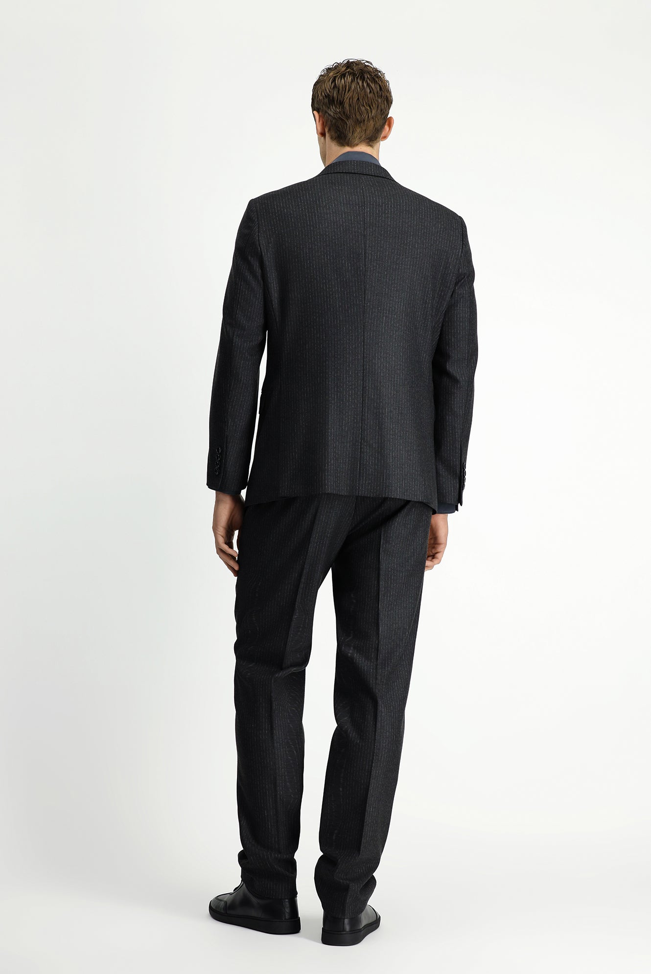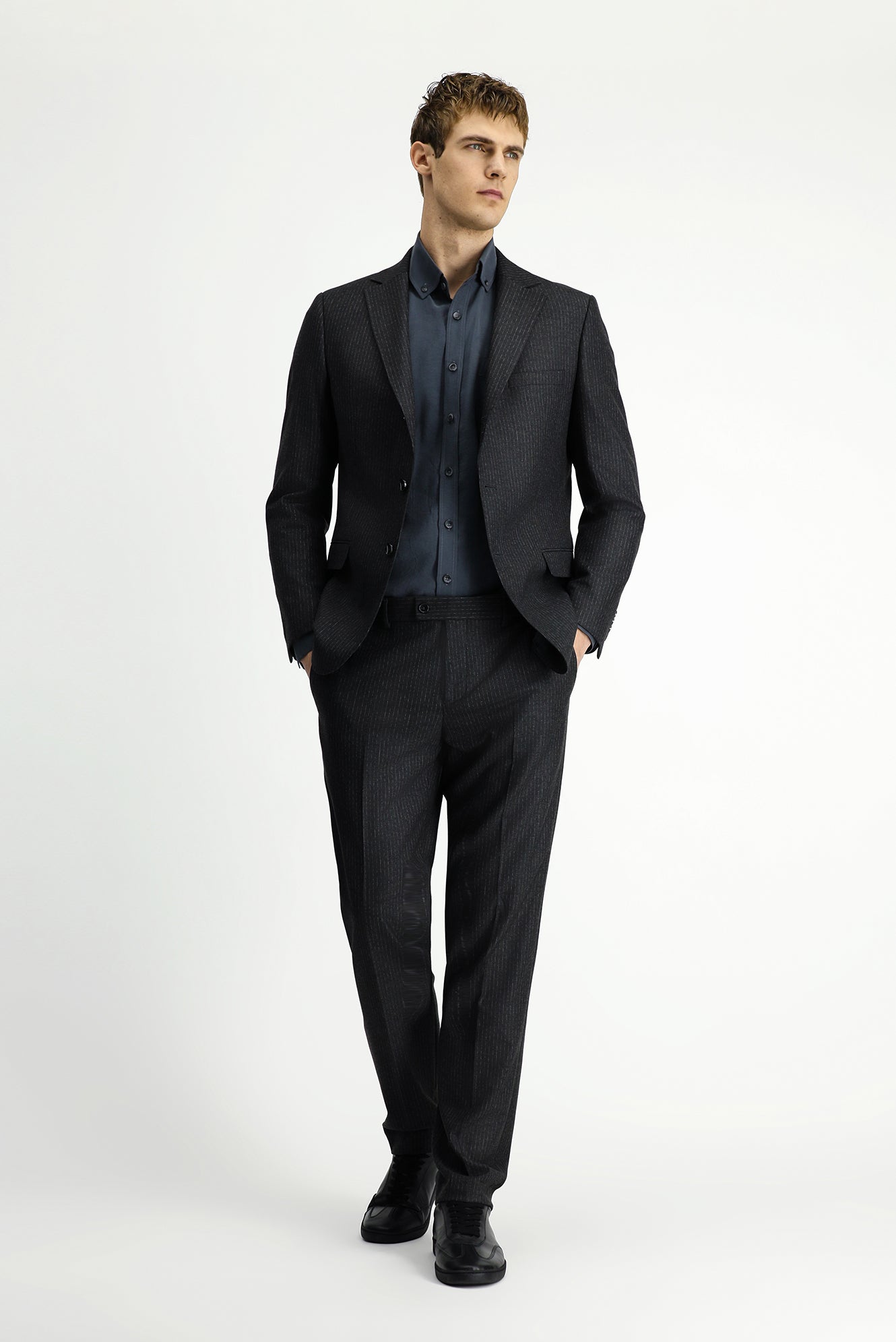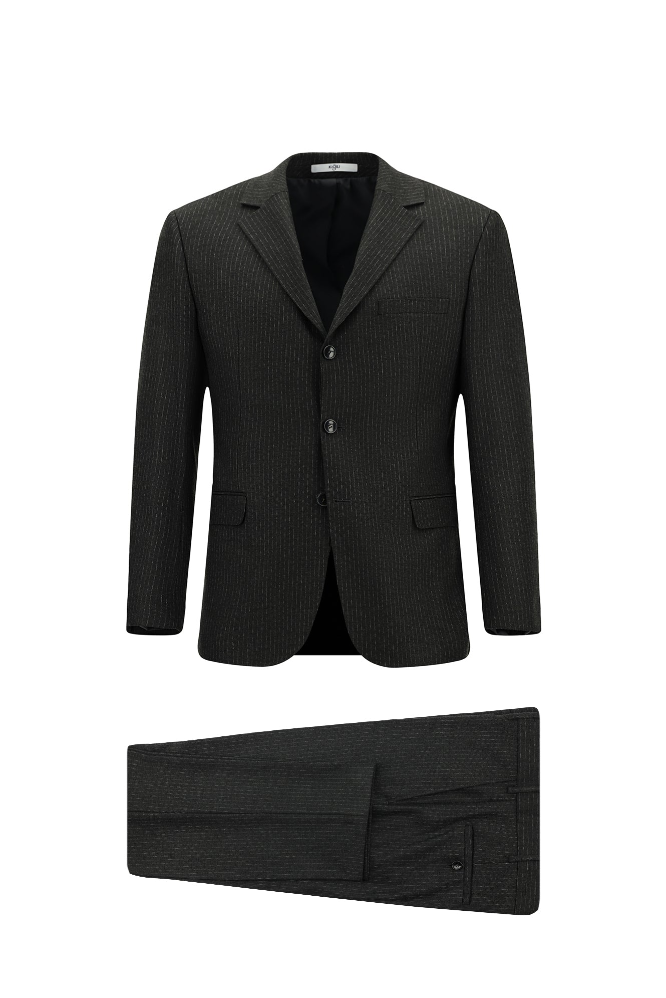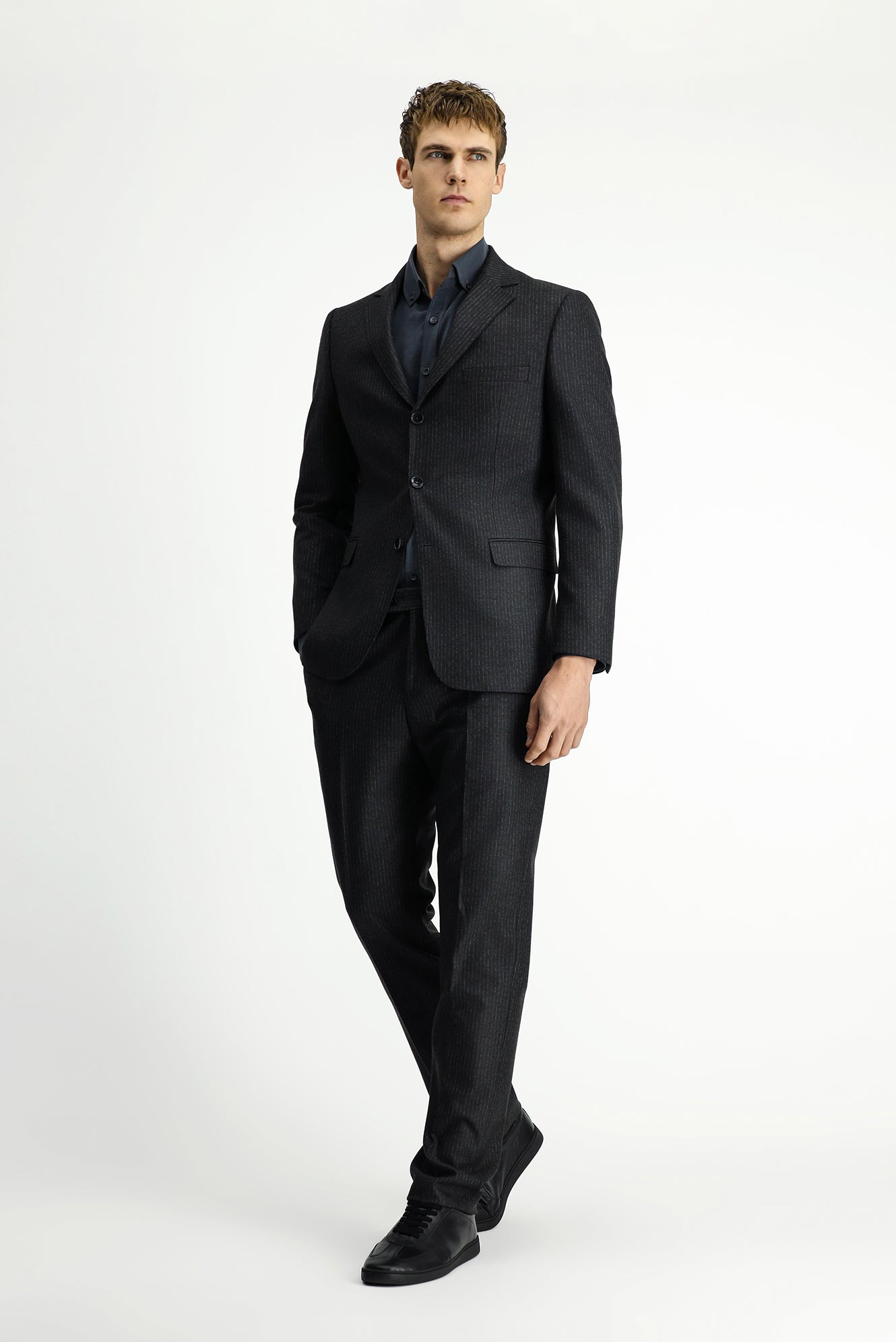 Koyu Antrasit Regular Fit Klasik Çizgili Takım Elbise