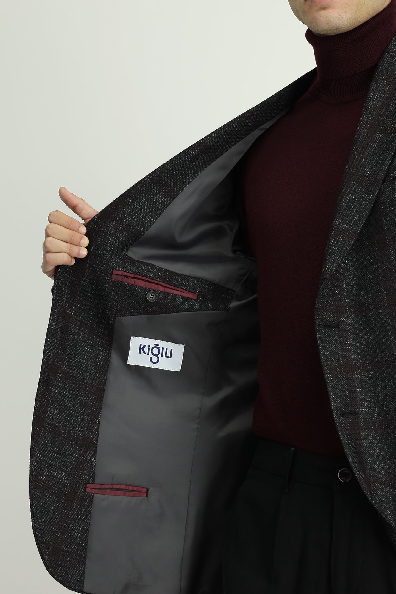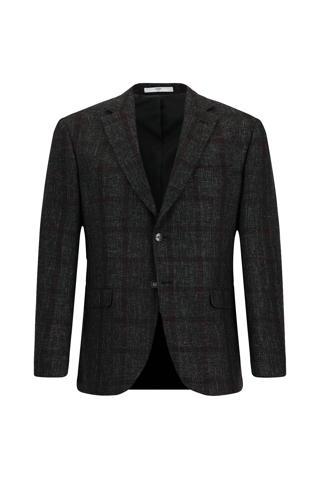 Koyu Antrasit 4 Drop Relaxed Fit Rahat Kesim Ekose Yünlü Ceket
