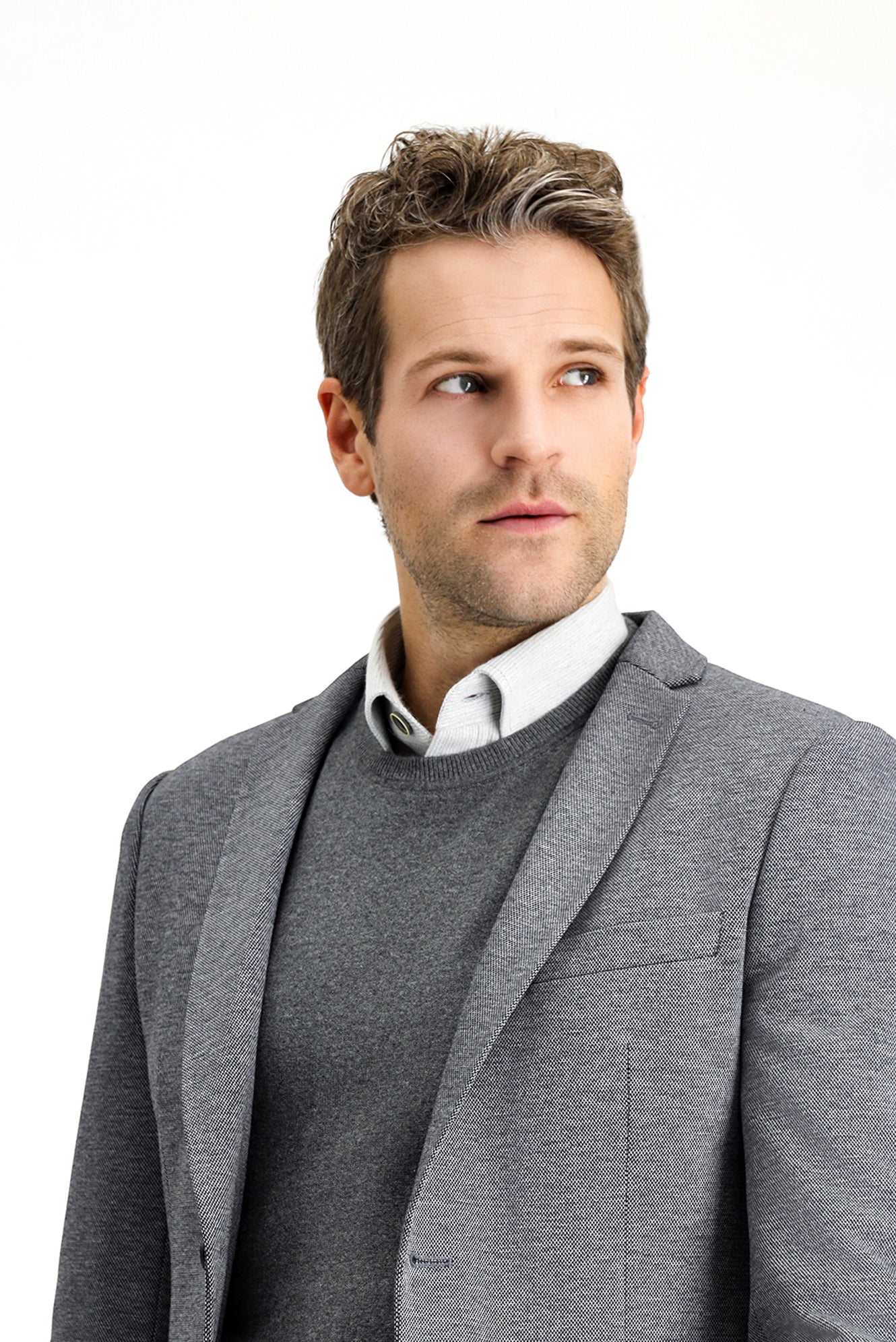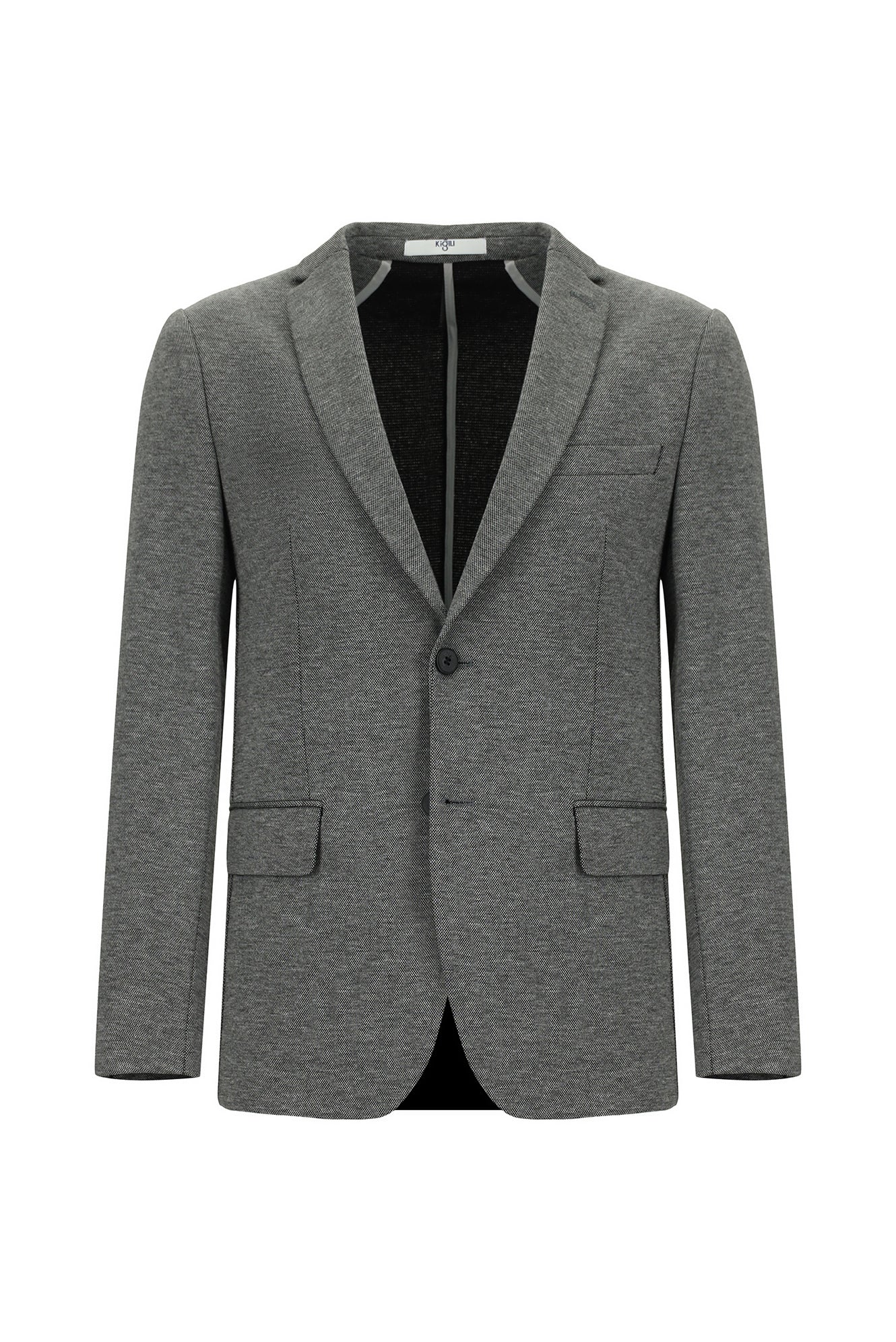 Koyu Antrasit Regular Fit Klasik Desenli Örme Ceket