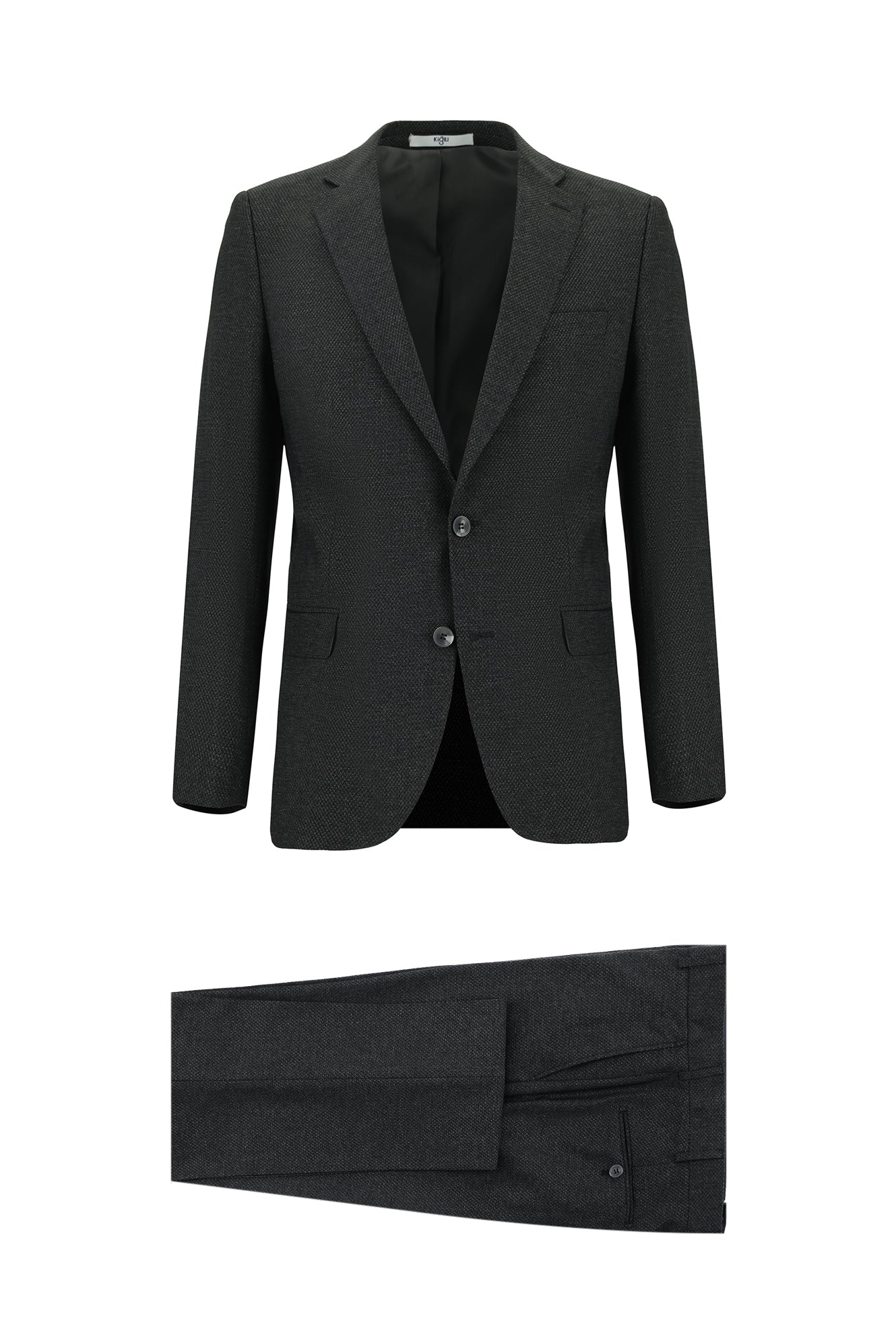Koyu Antrasit 6 Drop Regular Fit Standart Kesim Klasik Desenli Takım Elbise