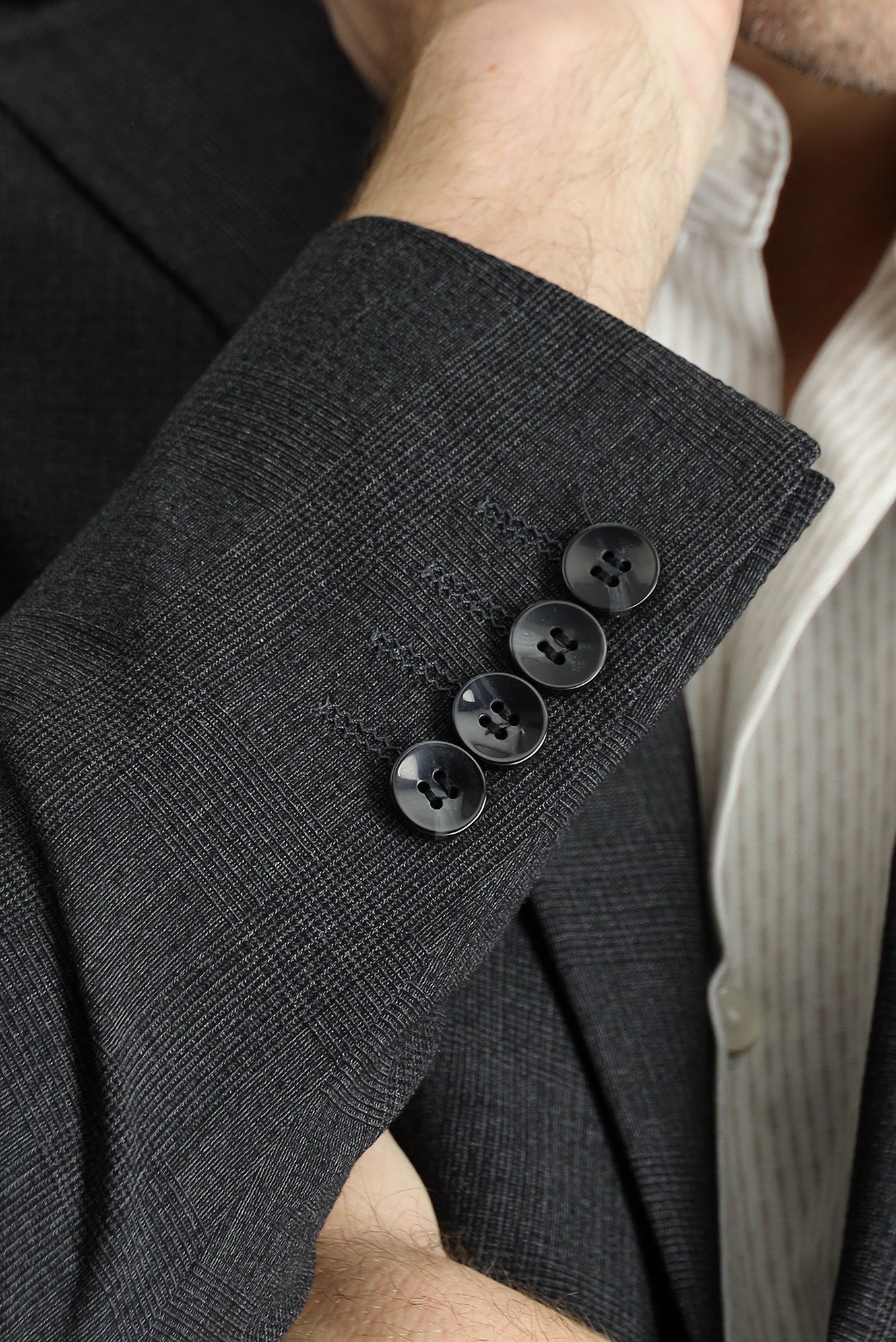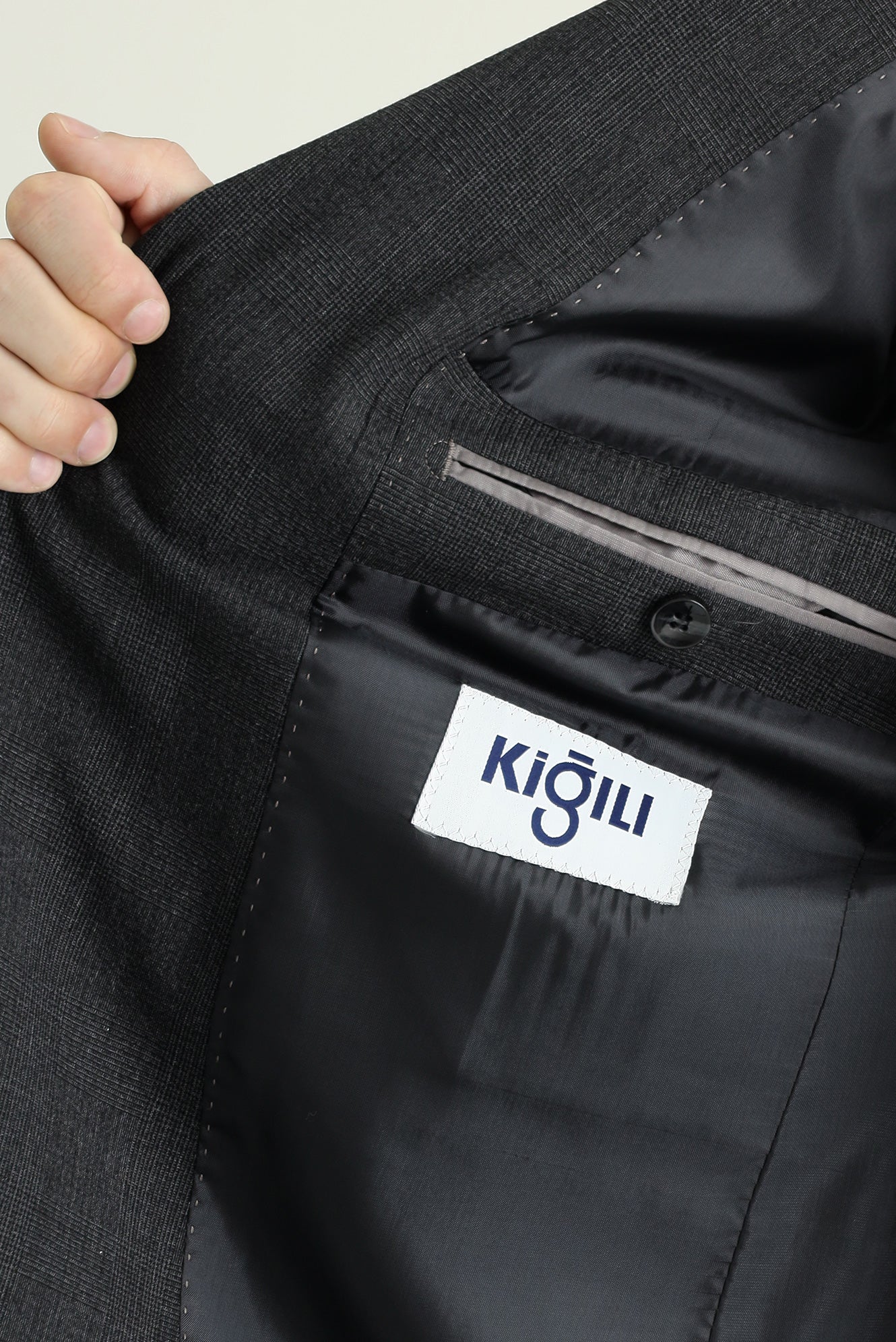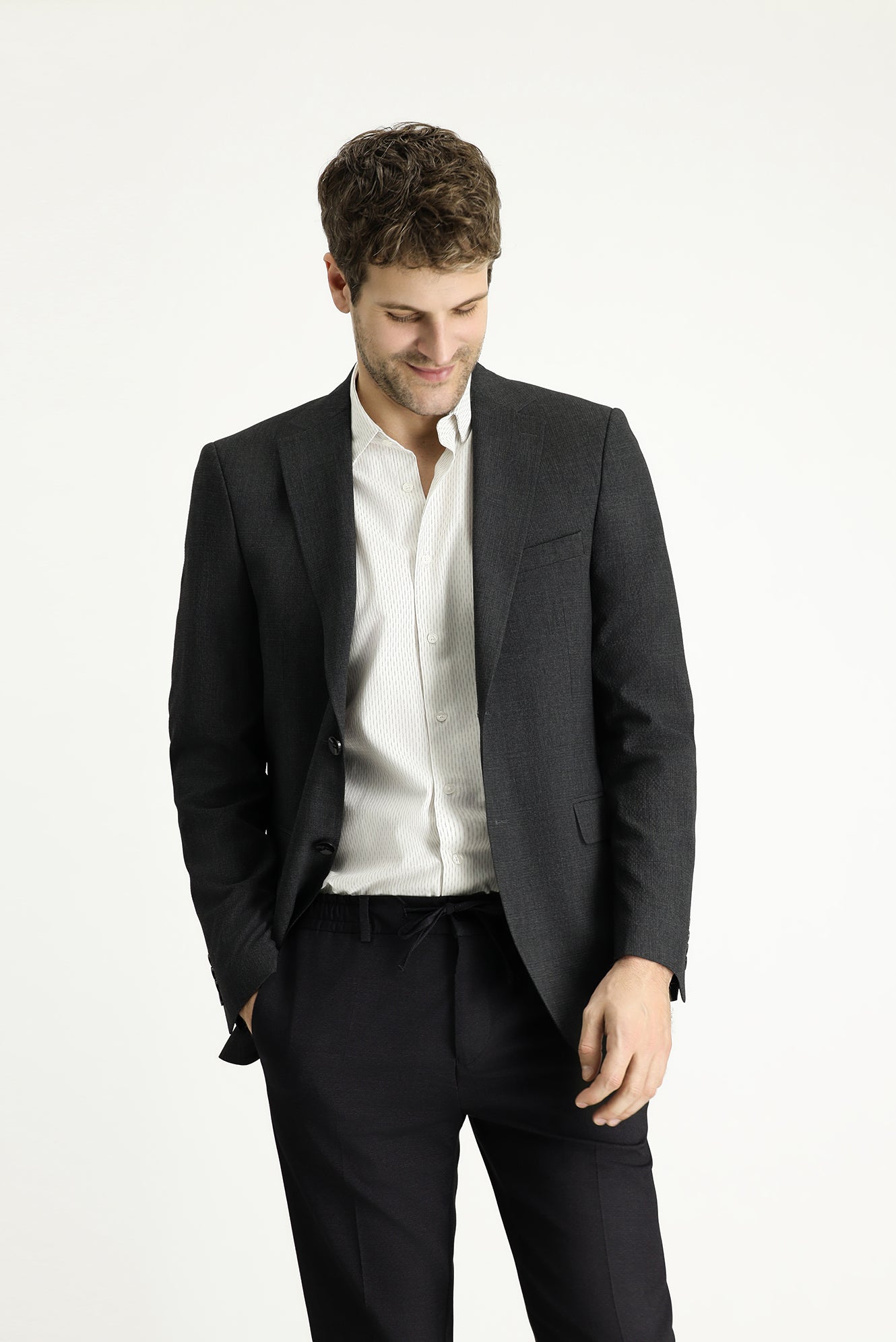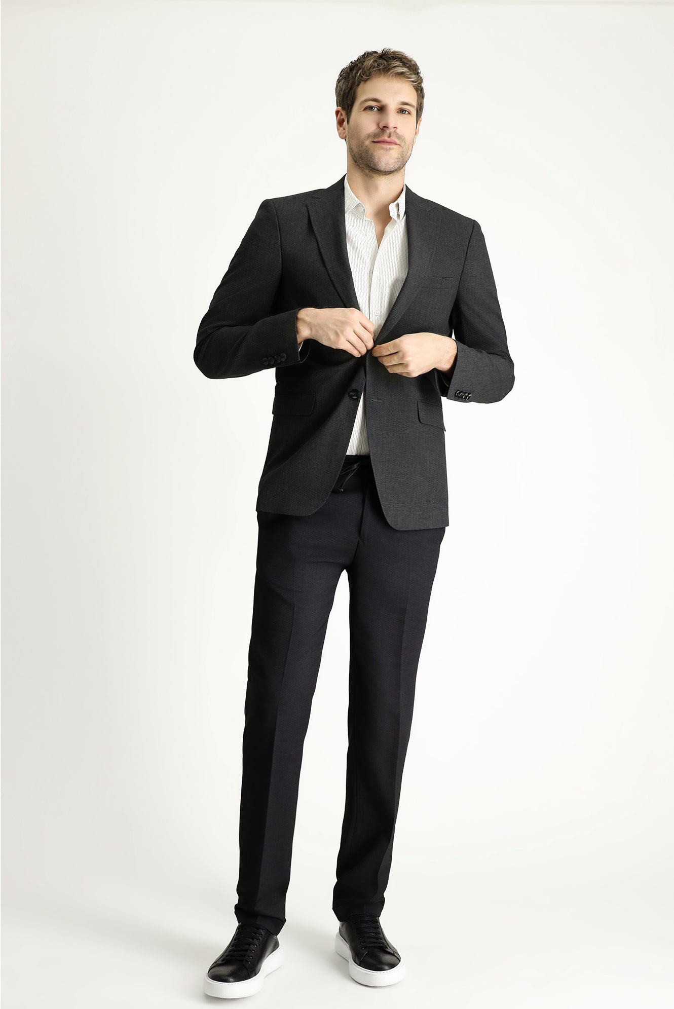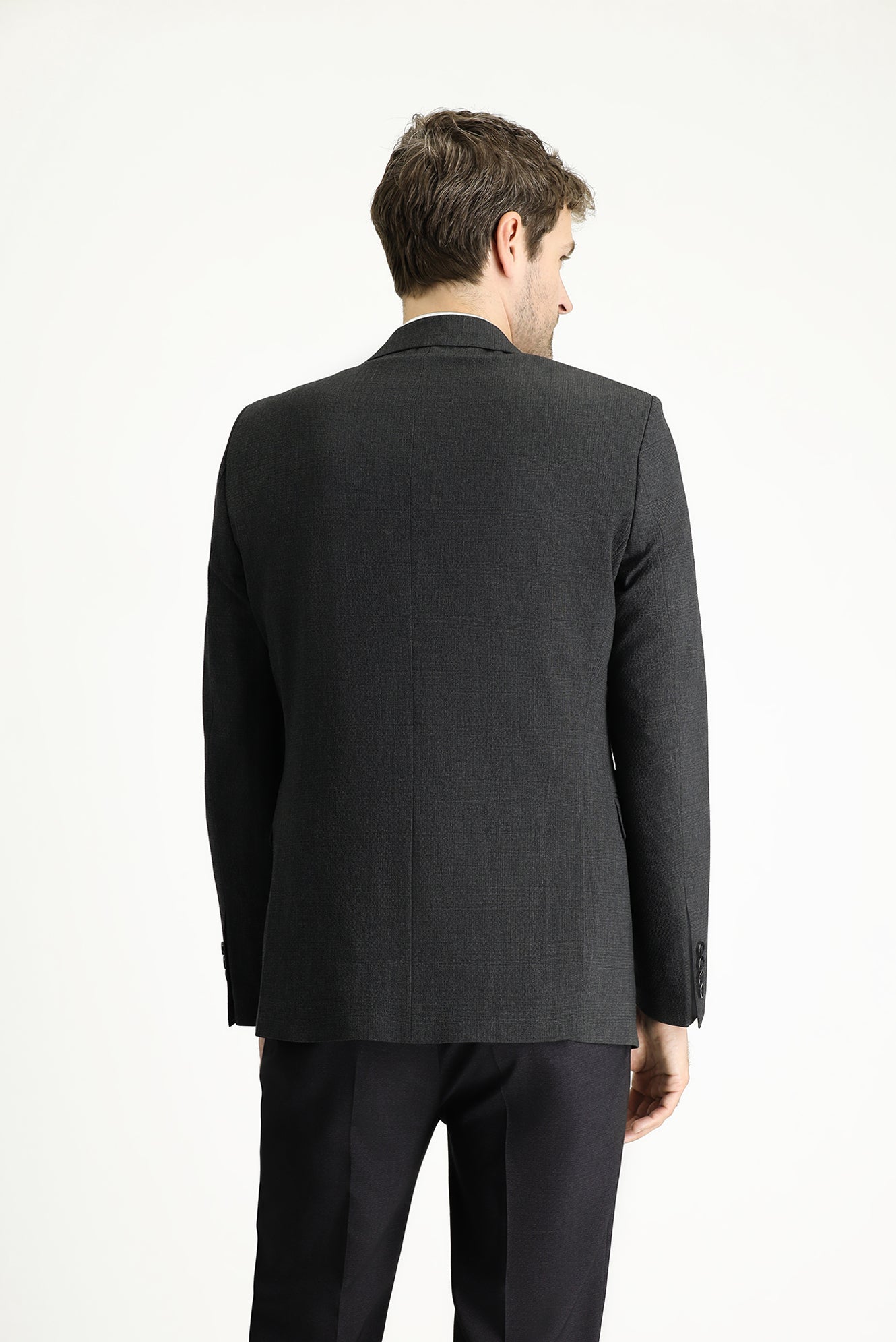 Koyu Antrasit Regular Fit Klasik Ekose Gofre Ceket
