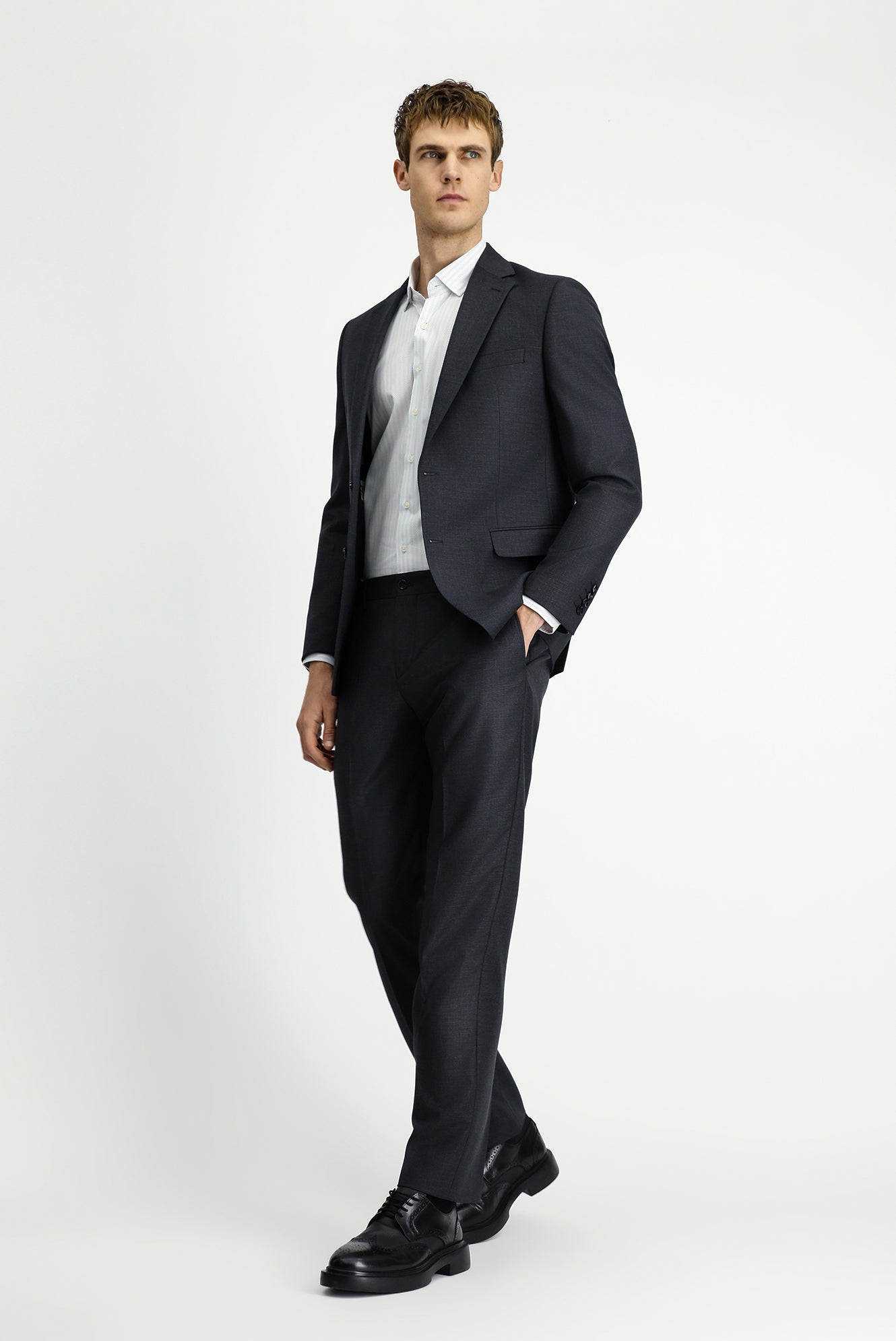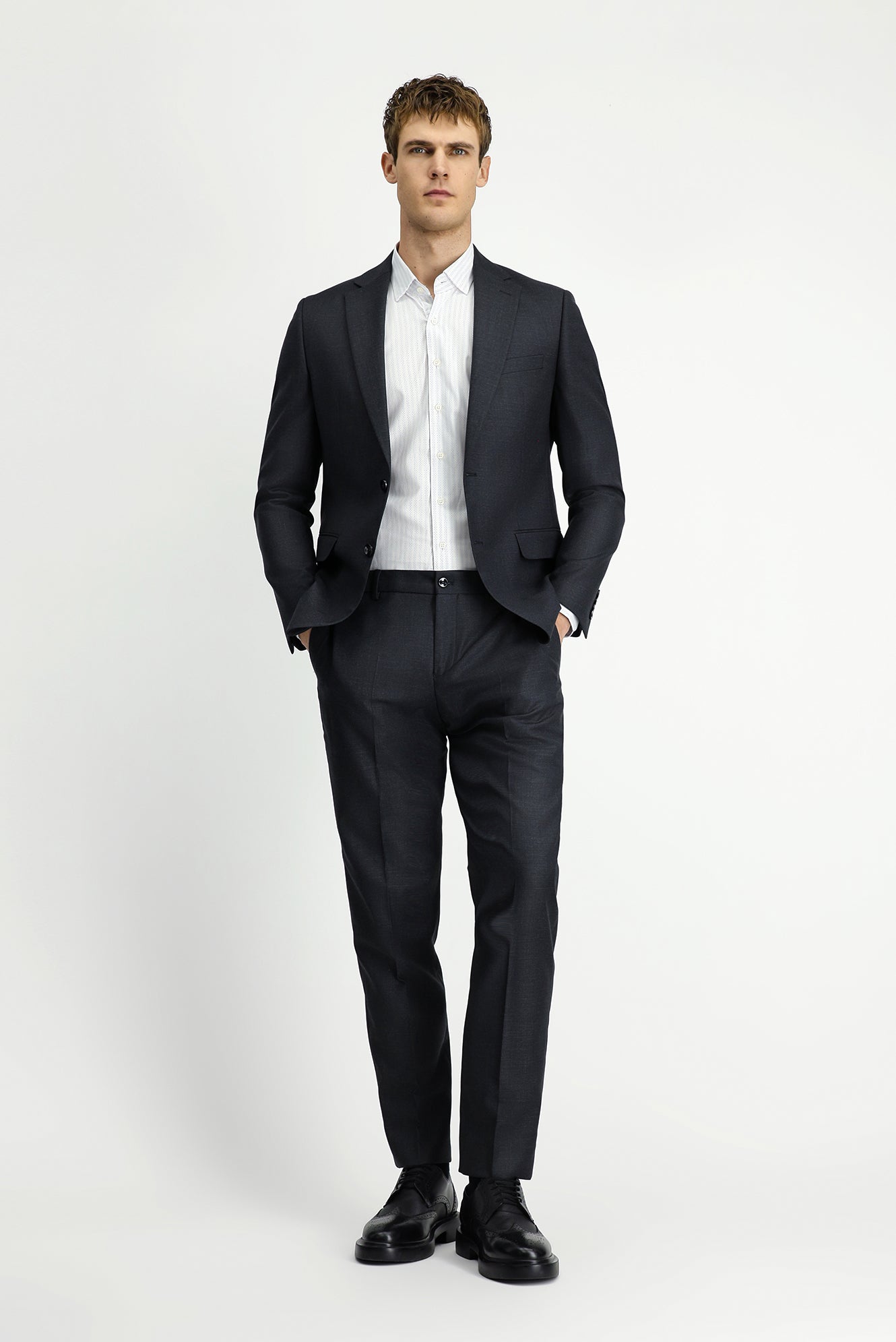 Koyu Antrasit Regular Fit Klasik Desenli Beli Lastikli Takım Elbise
