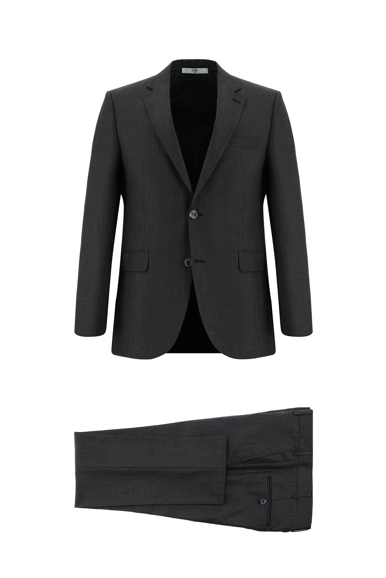 Koyu Antrasit Relaxed Fit Rahat Kesim Klasik Desenli Takım Elbise