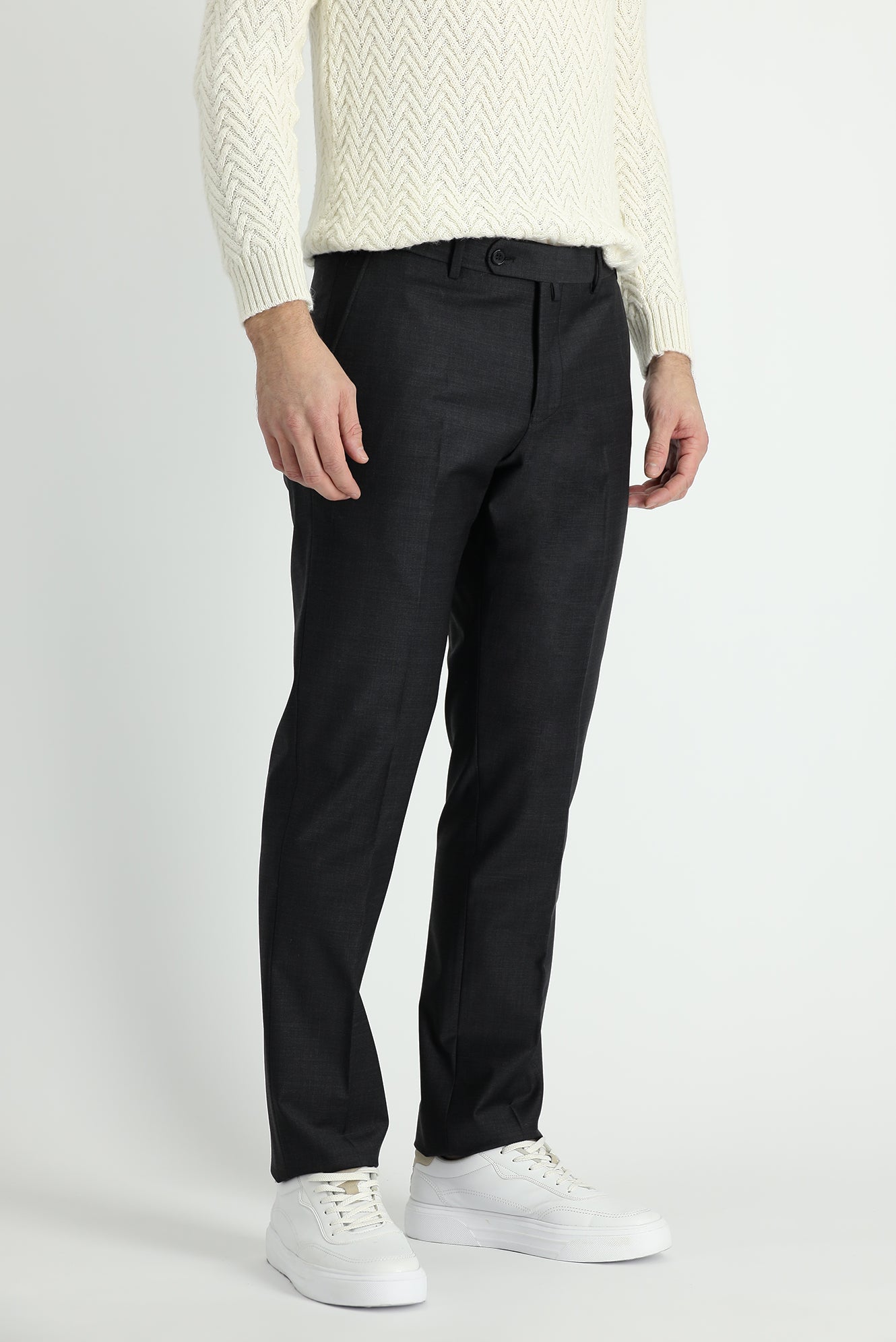 Koyu Antrasit Relaxed Fit Rahat Kesim Yünlü Klasik Kumaş Pantolon