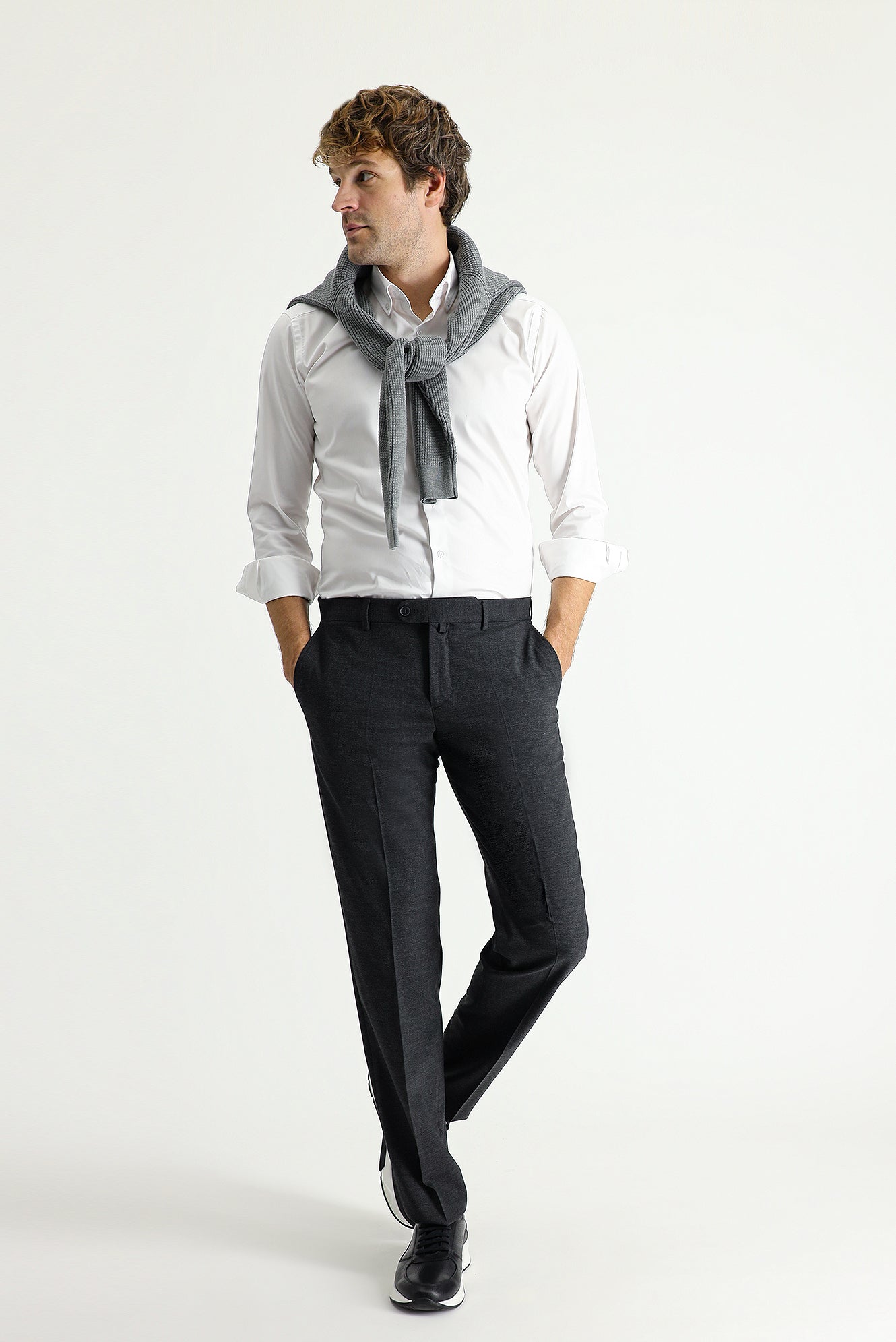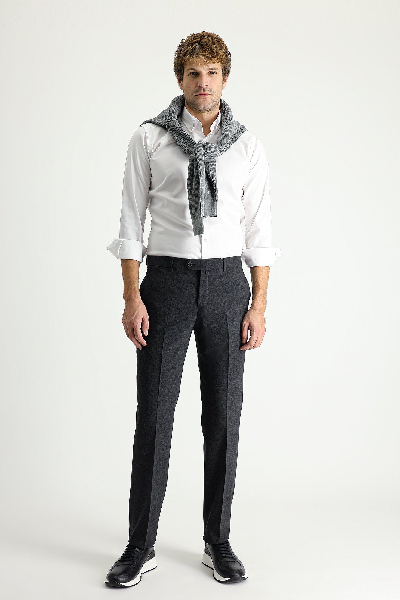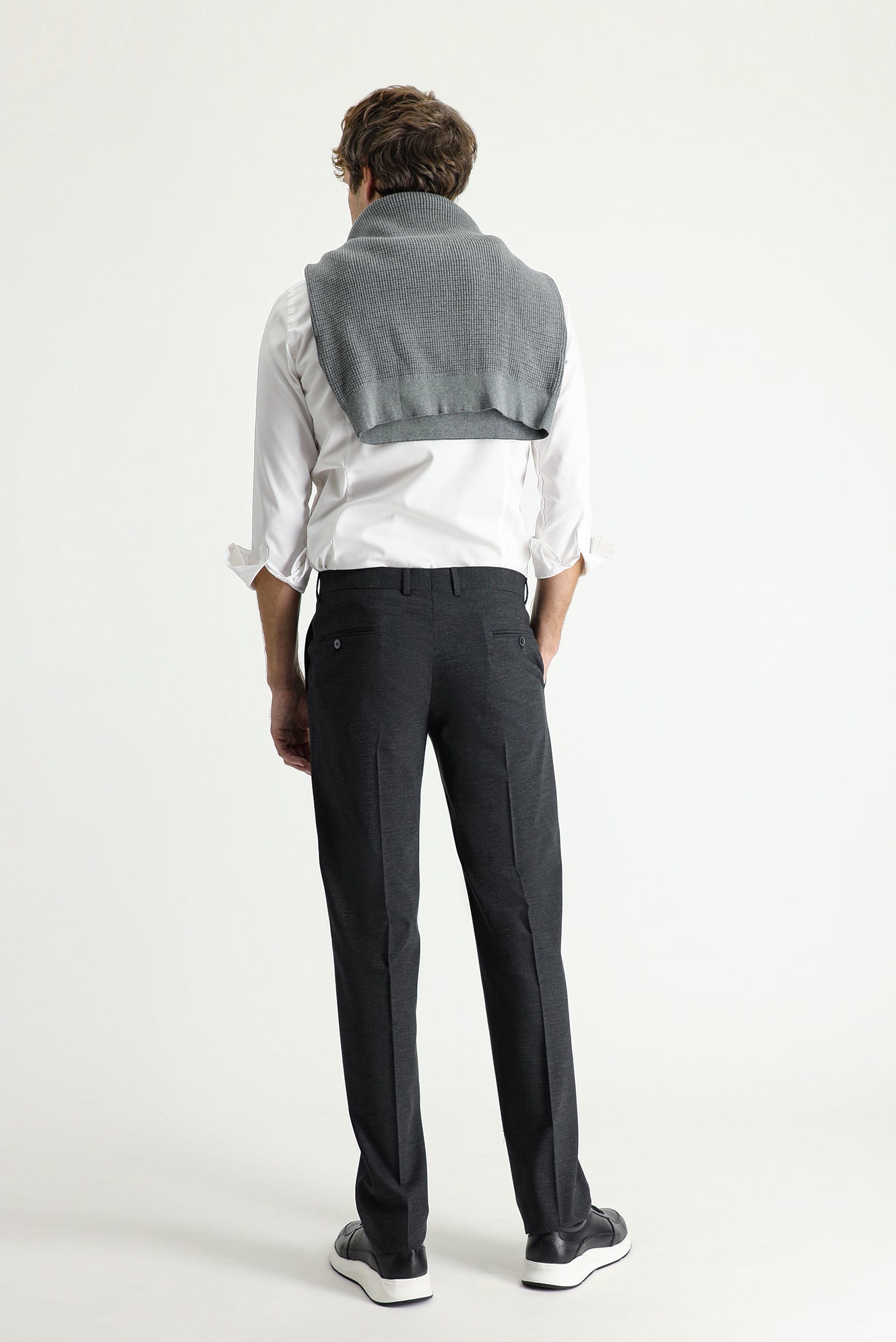 Koyu Antrasit Relaxed Fit Rahat Kesim Yünlü Klasik Kumaş Pantolon