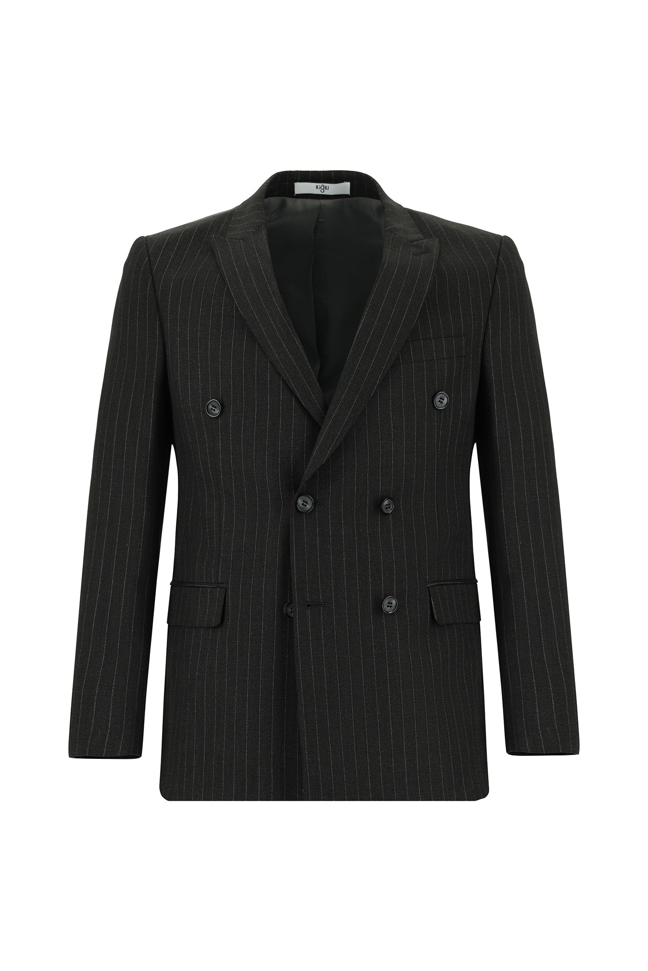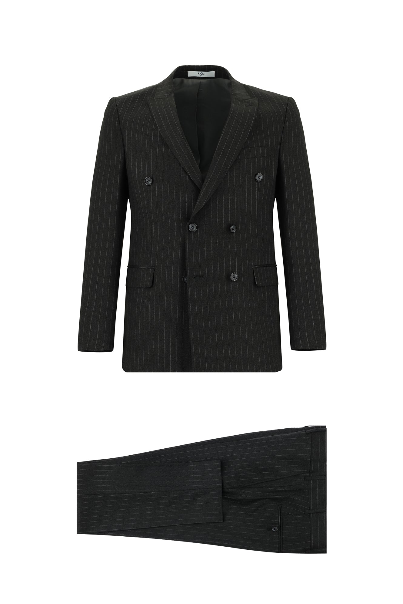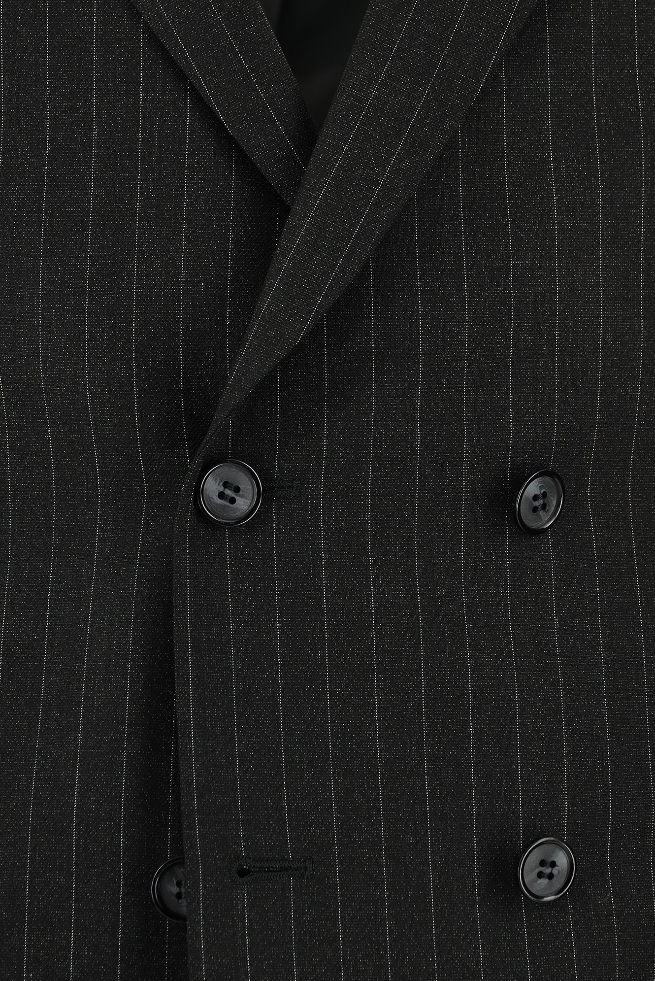 Koyu Antrasit Slim Fit Dar Kesim Çizgili Kruvaze Takım Elbise