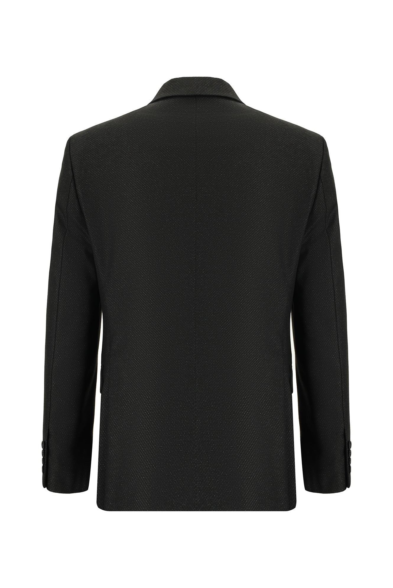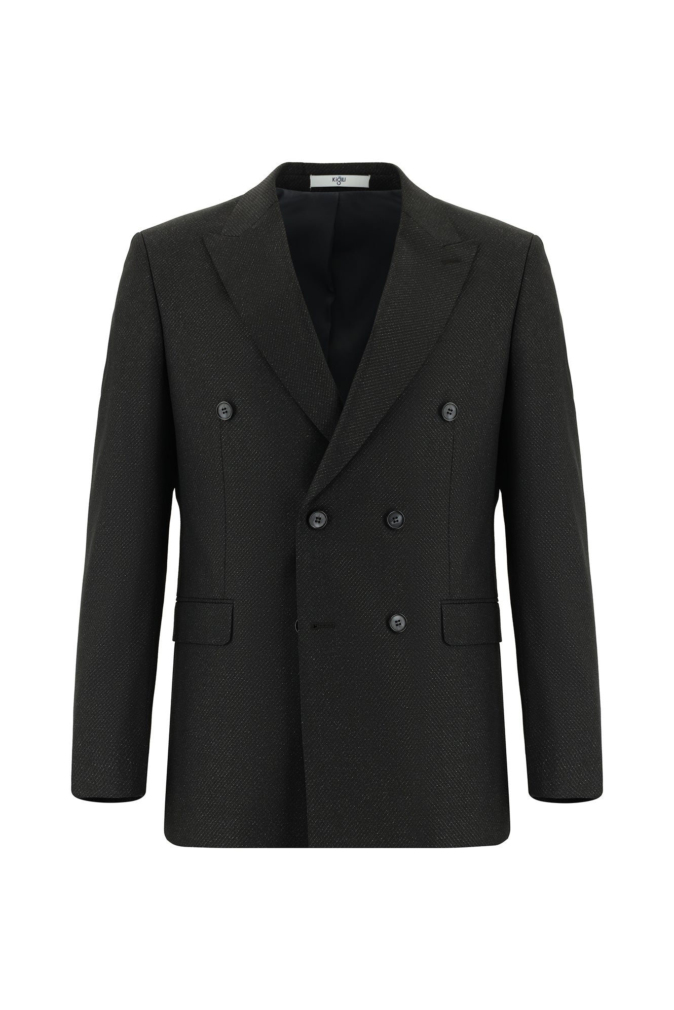 Koyu Antrasit Slim Fit Dar Kesim Desenli Kruvaze Takım Elbise
