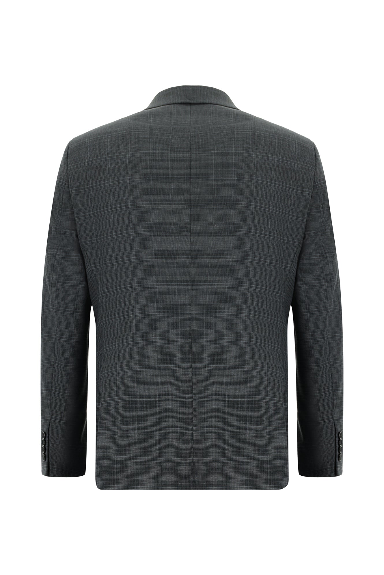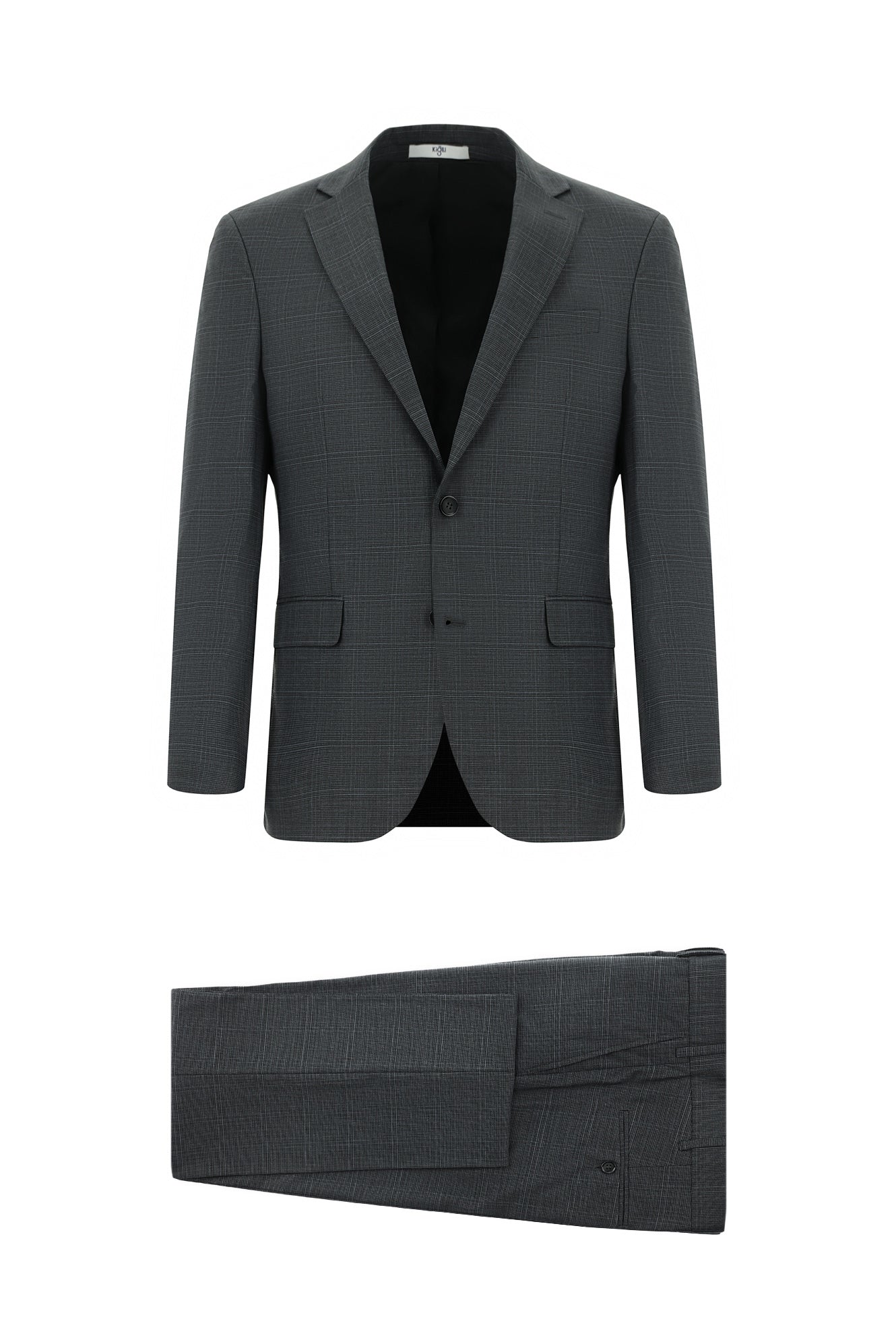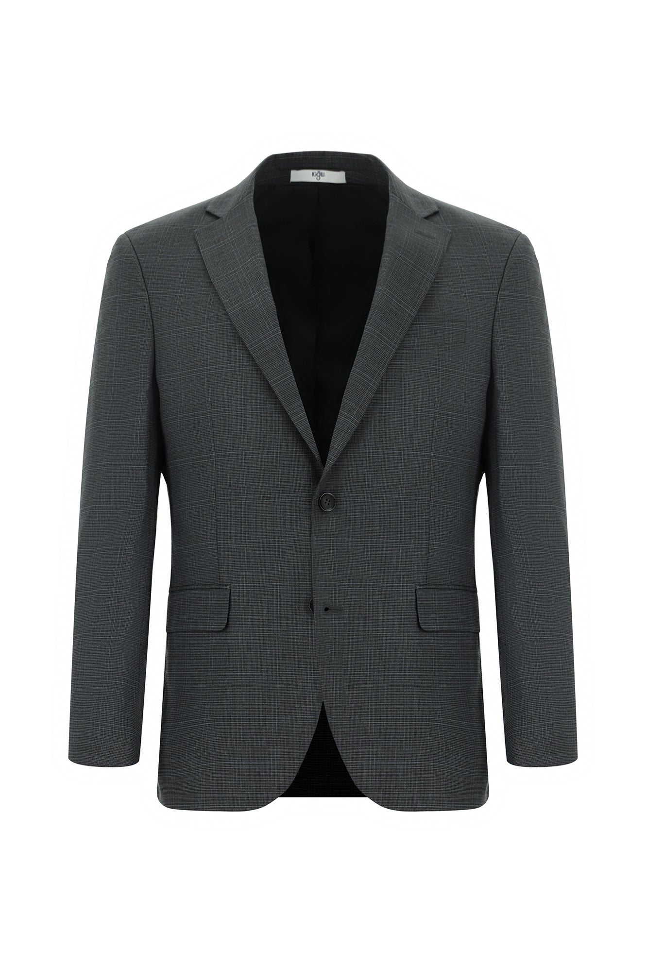 Koyu Antrasit Slim Fit Dar Kesim Klasik Ekose Takım Elbise