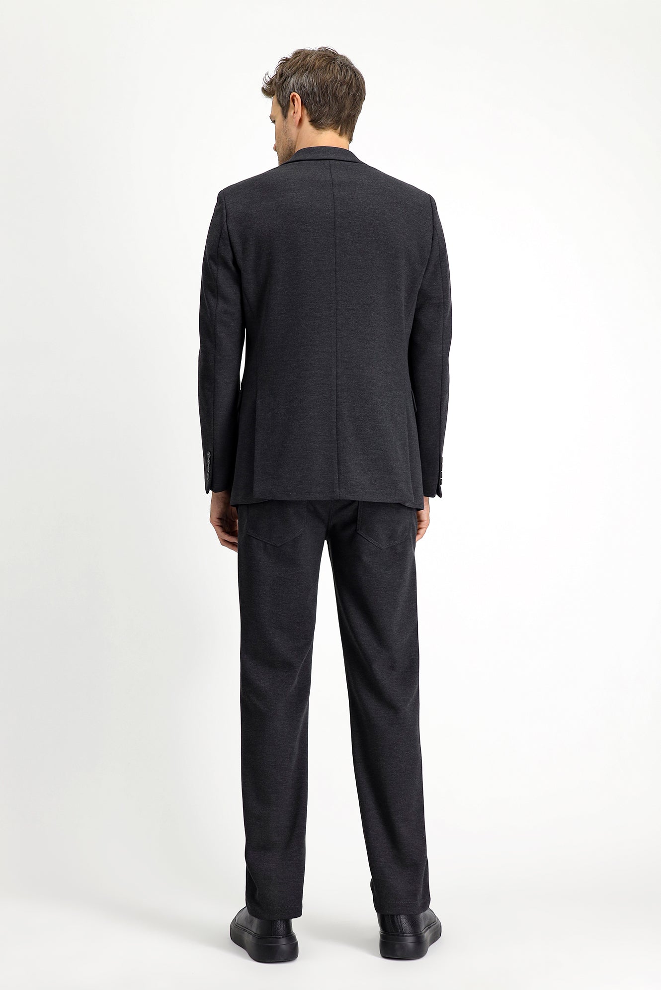 Koyu Antrasit Slim Fit Dar Kesim Likralı Örme Klasik Kumaş Pantolon