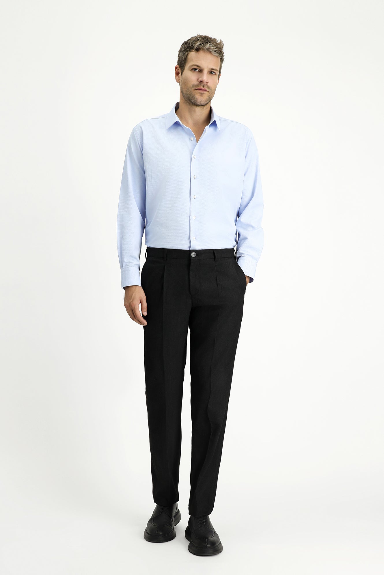 Koyu Antrasit Slim Fit Dar Kesim Likralı Pileli Klasik Kumaş Pantolon