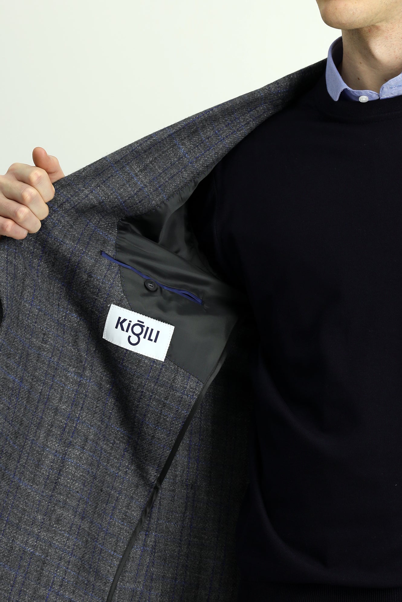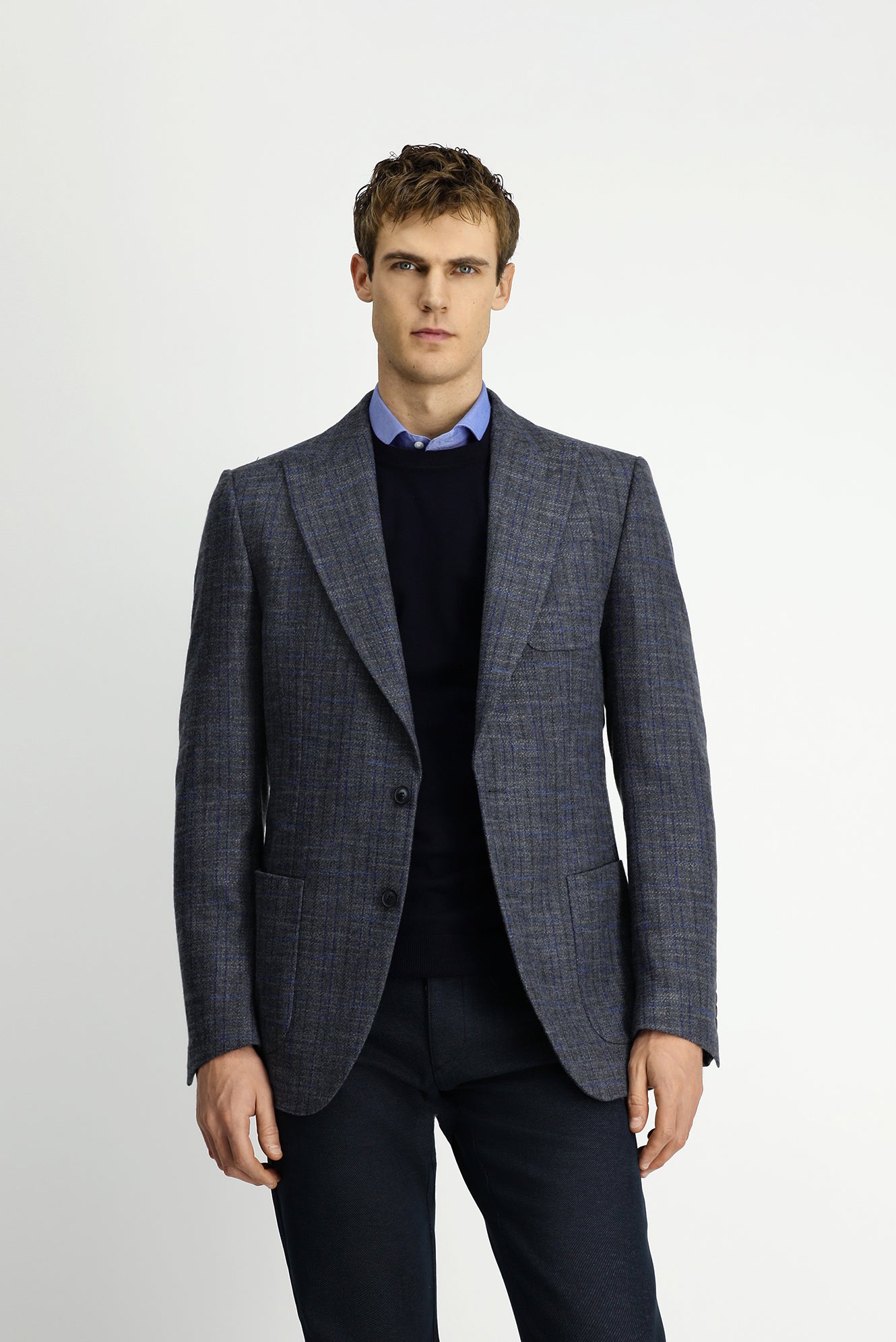 Koyu Antrasit 7 Drop Slim Fit Dar Kesim Yünlü Ekose Spor Yarım Astar Torba Cep Sivri Yaka Ceket