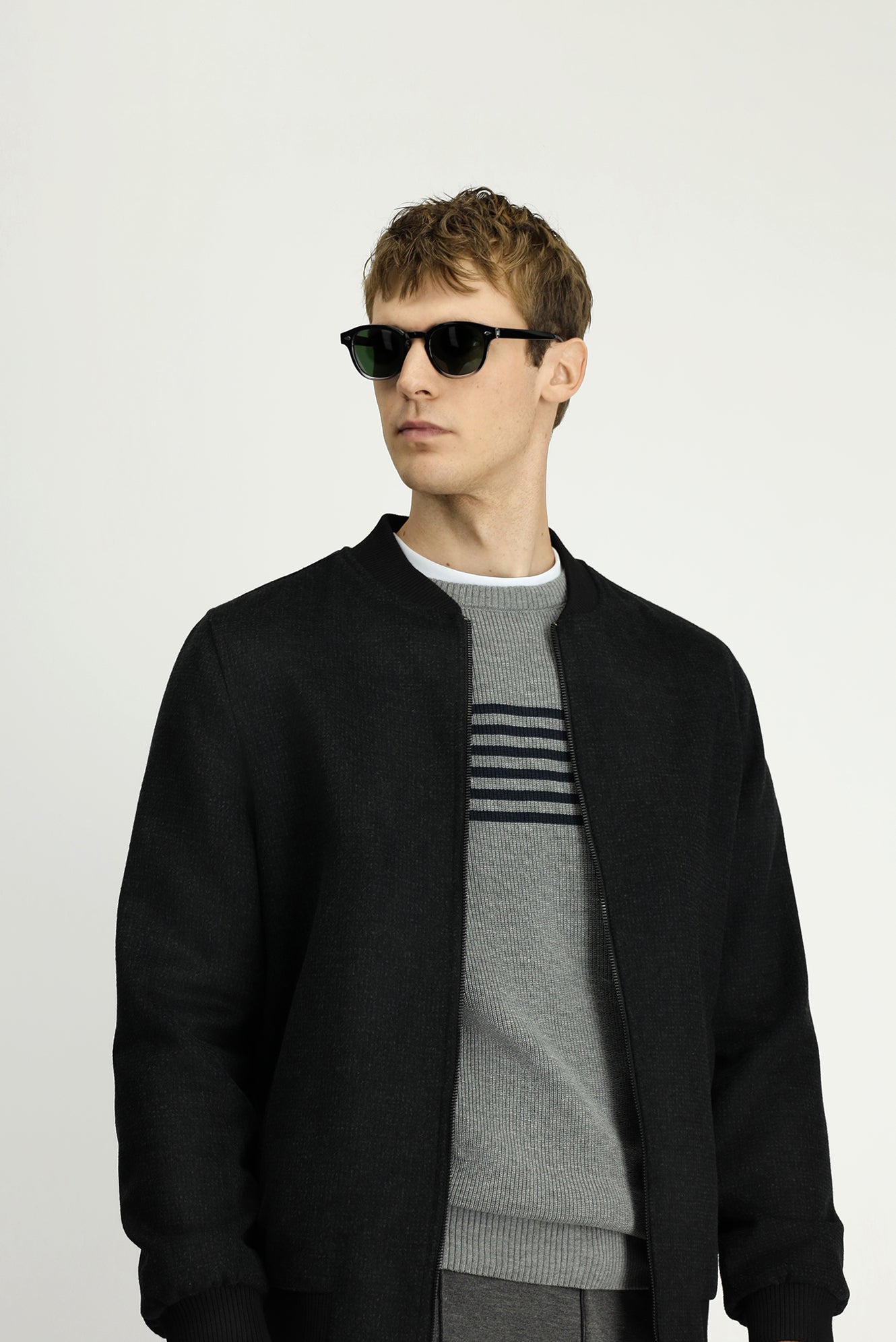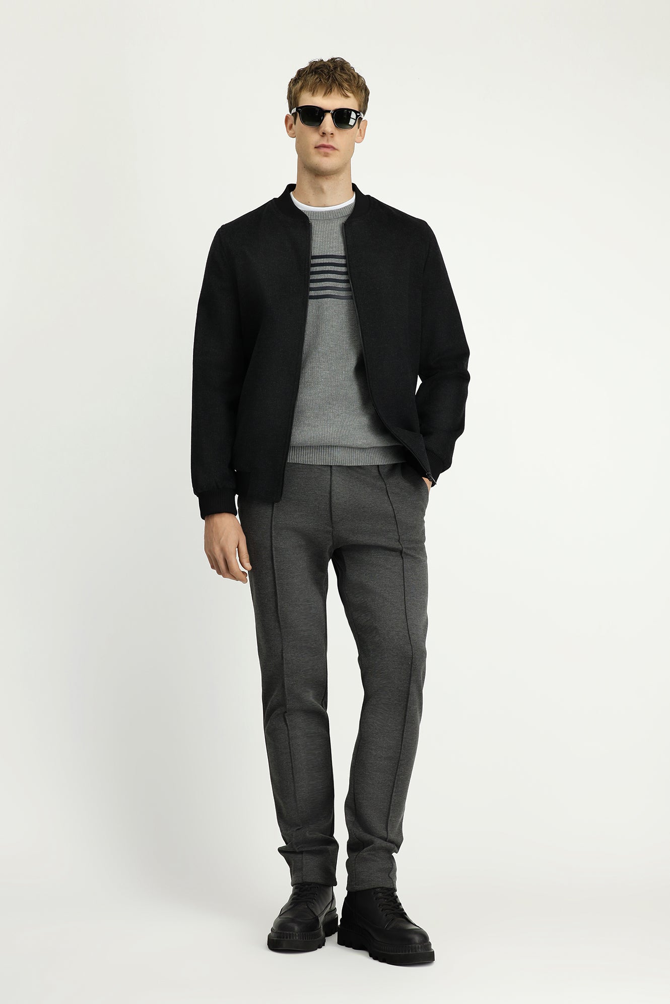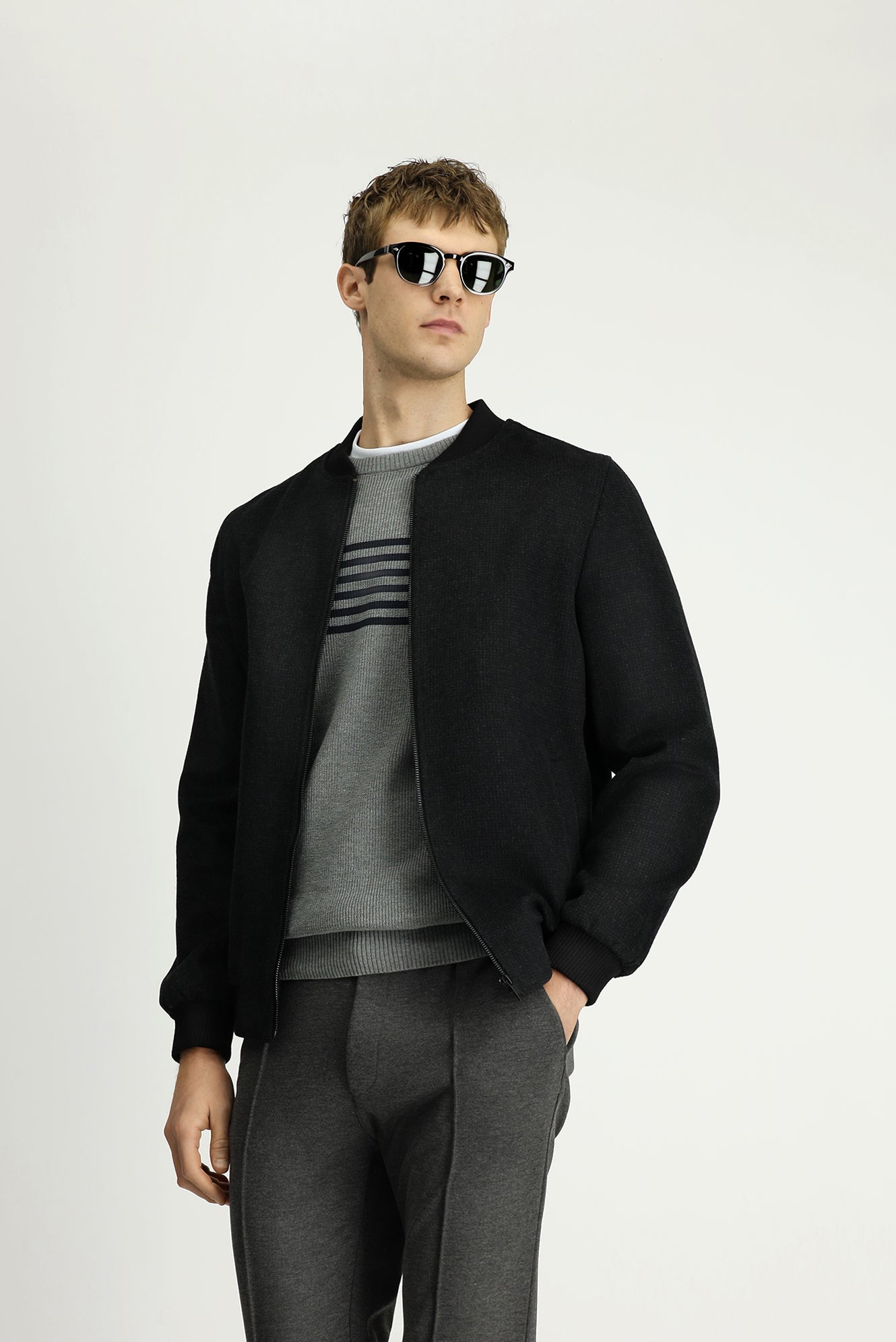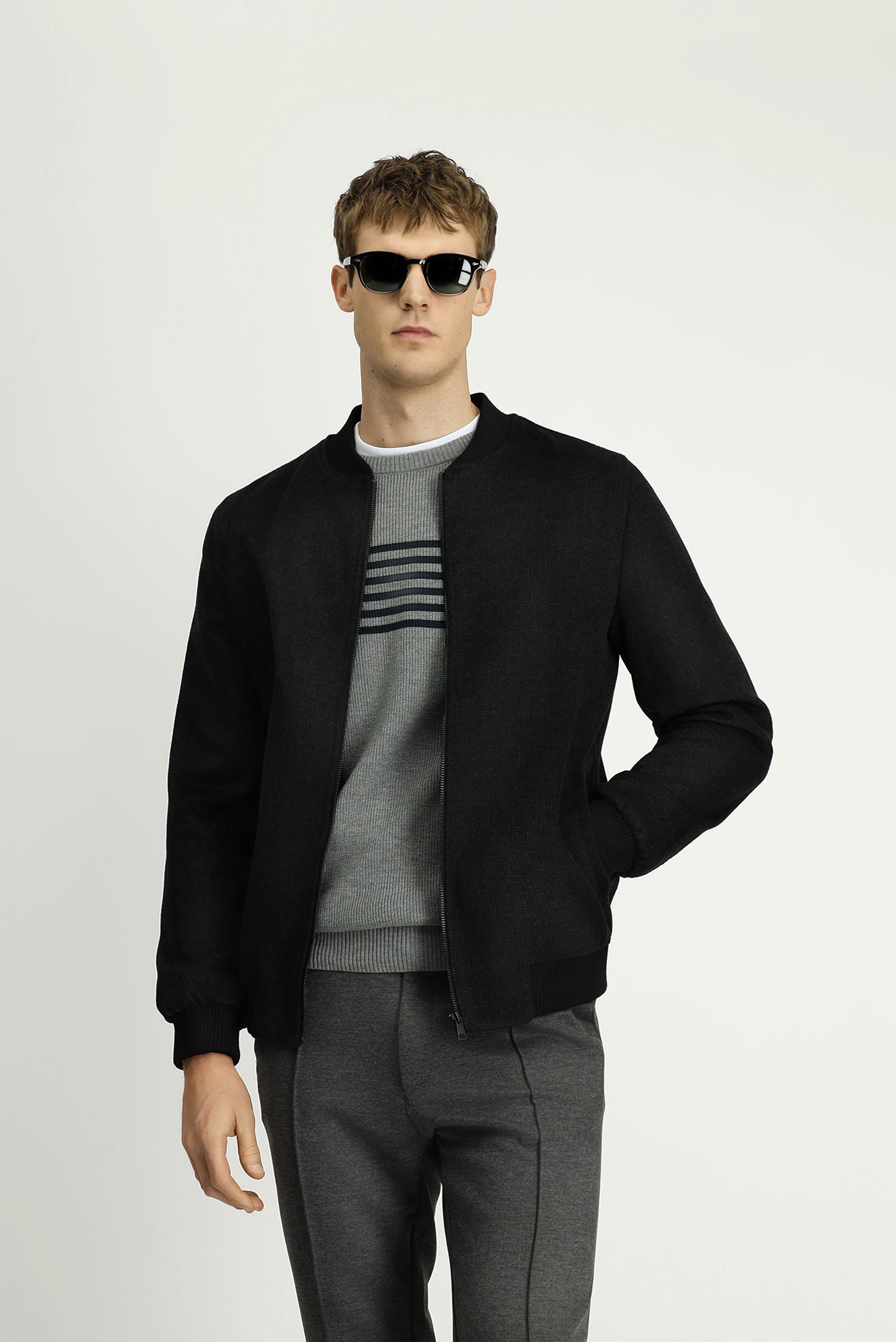 Koyu Antrasit Spor Yünlü Bomber Ceket Mont
