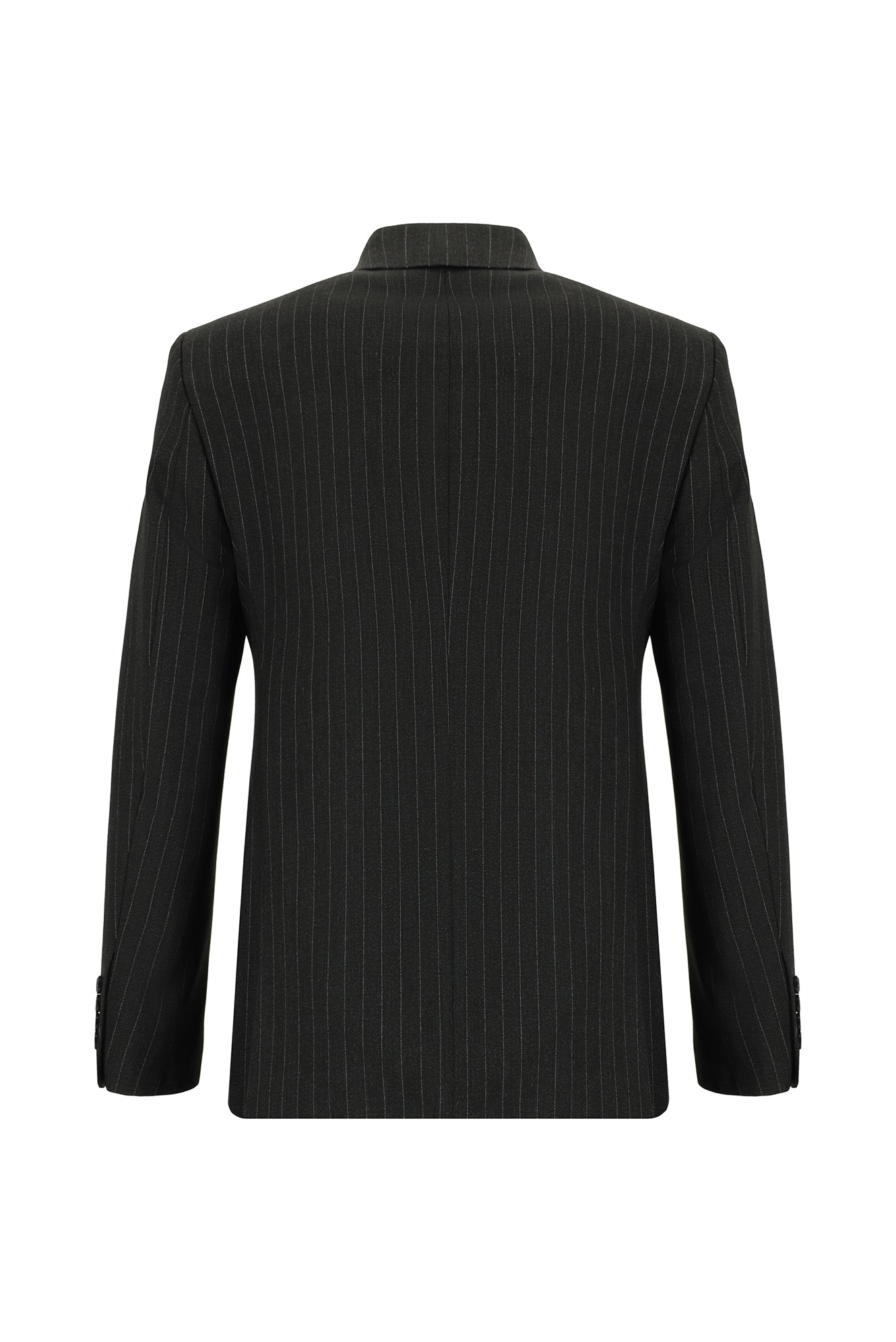 Koyu Antrasit Super Slim Fit Ekstra Dar Kesim Çizgili Kruvaze Takım Elbise