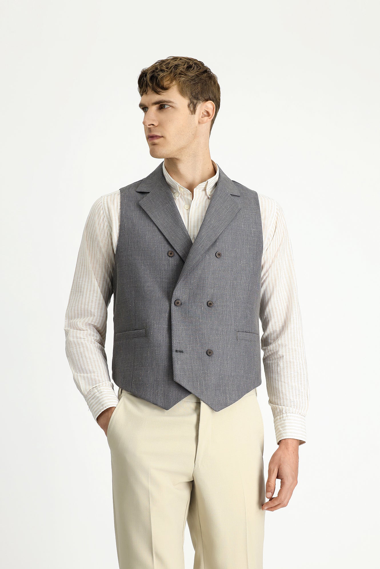Koyu Antrasit Yünlü Keten Karışımlı Klasik Kruvaze Yelek