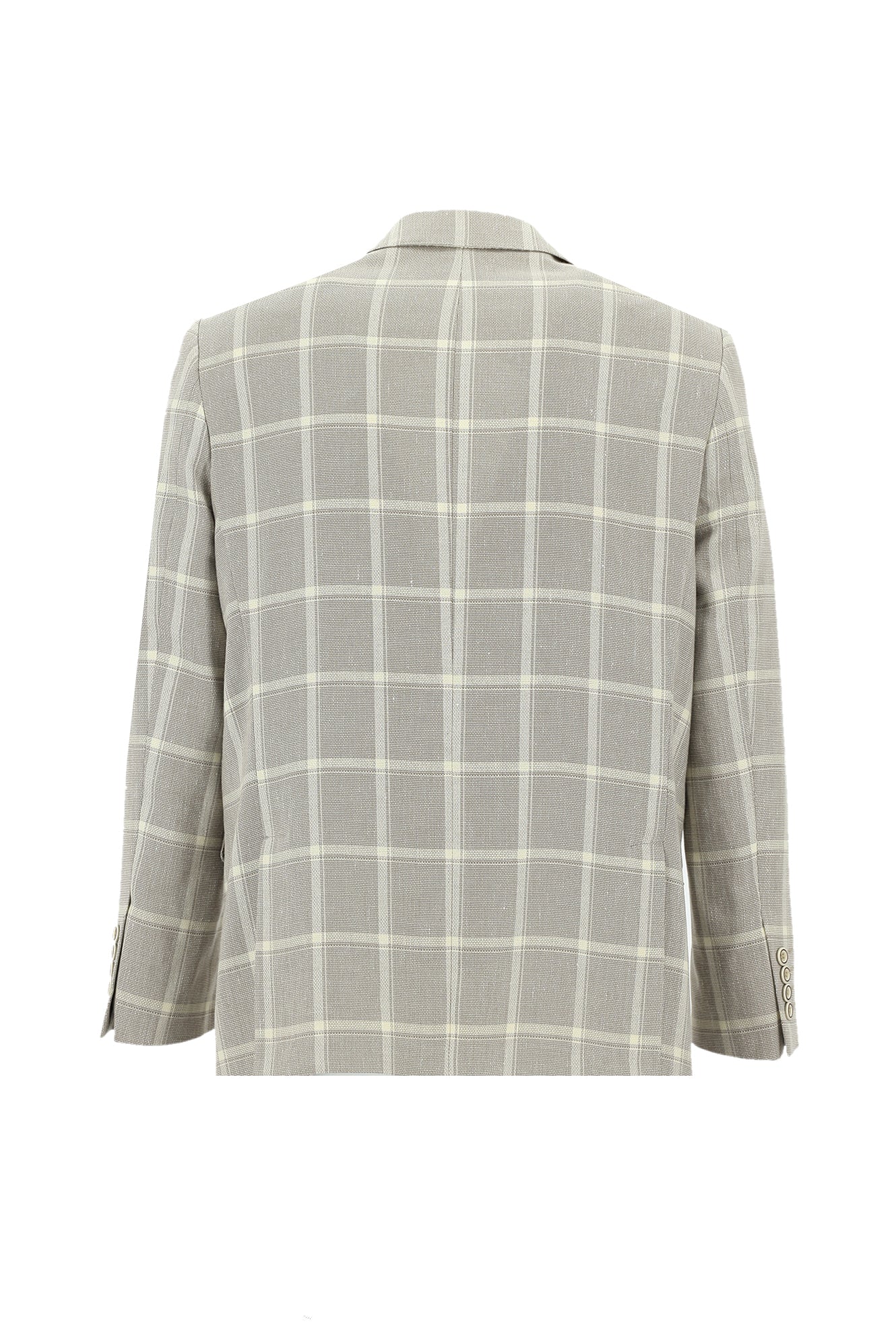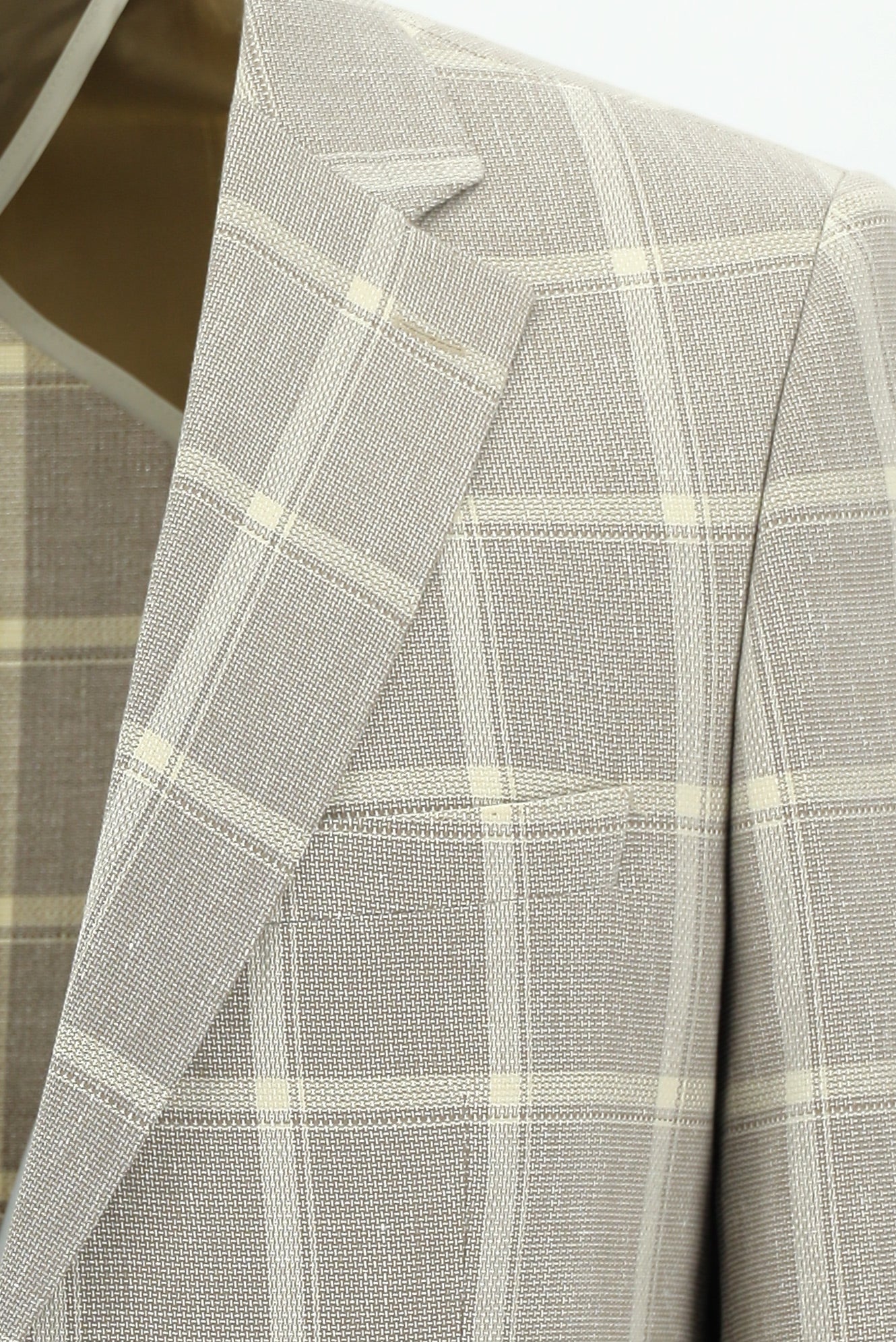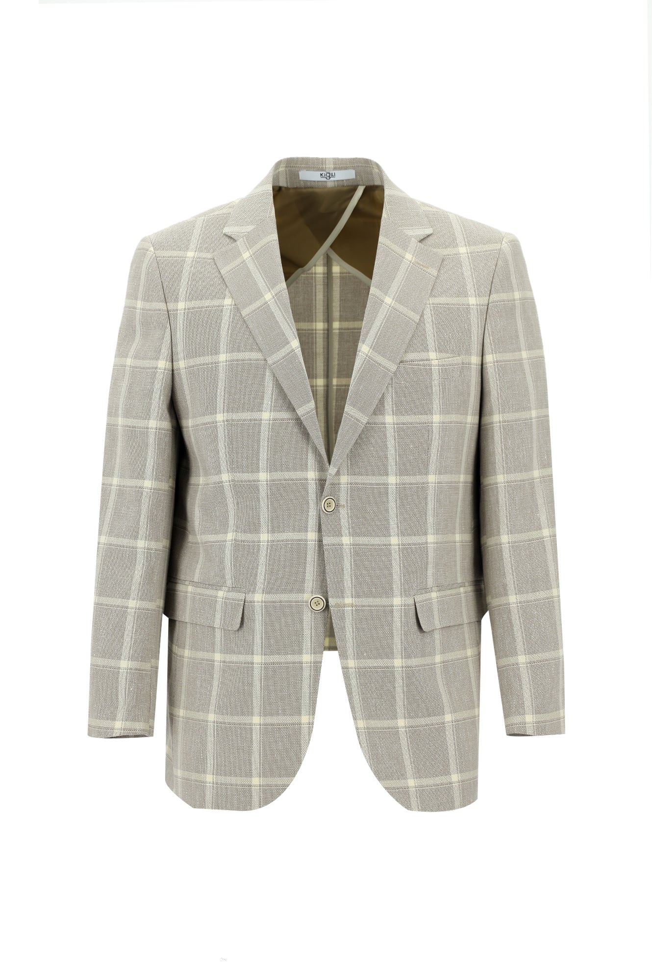 Koyu Bej Regular Fit Ekose Keten Karışımlı Ceket