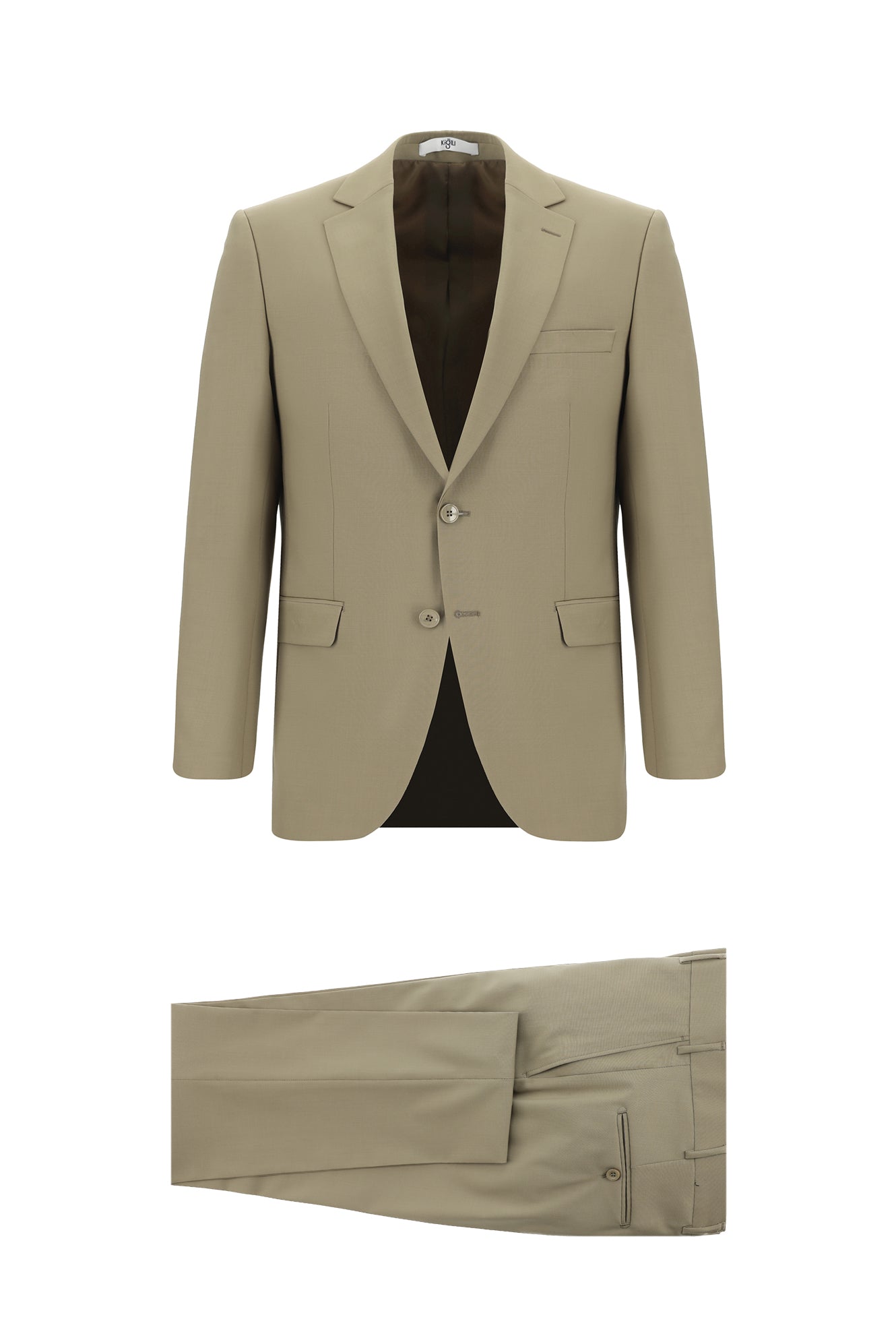 Koyu Bej 6 Drop Regular Fit Standart Kesim Yünlü Klasik Takım Elbise
