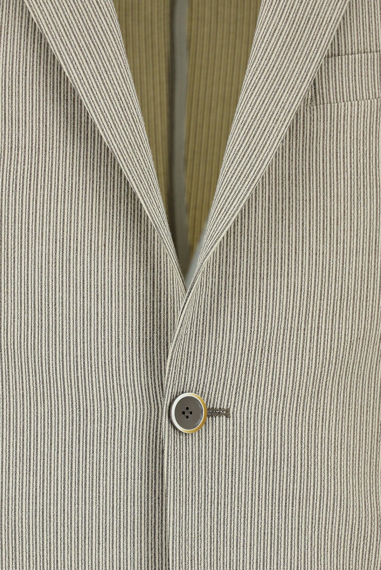Koyu Bej 7 Drop Slim Fit Dar Kesim Çizgili Beli Lastikli İpli Takım Elbise