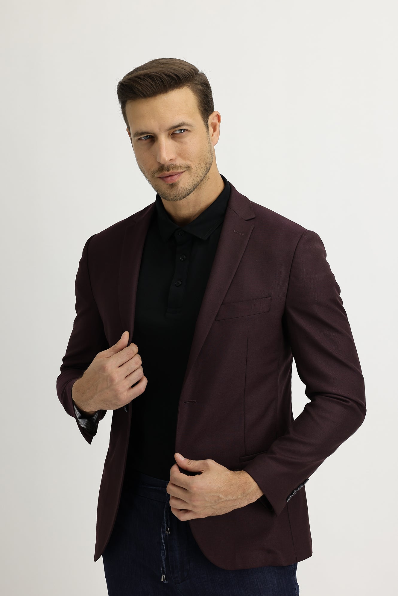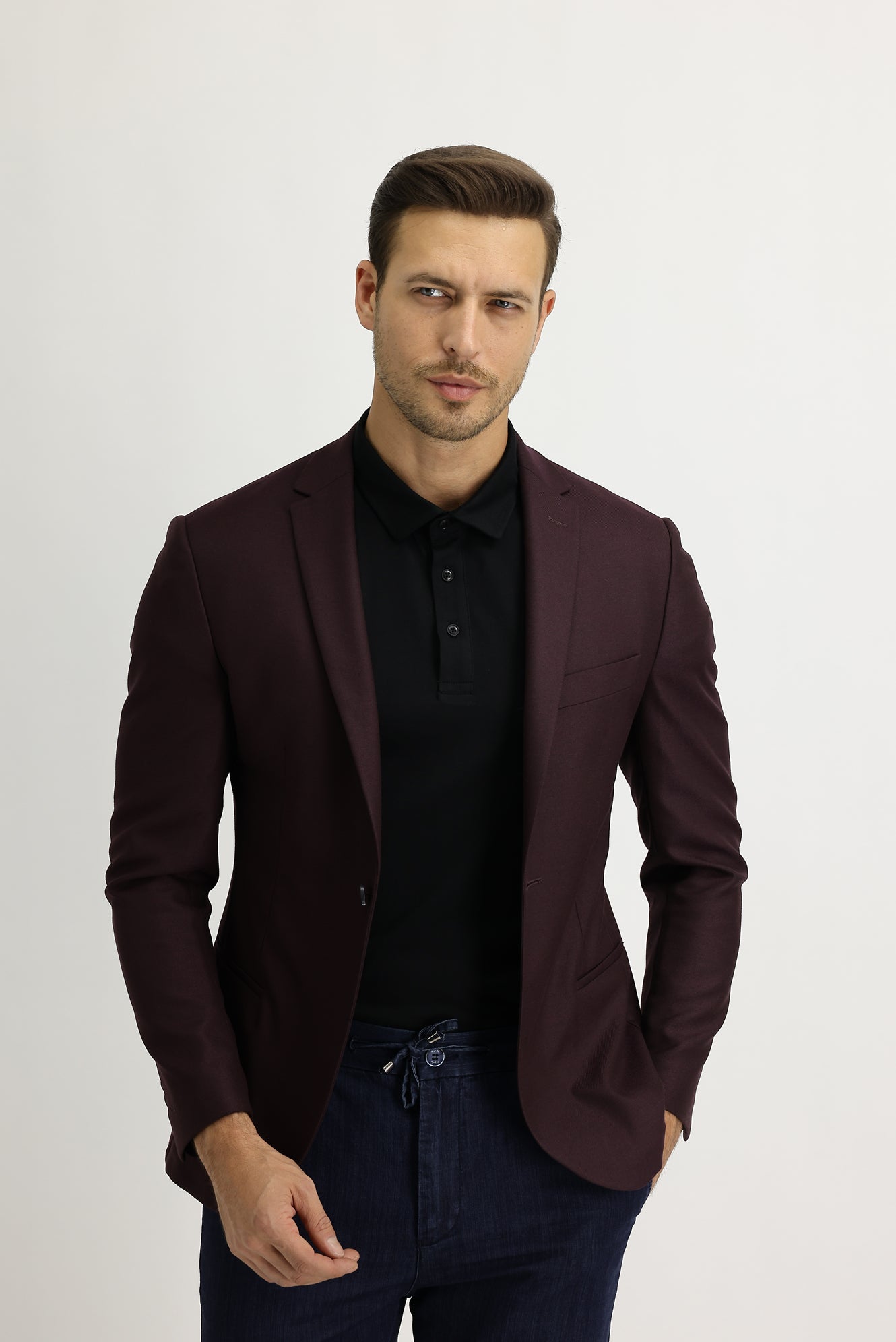 Koyu Bordo Super Slim Fit Ekstra Dar Kesim Spor Ceket