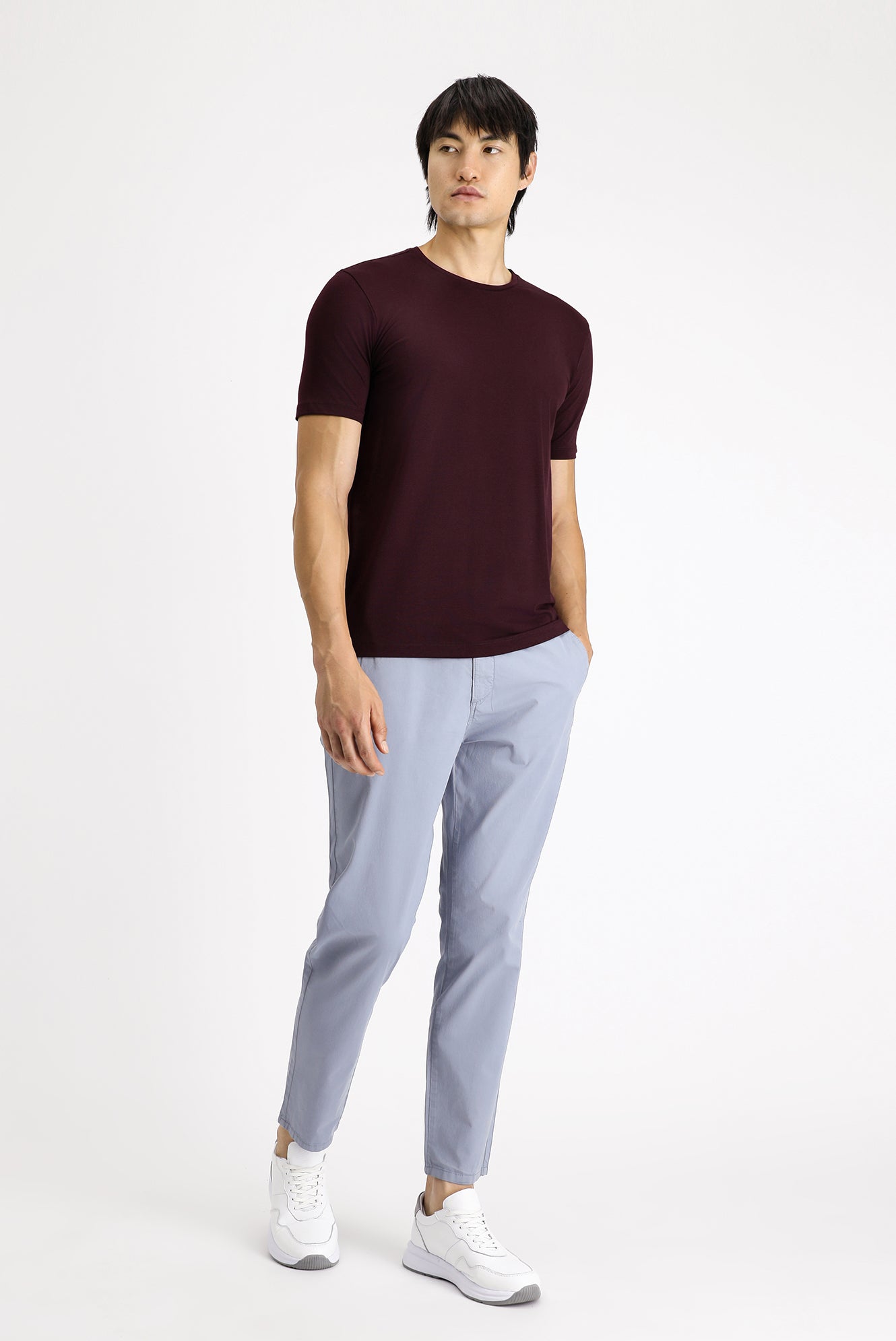 Koyu Bordo Bisiklet Yaka Slim Fit Dar Kesim Pamuklu Tişört