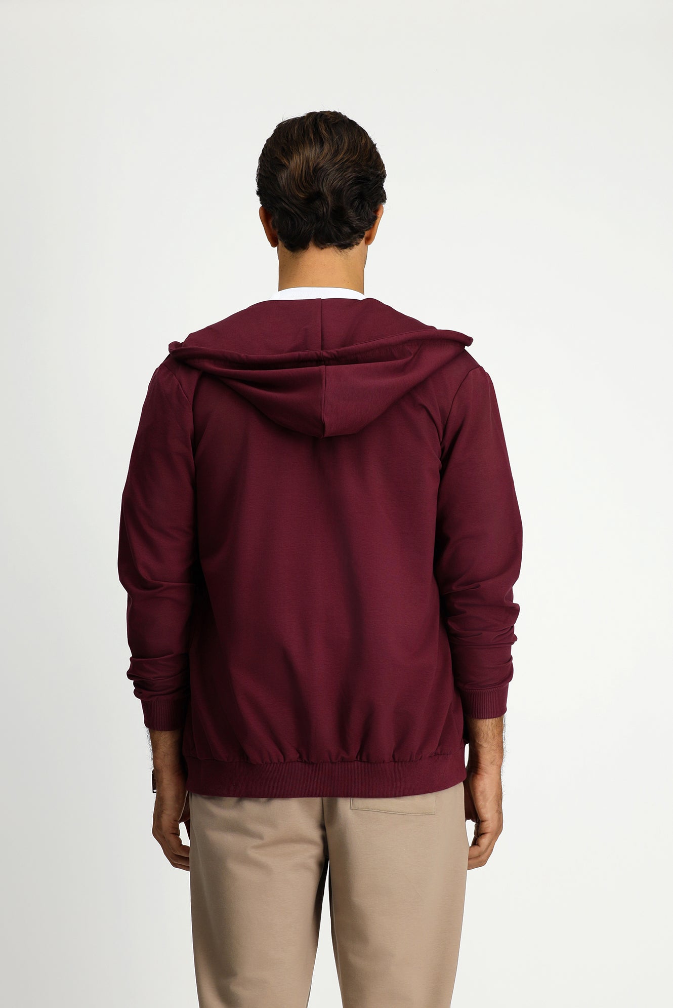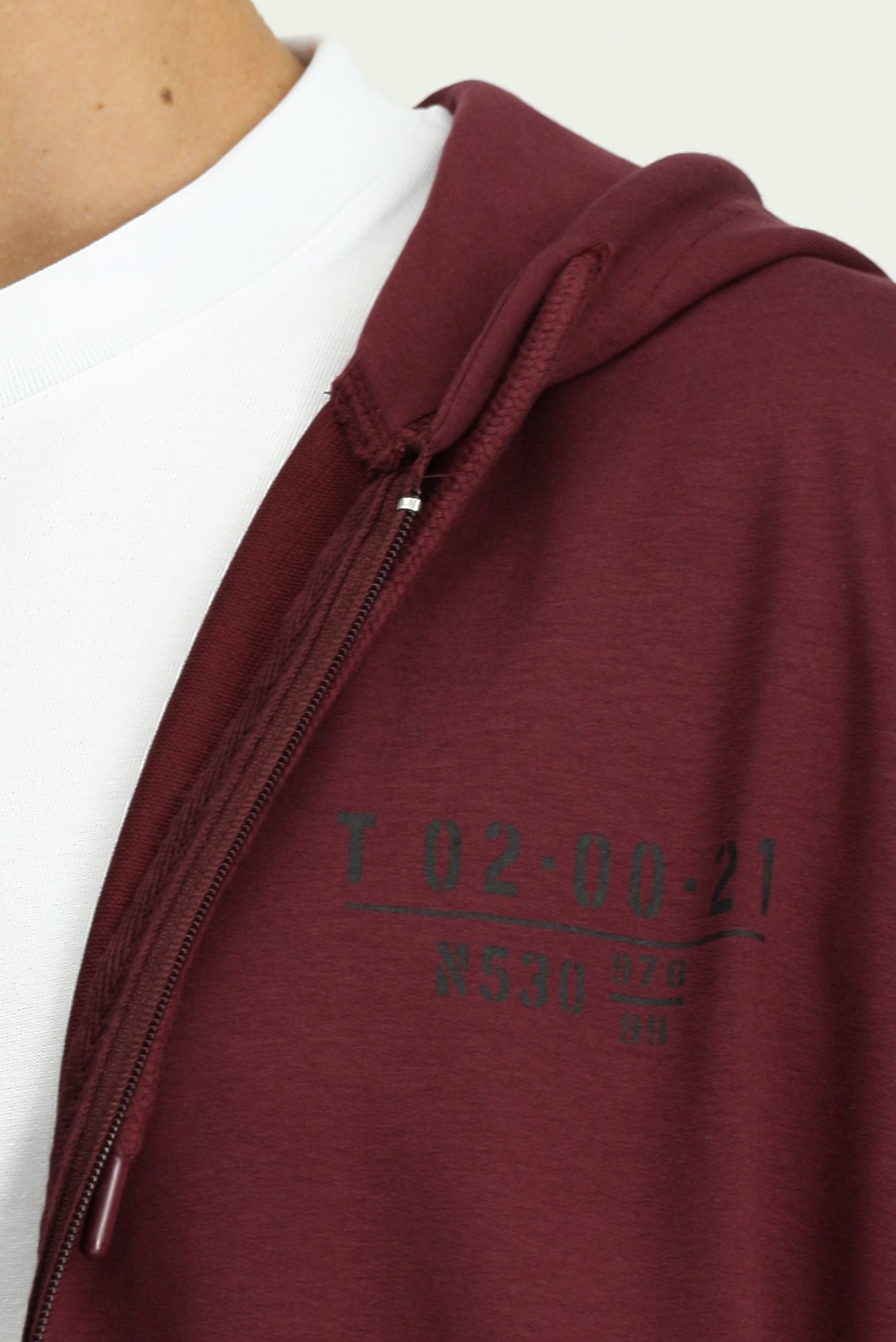 Koyu Bordo Kapüşonlu Regular Fit Fermuarlı Baskılı Pamuklu Sweatshirt
