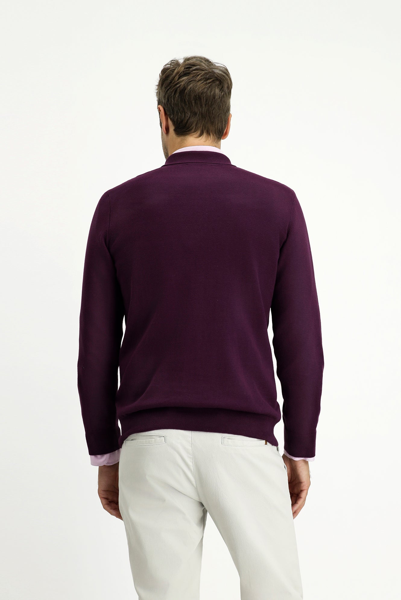 Koyu Bordo Polo Yaka Regular Fit Pamuklu Kaşmirli Triko Kazak