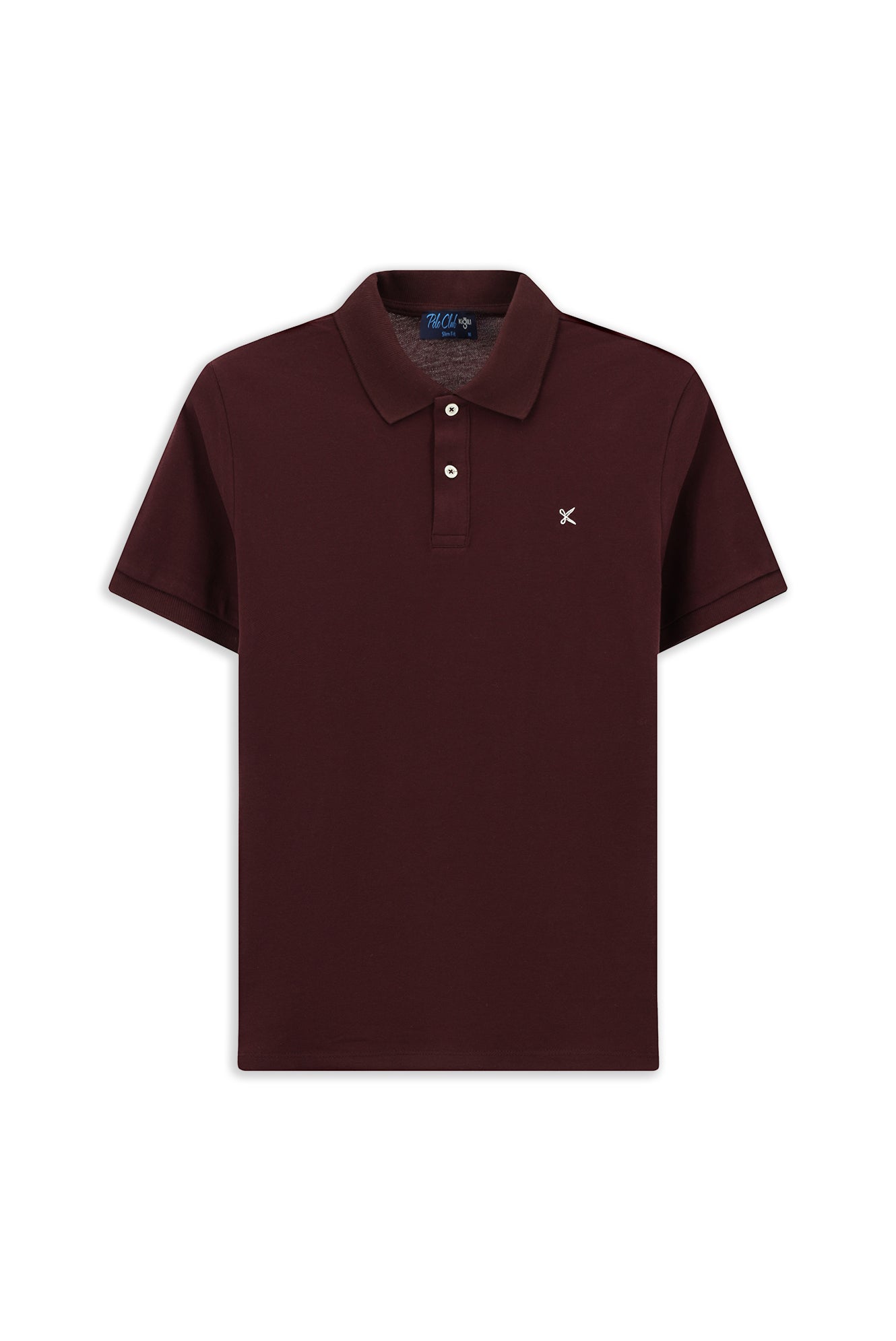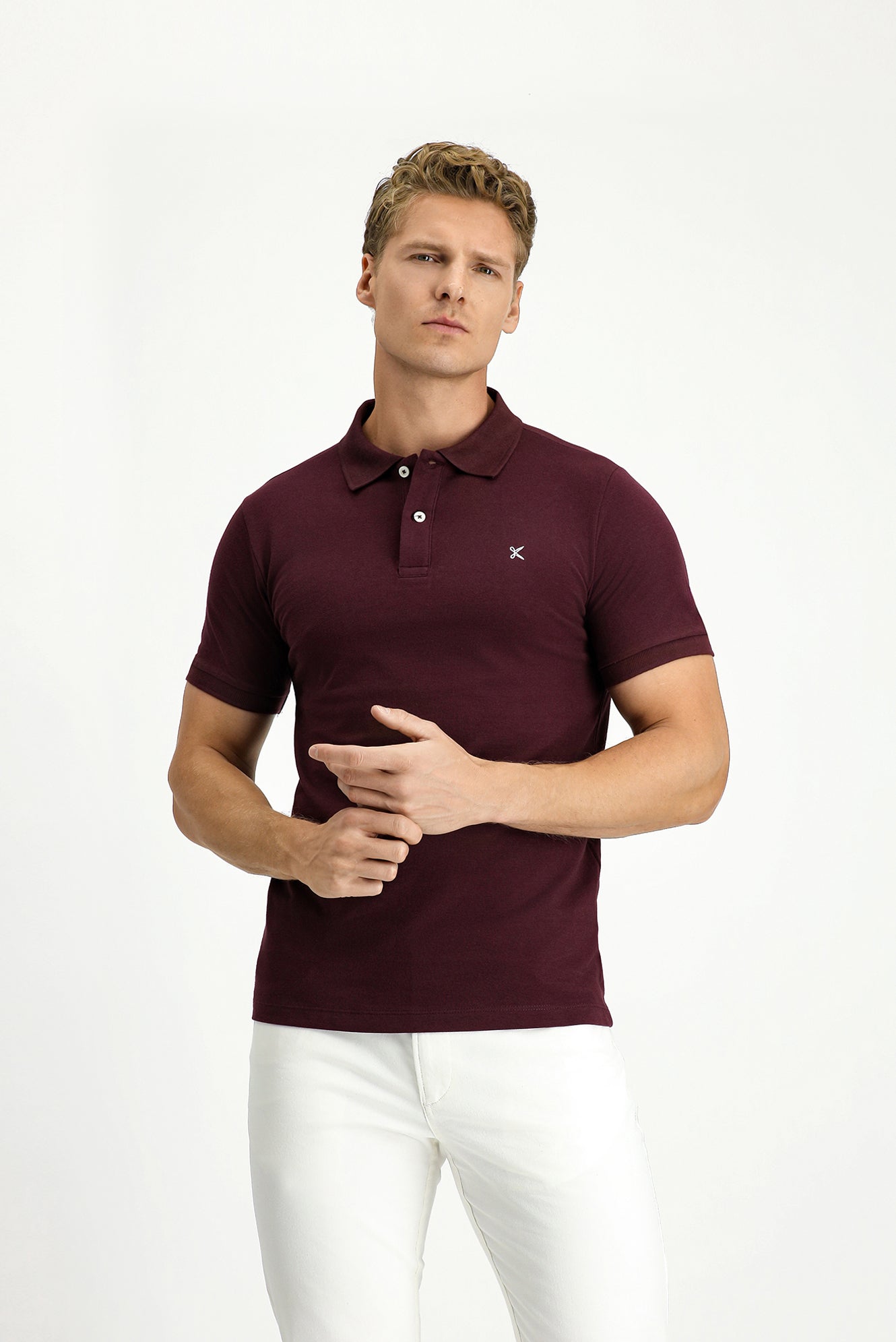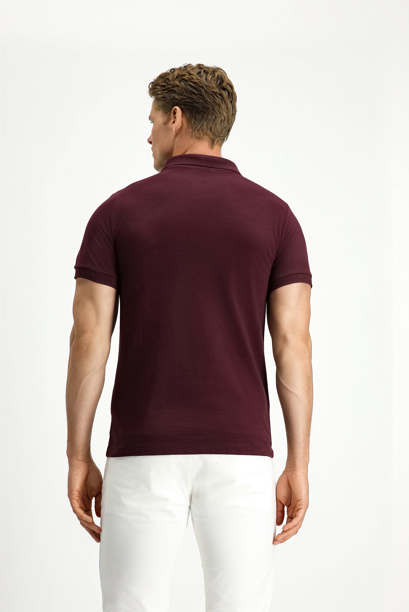 Koyu Bordo Polo Yaka Slim Fit Dar Kesim Nakışlı Pamuk Tişört