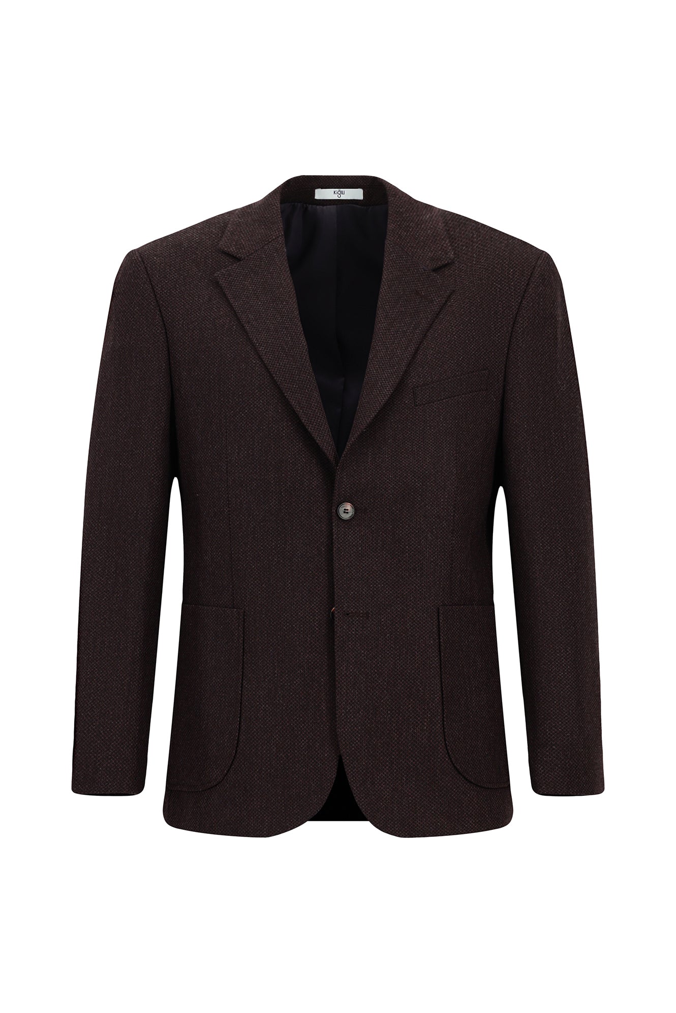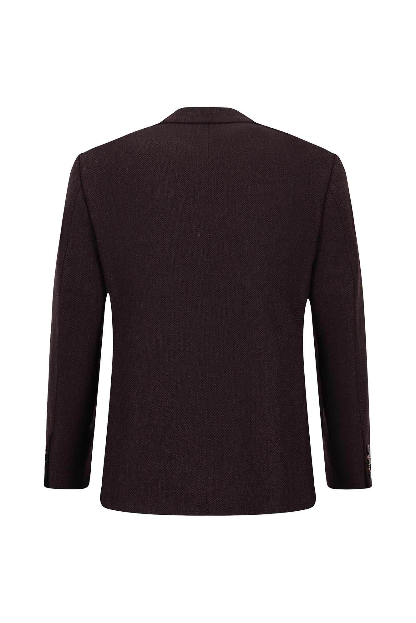 Koyu Bordo Relaxed Fit Rahat Kesim Desenli Yünlü Ceket