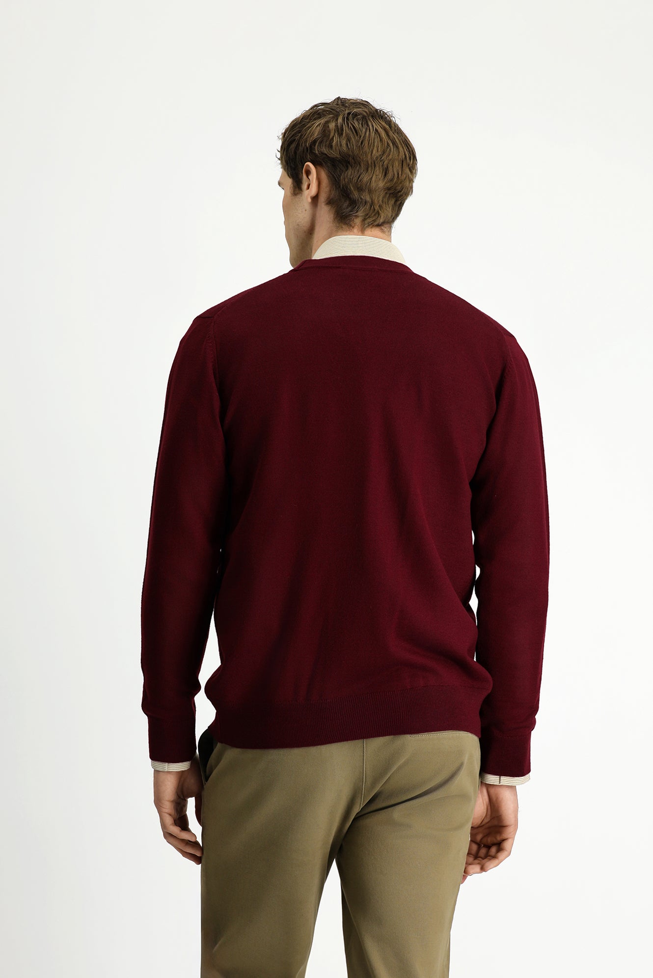 Koyu Bordo V Yaka Düğmeli Yünlü Örme Triko Hırka