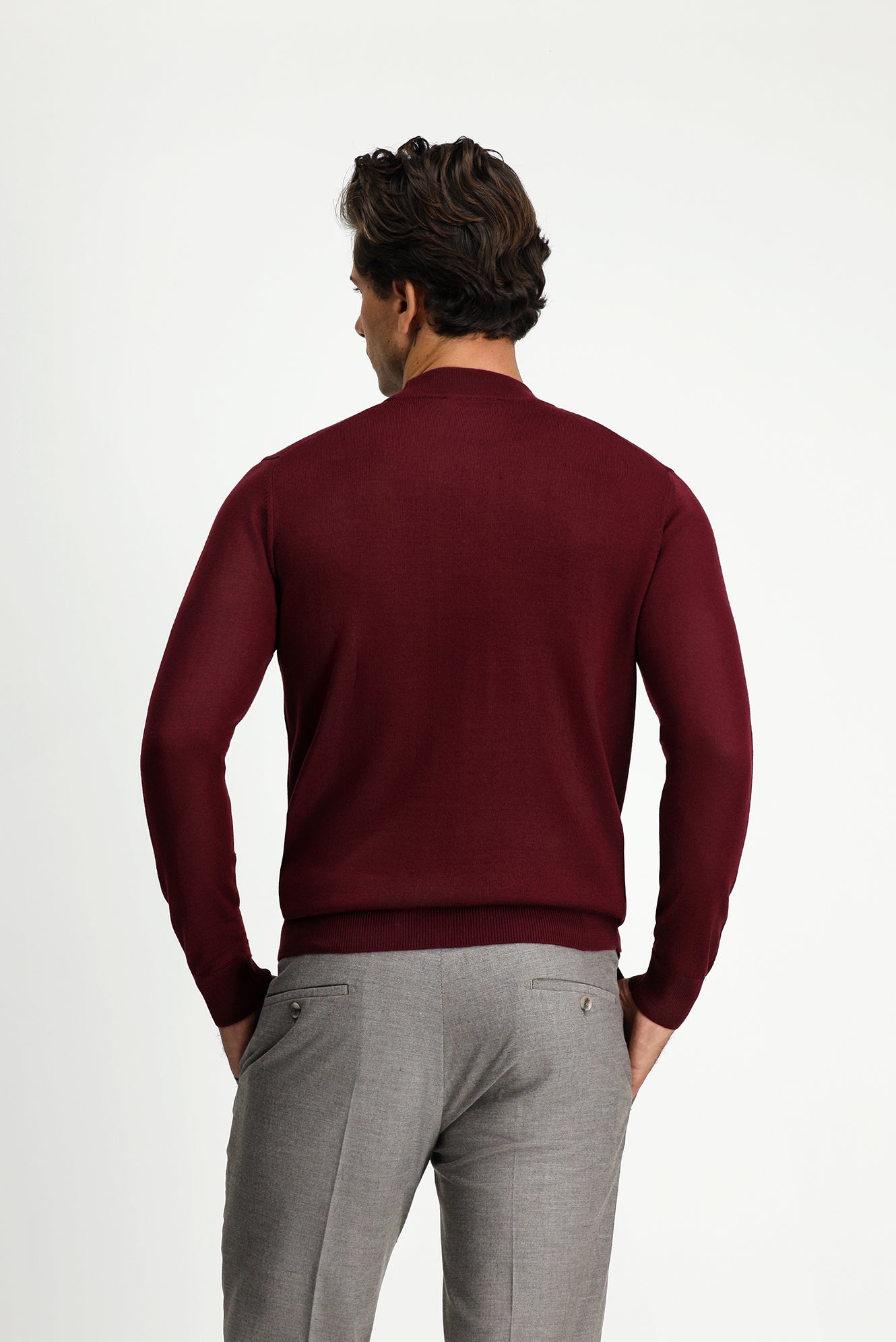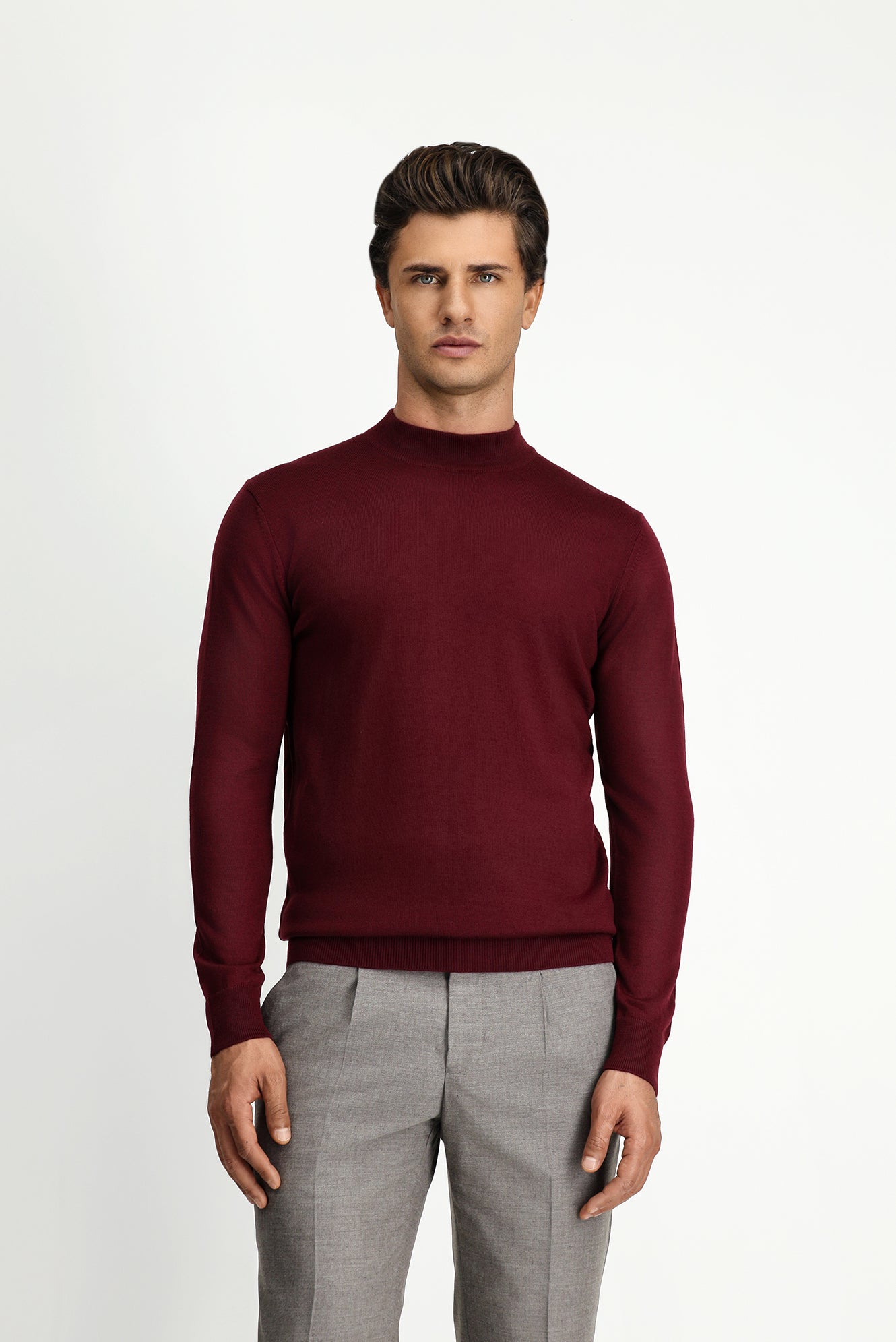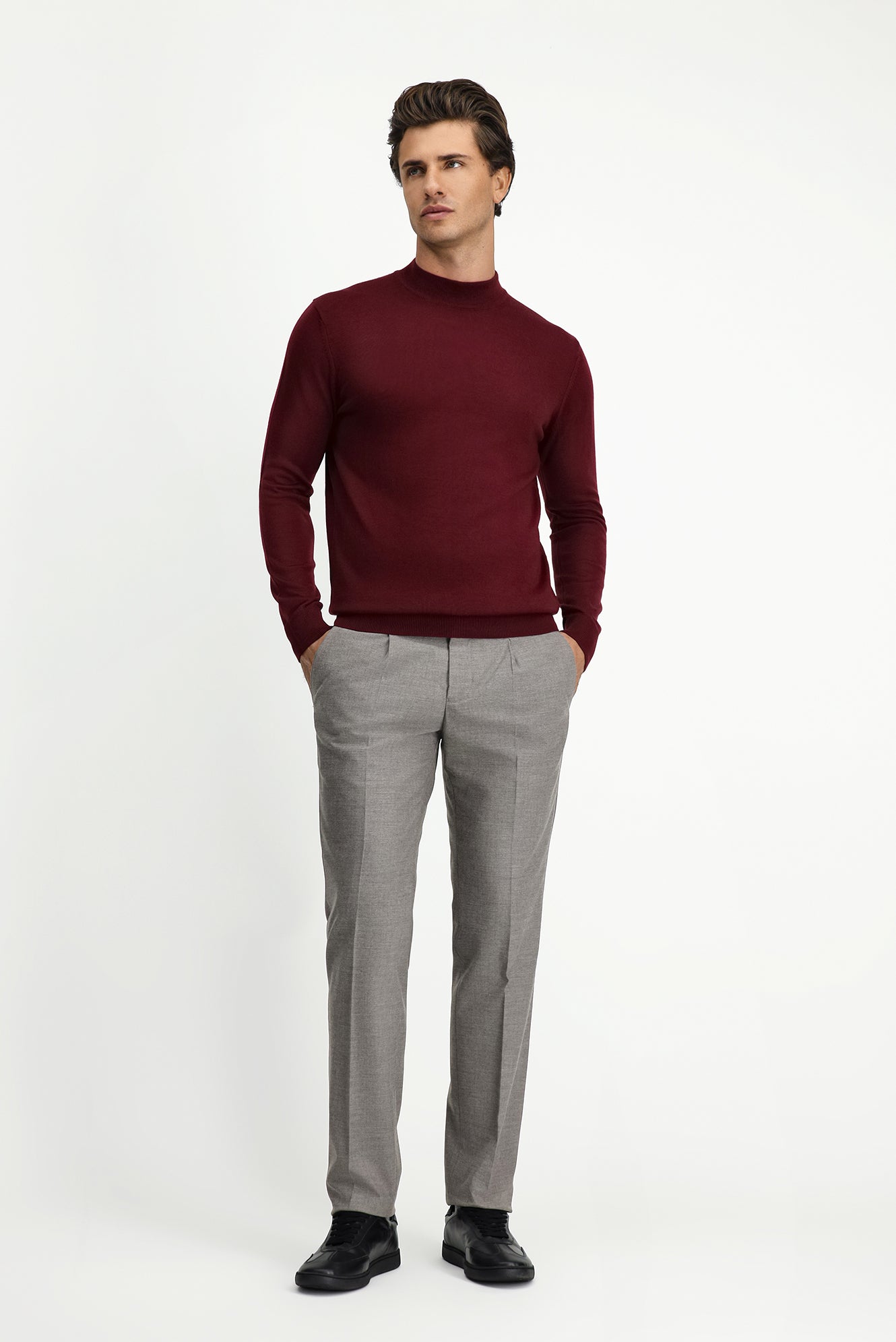 Koyu Bordo Yarım Balıkçı Yaka Regular Fit Yünlü Triko Kazak