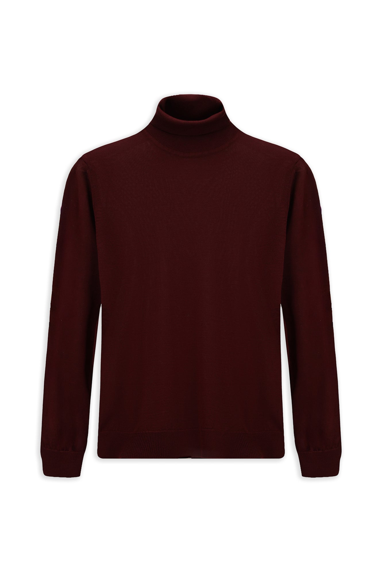 Koyu Bordo Balıkçı Yaka Regular Fit Yünlü Triko Kazak