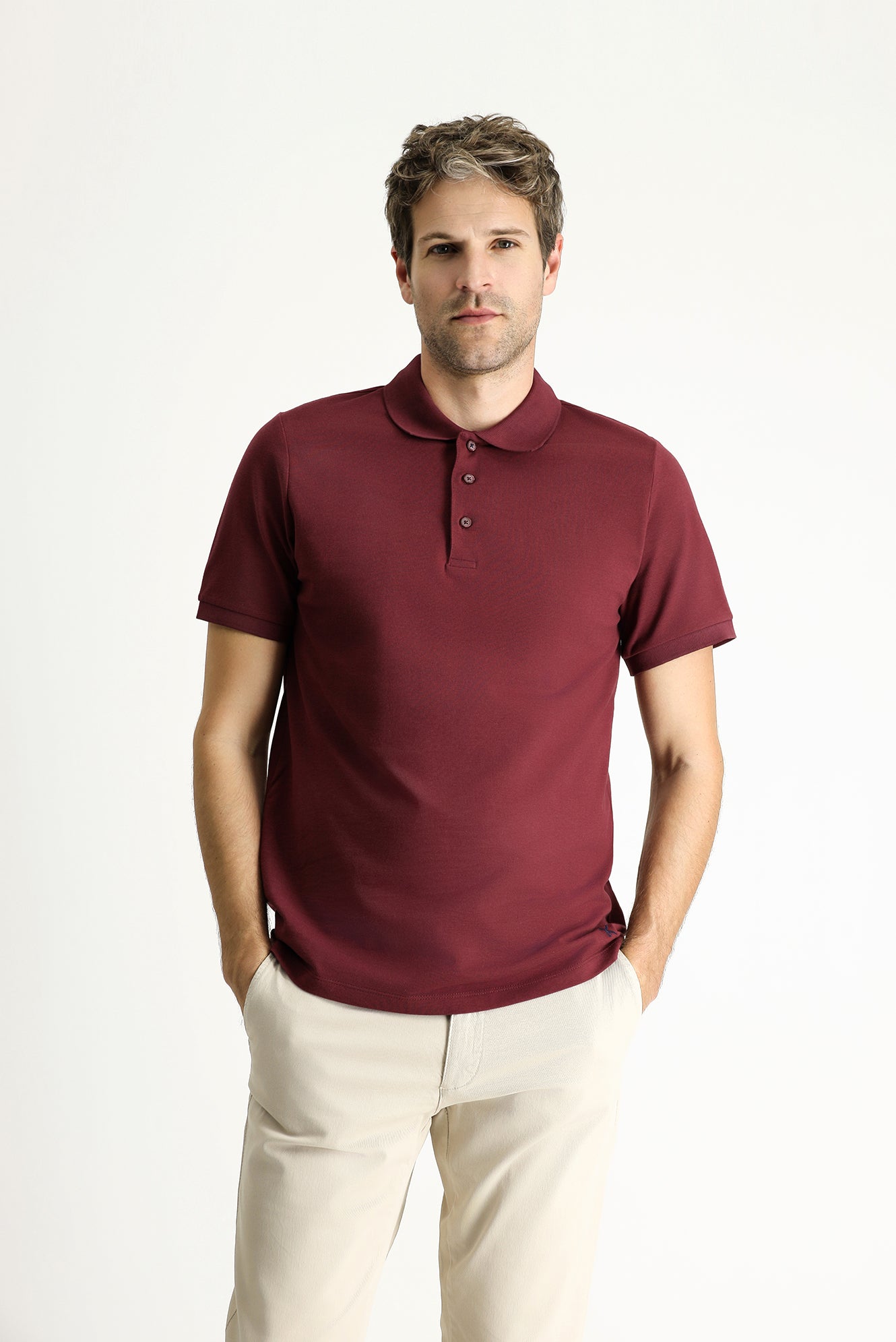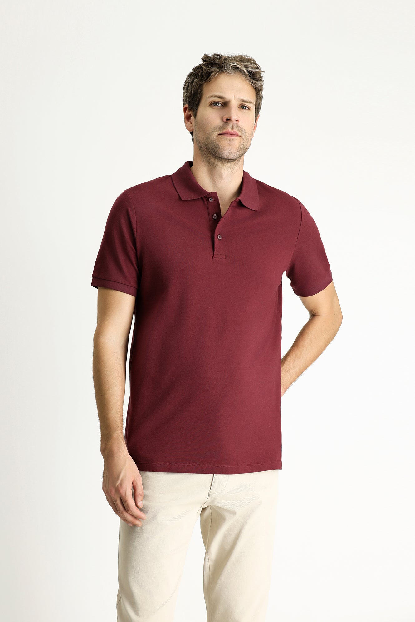 Koyu Bordo Slim Fit Dar Kesim Nakışlı Pamuk Polo Yaka Tişört