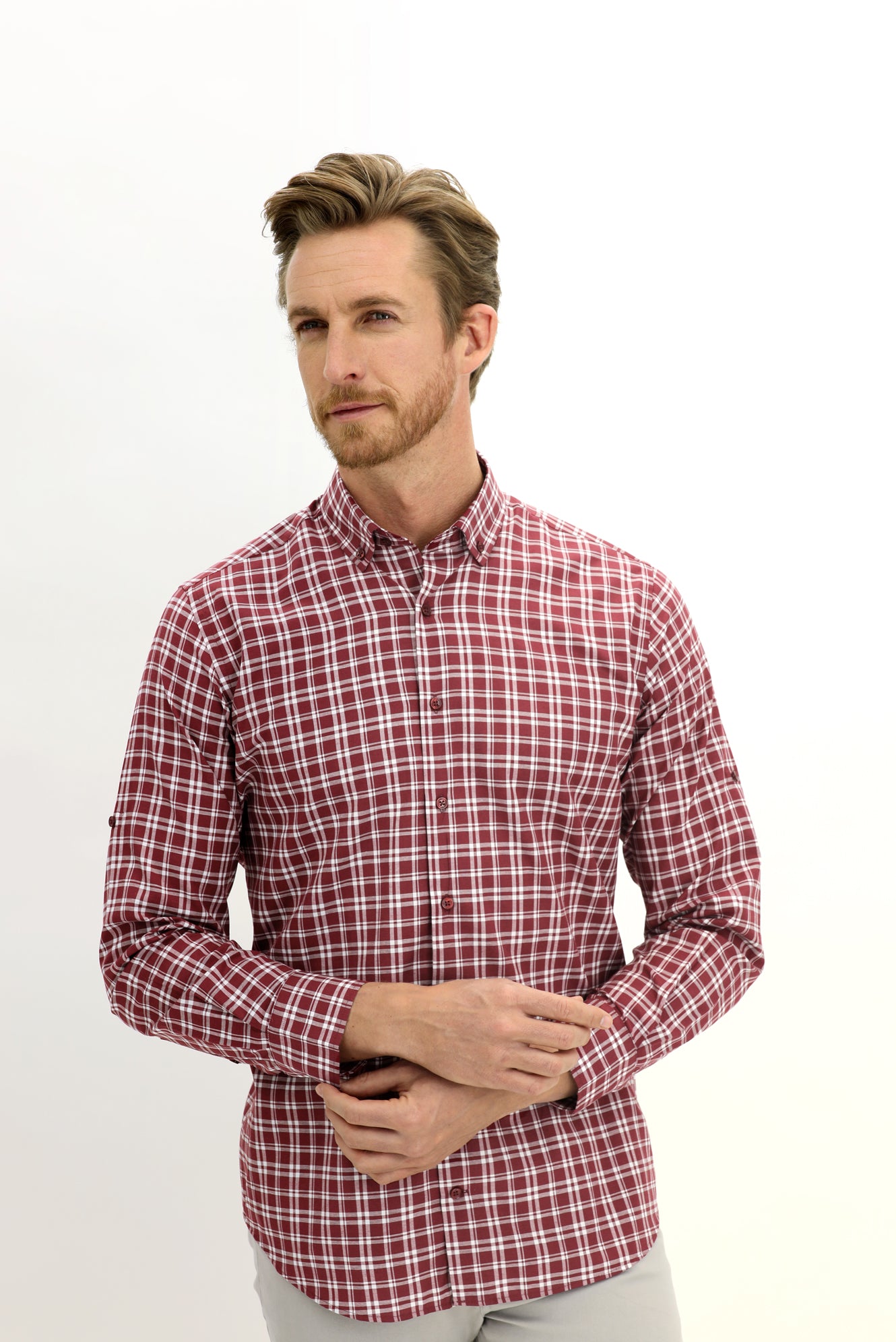 Koyu Bordo Uzun Kol Regular Fit Ekose Spor Gömlek