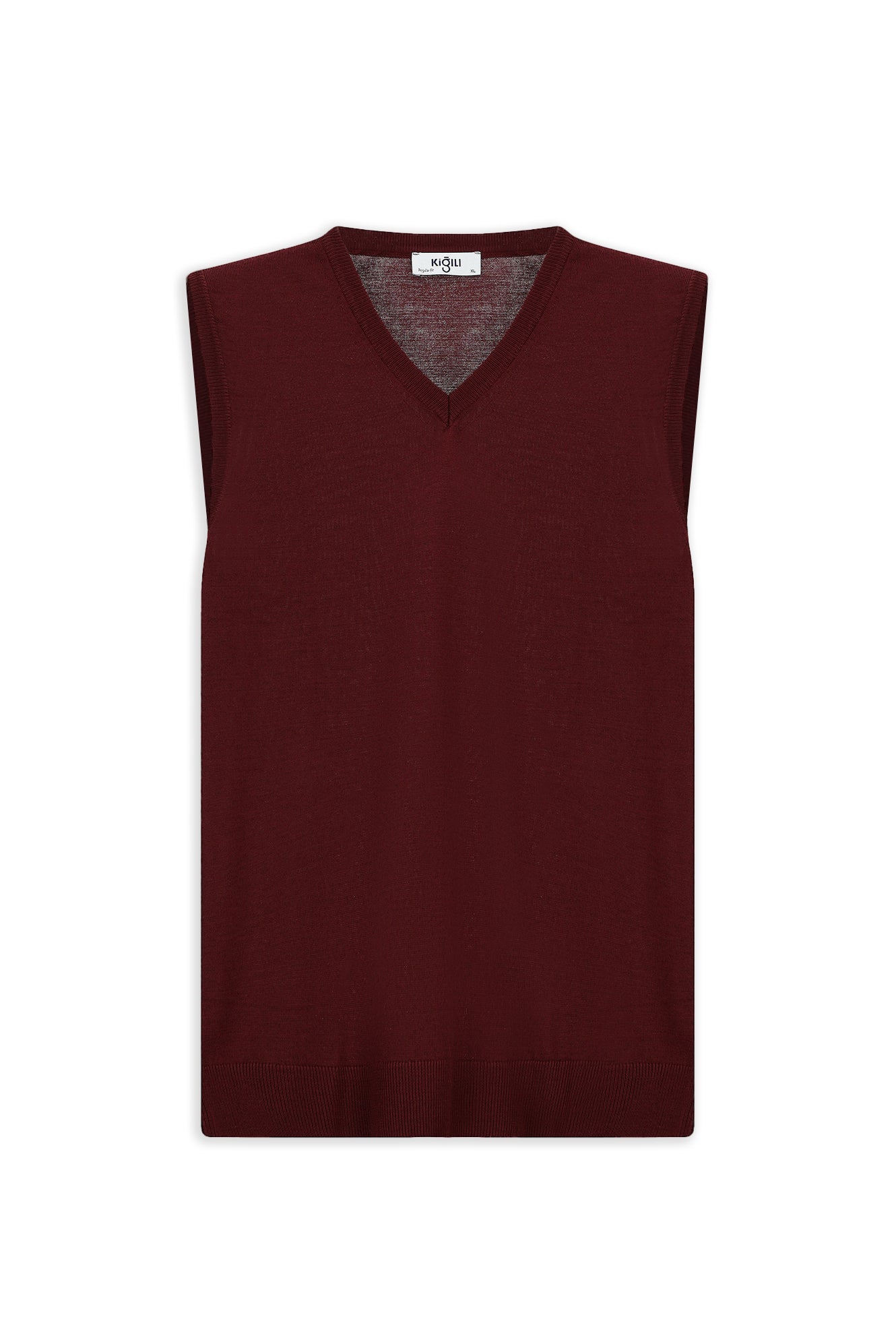 Koyu Bordo V Yaka Yünlü Triko Süveter