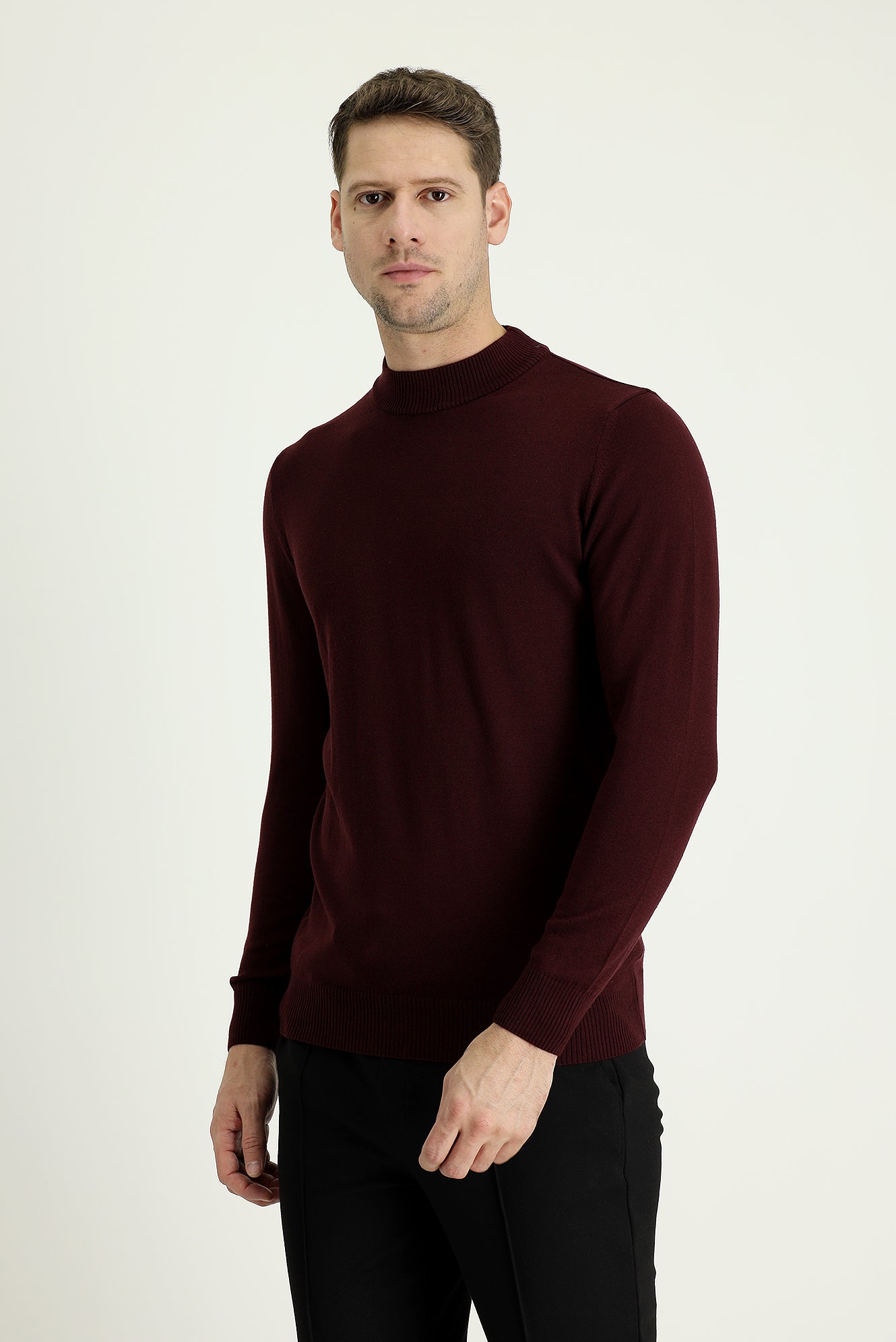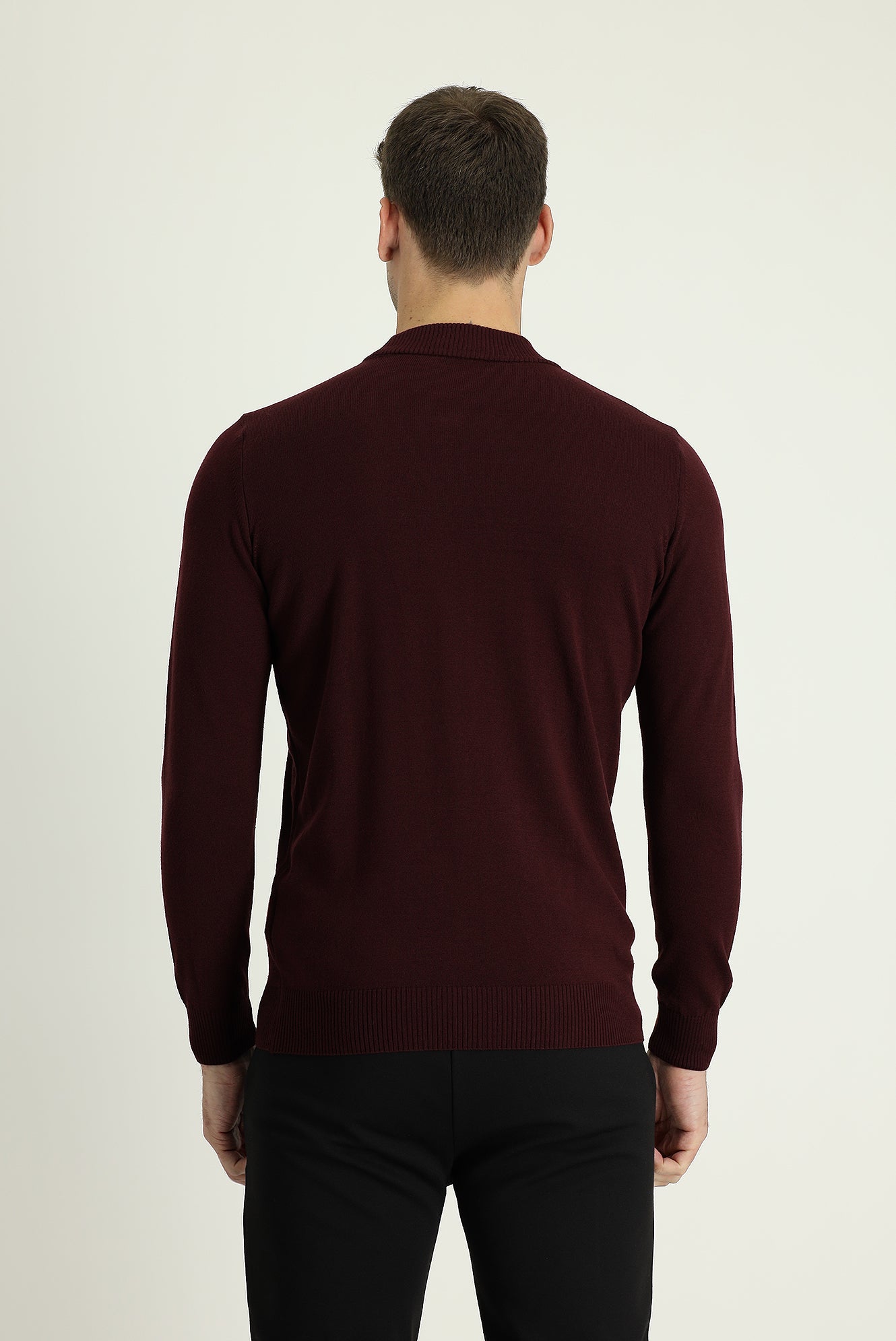 Koyu Bordo Yarım Balıkçı Yaka Regular Fit Pamuklu Triko Kazak