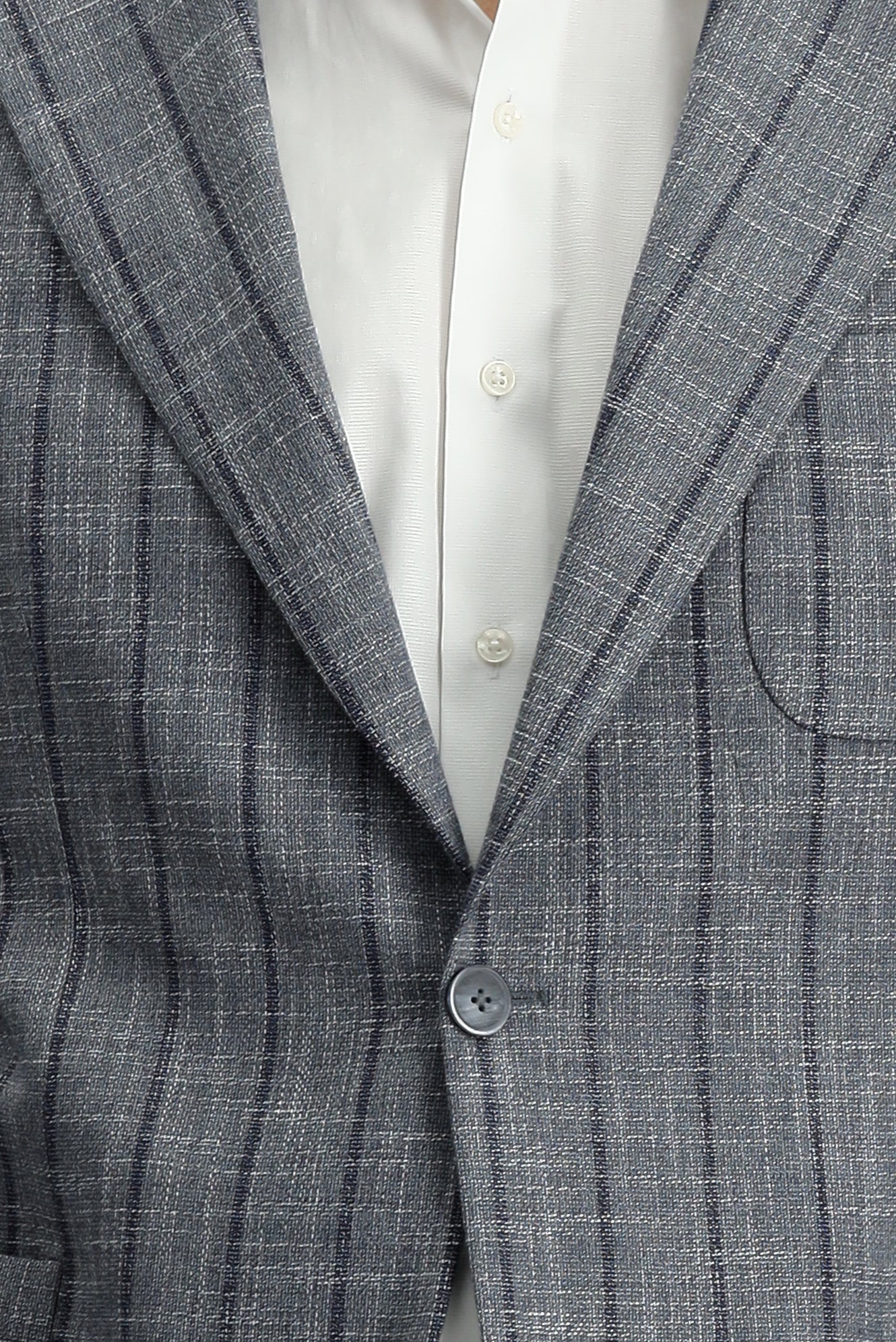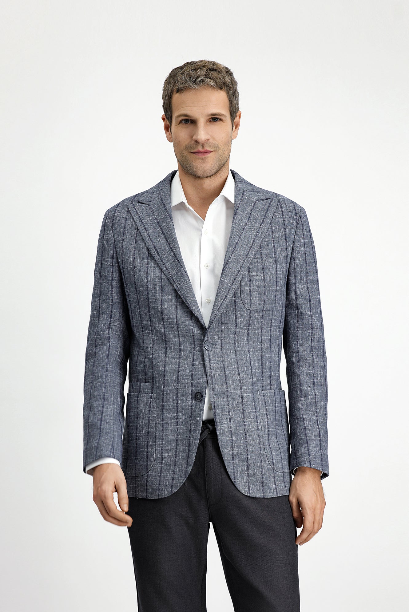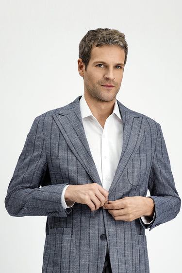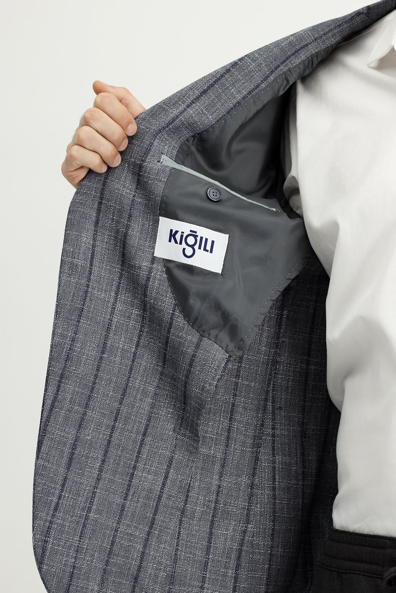Koyu Füme 8 Drop Muscle Fit Uzun Atletik Kesim Çizgili Likralı Spor Ceket