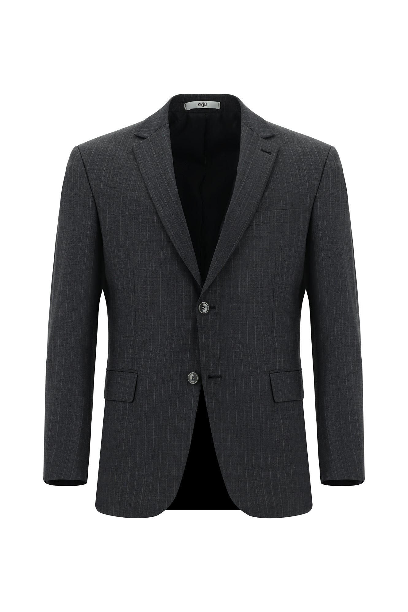 Koyu Füme 8 Drop Muscle Fit Uzun Atletik Kesim Yünlü Çizgili Takım Elbise