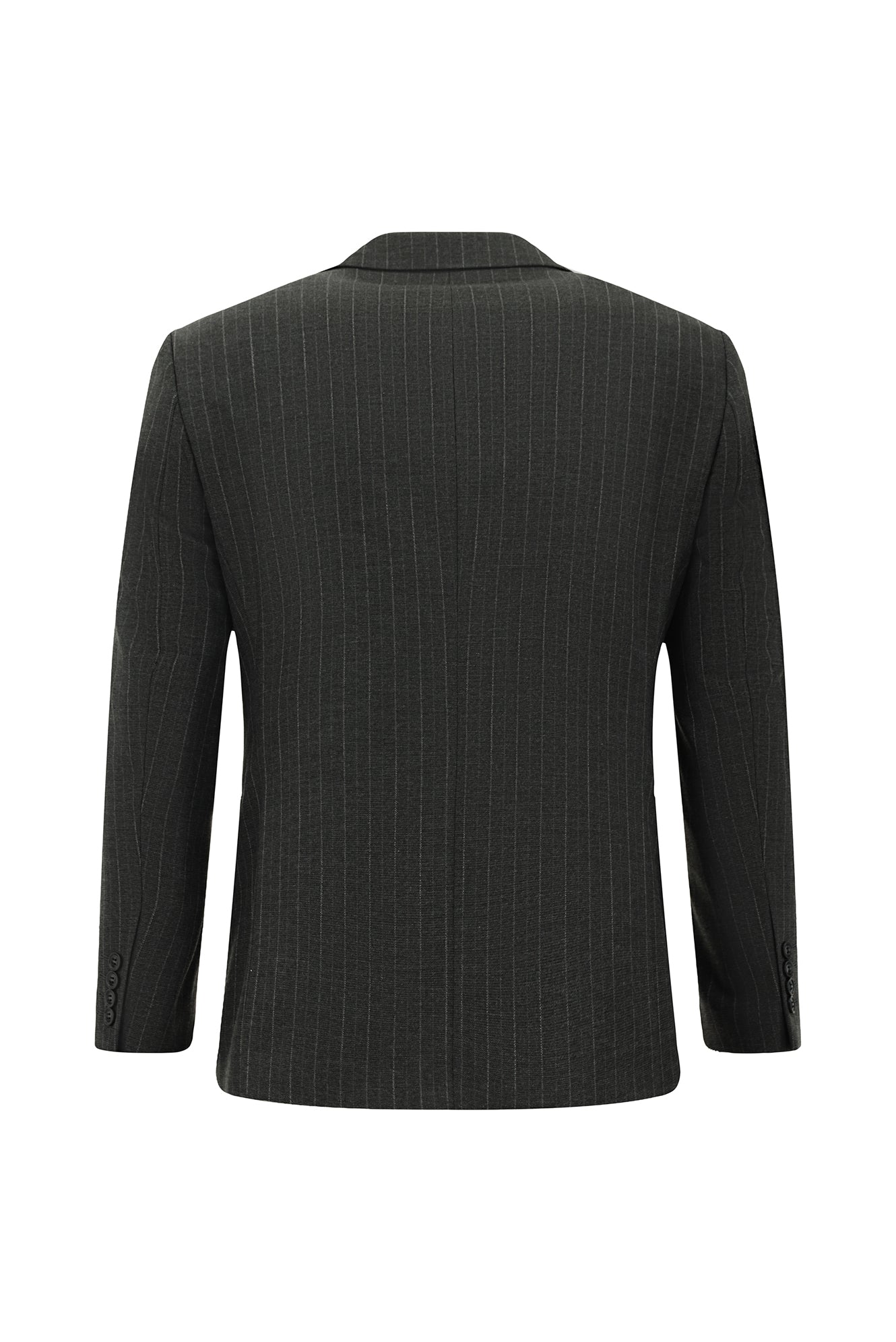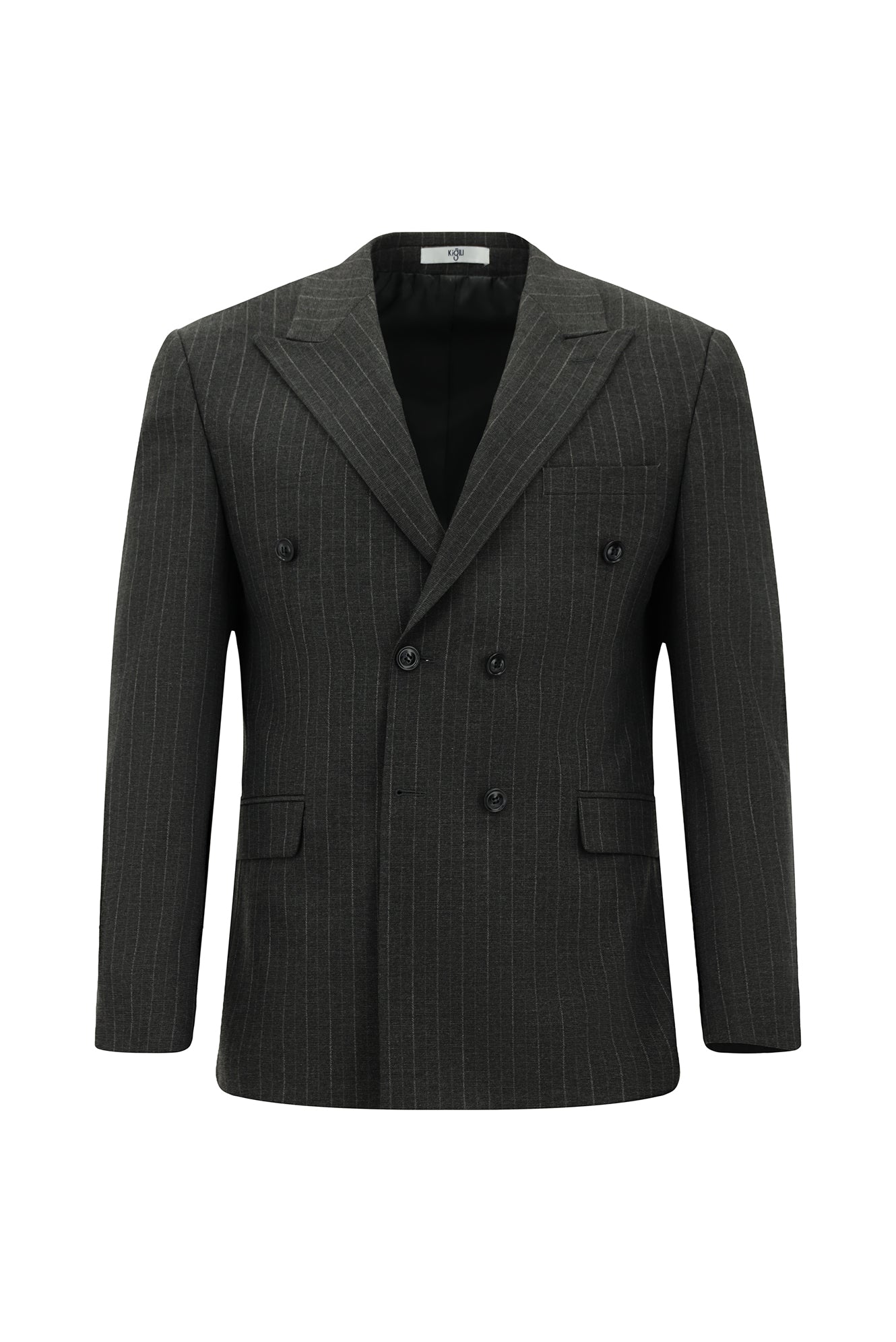 Koyu Füme Relaxed Fit Rahat Kesim Çizgili Kruvaze Takım Elbise