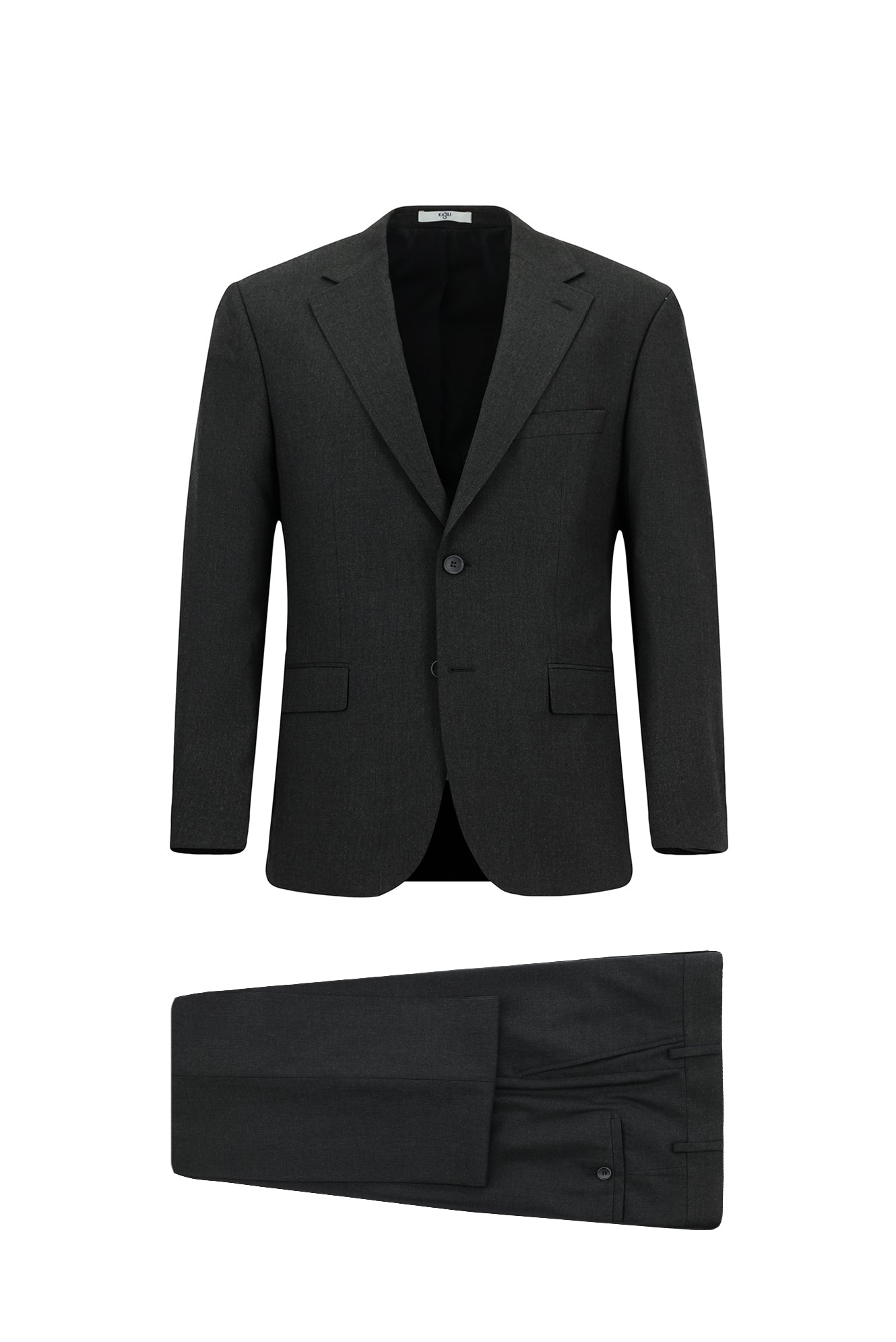 Koyu Füme Relaxed Fit Rahat Kesim Yünlü Klasik Takım Elbise