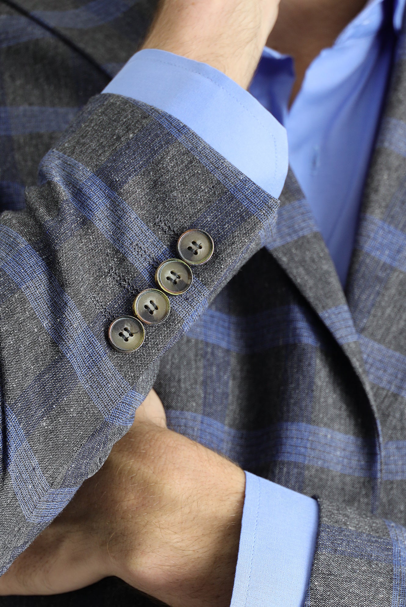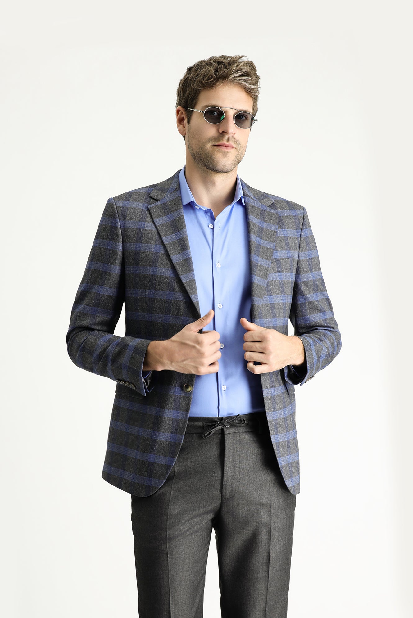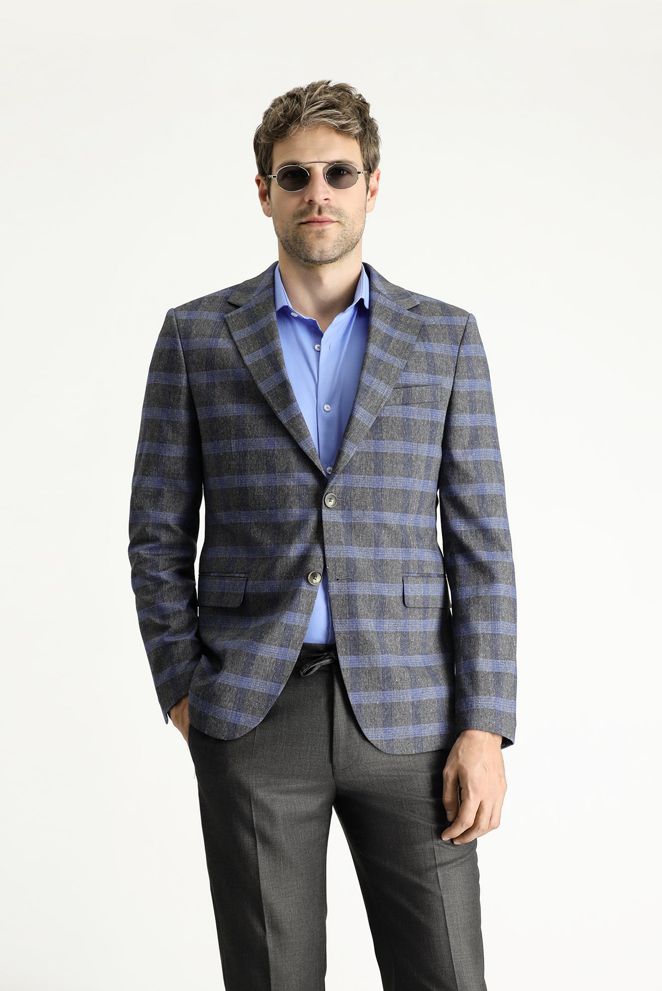 Koyu Füme Regular Fit Ekose Keten Karışımlı Ceket