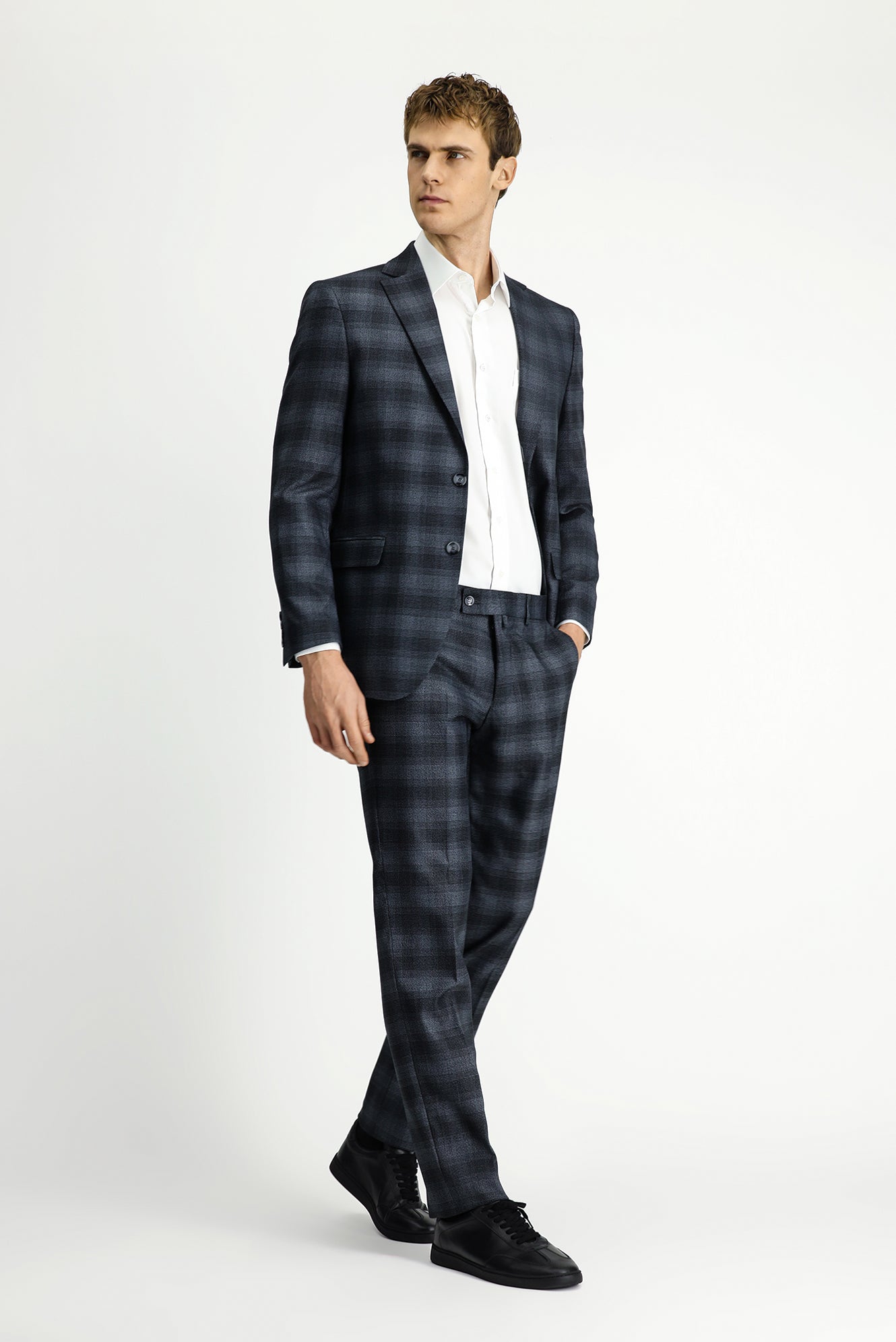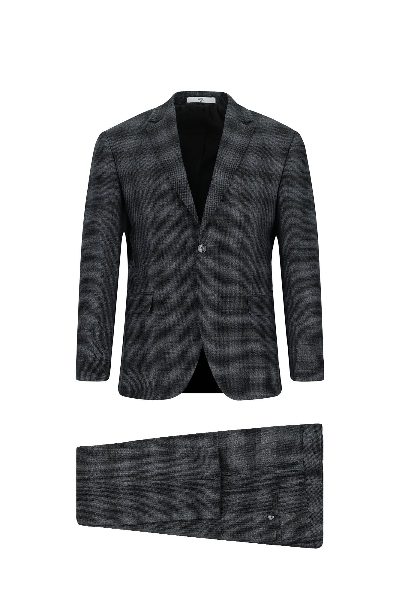 Koyu Füme 4 Drop Relaxed Fit Rahat Kesim Ekose Klasik Takım Elbise
