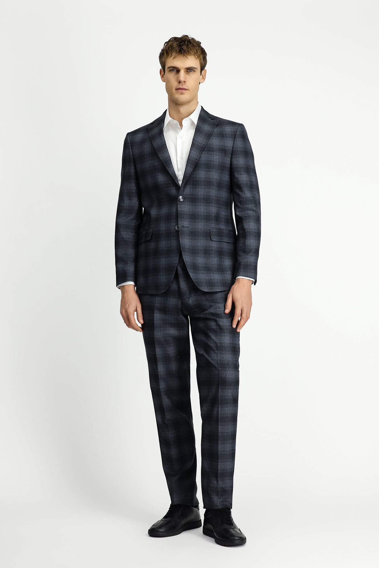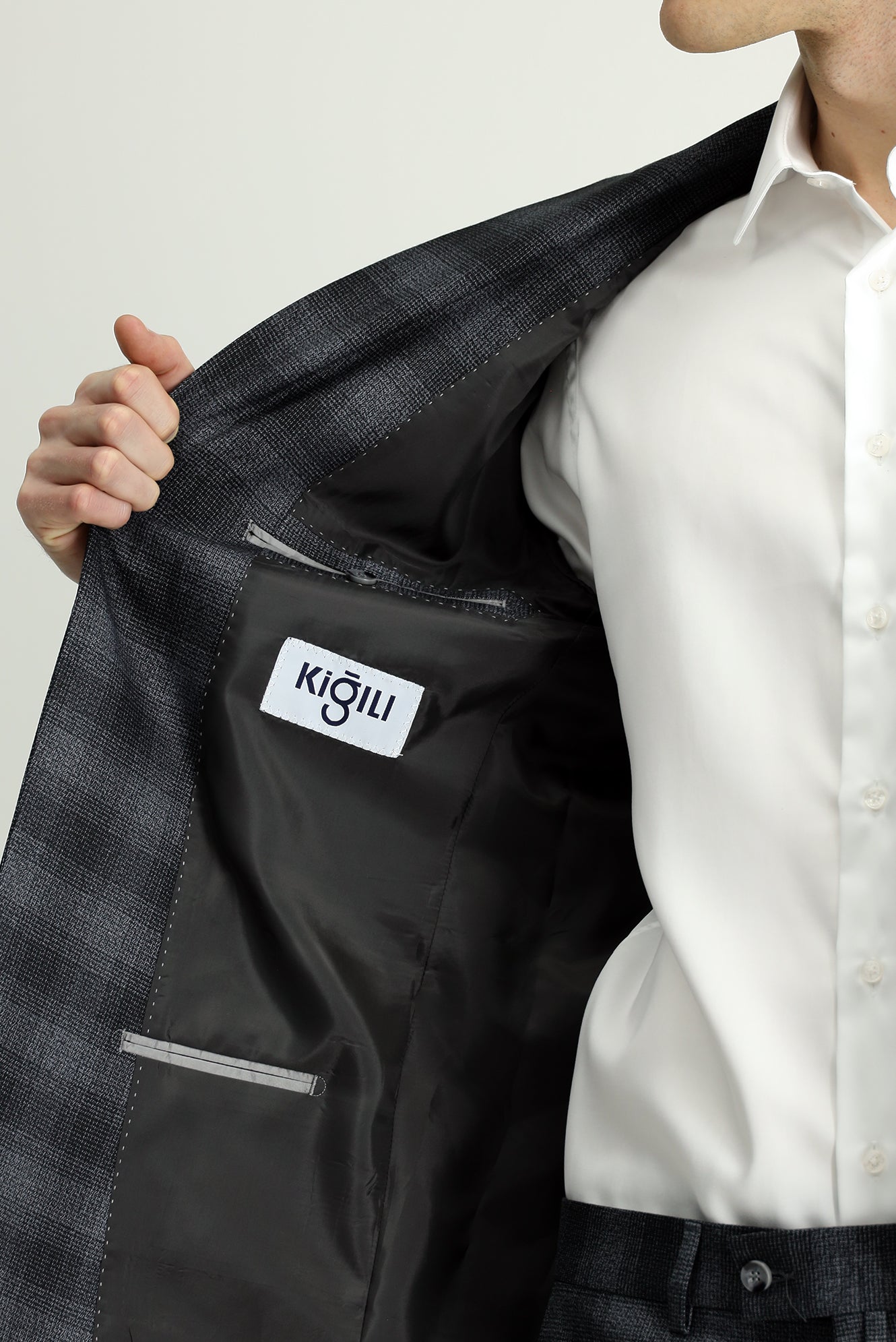 Koyu Füme 7 Drop Slim Fit Dar Kesim Ekose Klasik Takım Elbise
